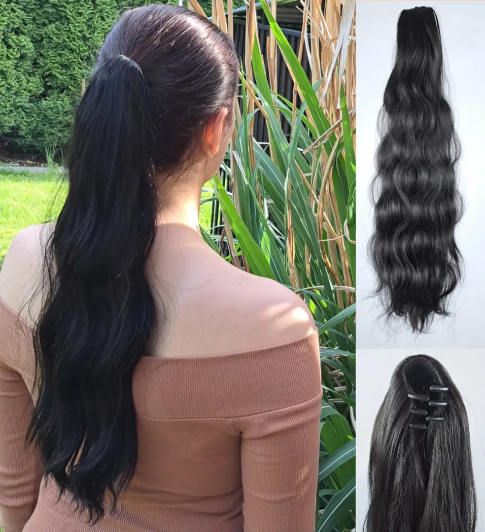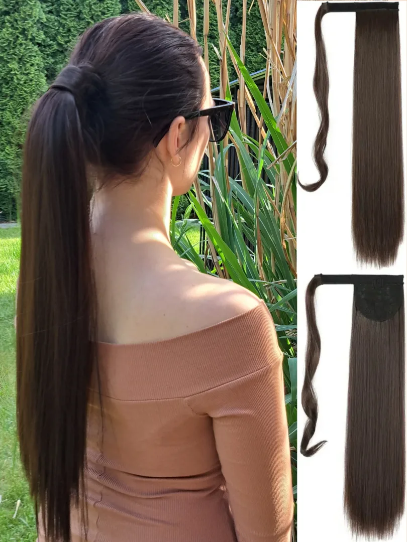Kucyk – kitka, zawijana ta taśmie, włos prosty długość ok. 55cm, kolor blond, brąz, czarny, rudy