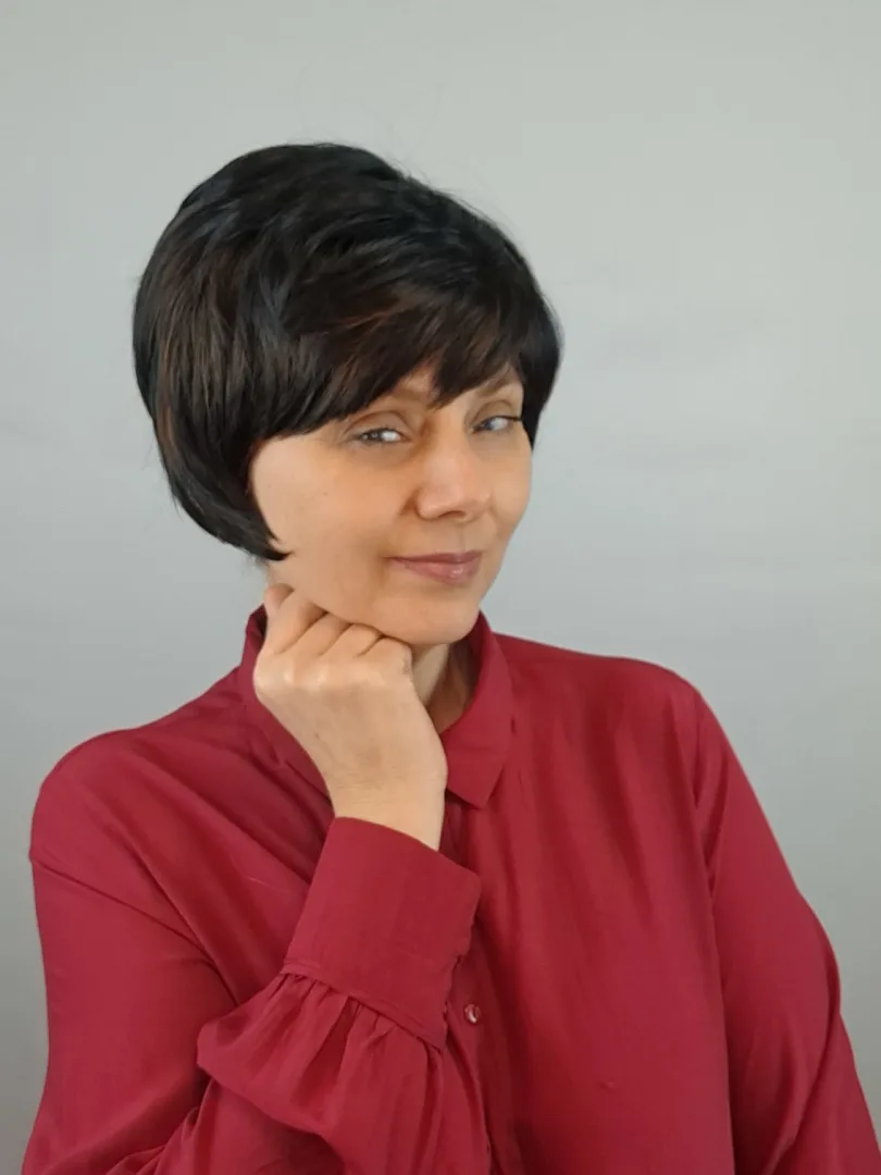 Peruka „Aurelia” kolor czarny z rudymi pasemkami, włosy krótkie z e fektem tapiru z grzywką, damska syntetyczna -wysokotemp.