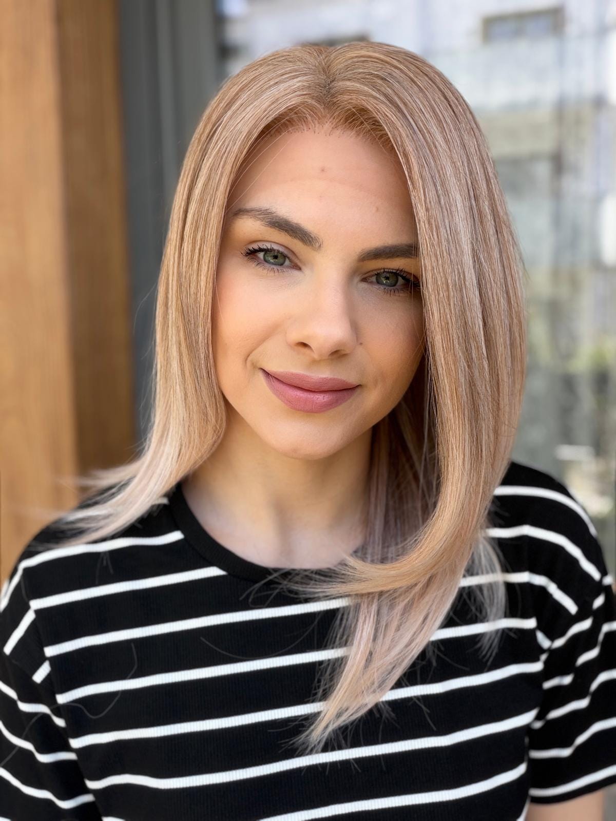 Opaska pod topper z lace frontem to dyskretna baza stabilizująca, która zwiększa komfort noszenia oraz poprawia naturalny efekt przy linii czoła. Dzięki zastosowaniu delikatnej siateczki lace front opaska pozostaje niemal niewidoczna, a topper lepiej układa się na przodzie fryzury. To praktyczne rozwiązanie dla osób, które chcą odciążyć własne włosy i jednocześnie zachować estetyczny, lekki wygląd.