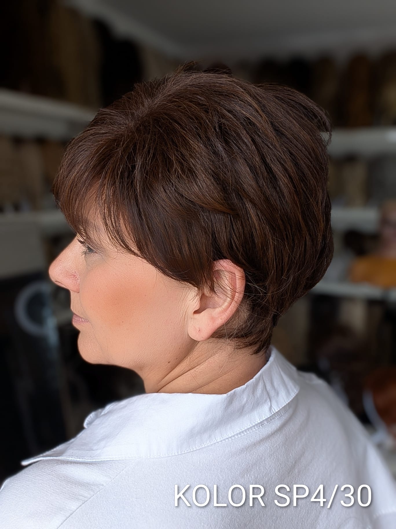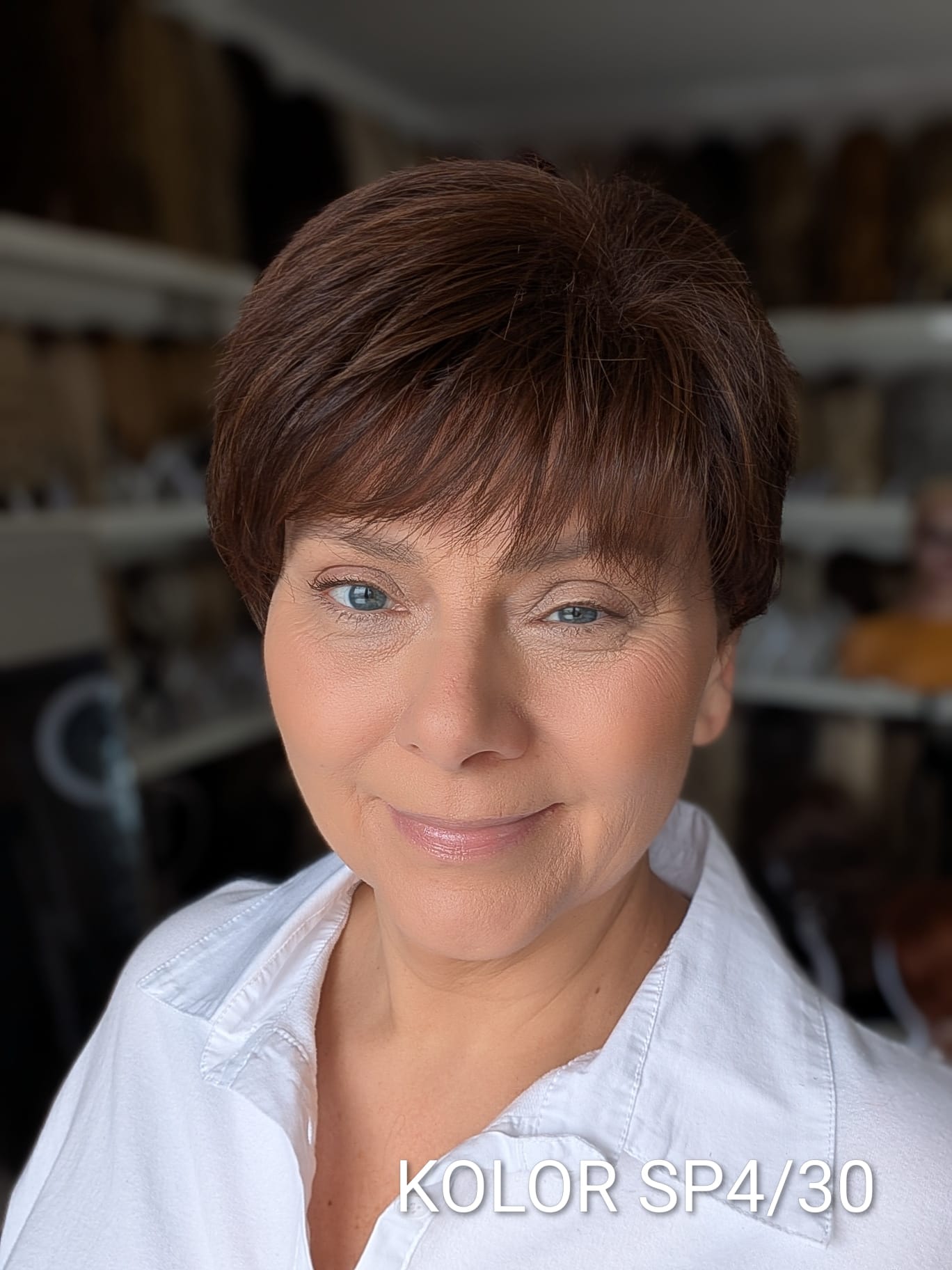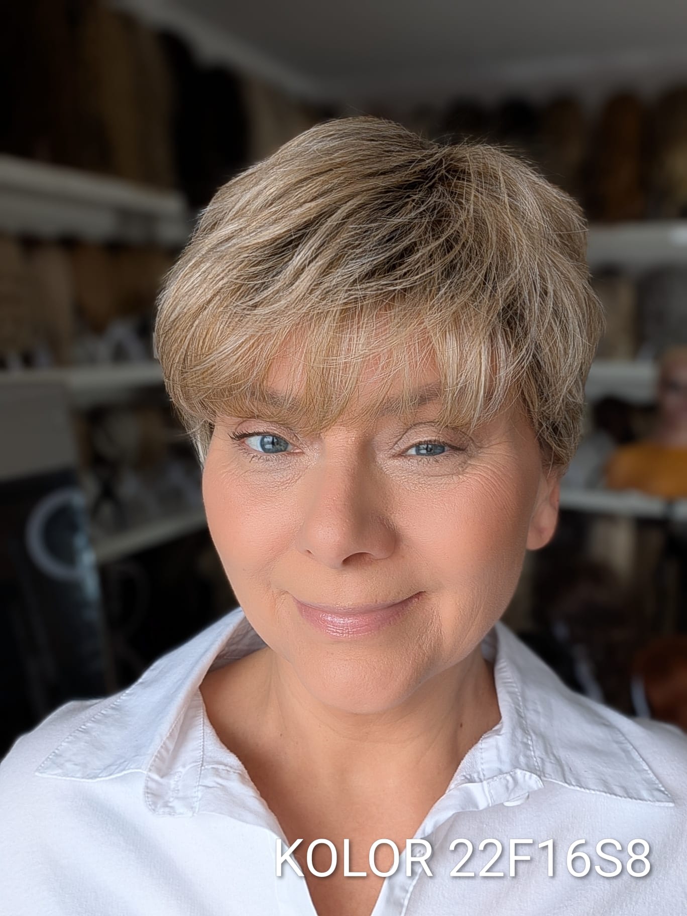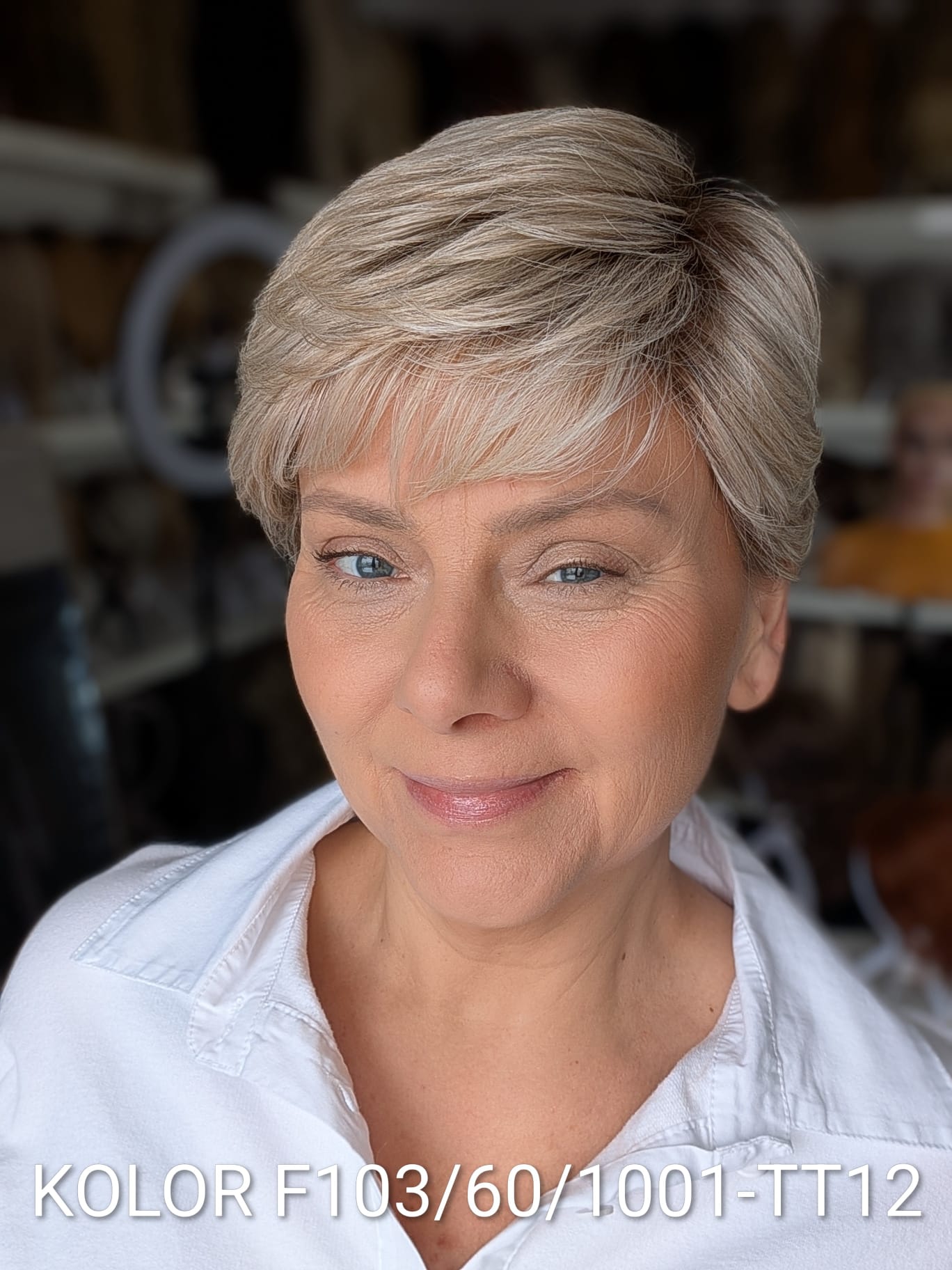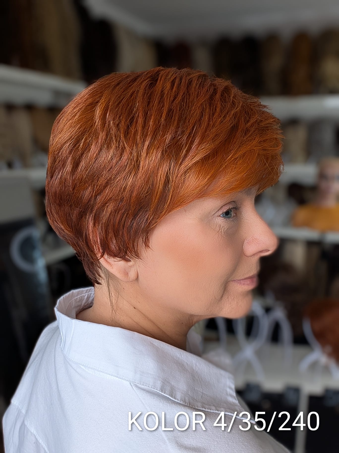 Peruka Aldona to krótka, kobieca fryzura z delikatnie wycieniowaną grzywką i subtelnym efektem tapiru, który nadaje włosom lekkości oraz naturalnego uniesienia u nasady. Model pięknie otula twarz, dodając jej świeżości i miękkiego charakteru. To propozycja dla kobiet, które cenią wygodę krótkiej fryzury, ale nie chcą rezygnować z objętości i eleganckiego wykończenia. Aldona sprawdzi się zarówno na co dzień, jak i w bardziej formalnych stylizacjach – zawsze wygląda naturalnie i harmonijnie.