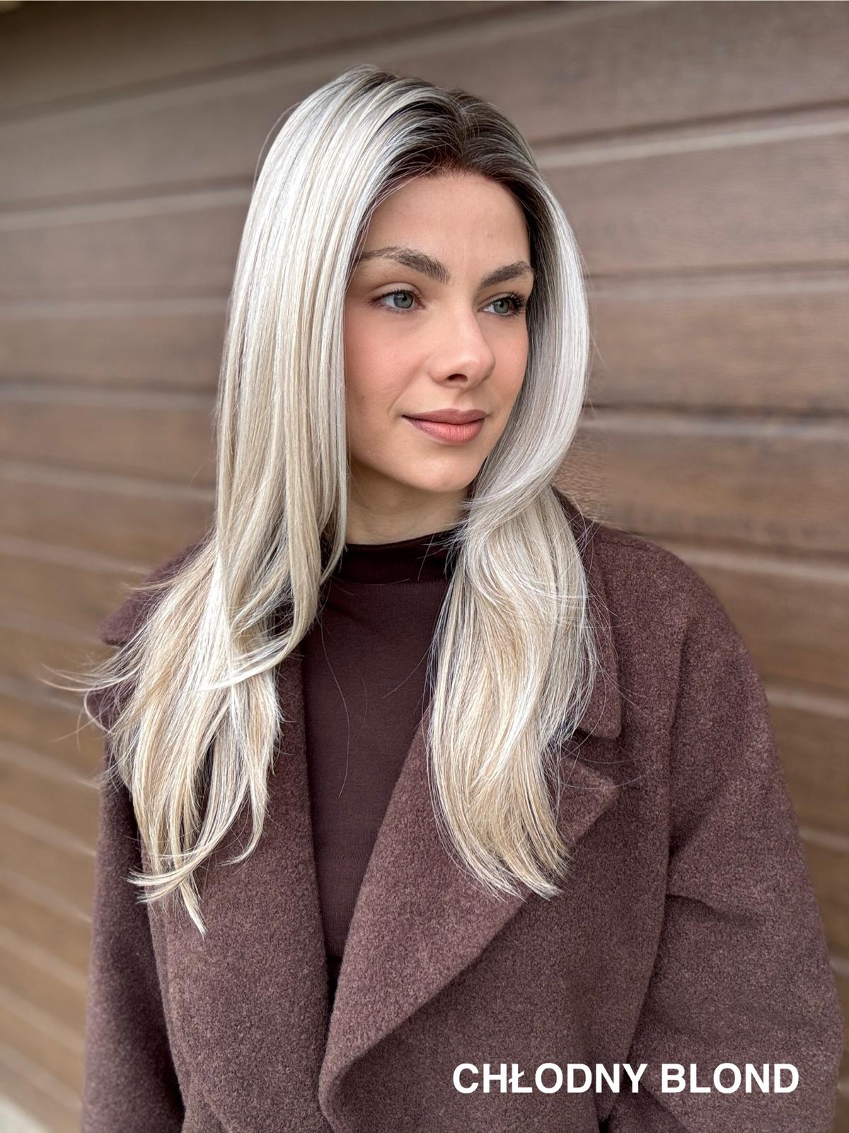 Peruka „Aniela” długa i elegancka peruka o pięknym efekcie balayage w chłodnej tonacji, który subtelnie rozświetla włosy i dodaje im głębi. Stopniowe cieniowanie nadaje fryzurze lekkości i naturalnego ruchu, a pełny Mono Top pozwala zmieniać przedziałek i unosić włosy u nasady dla idealnej objętości. Model, który wyróżnia się klasą i kobiecością — idealny dla fanek chłodnych odcieni.