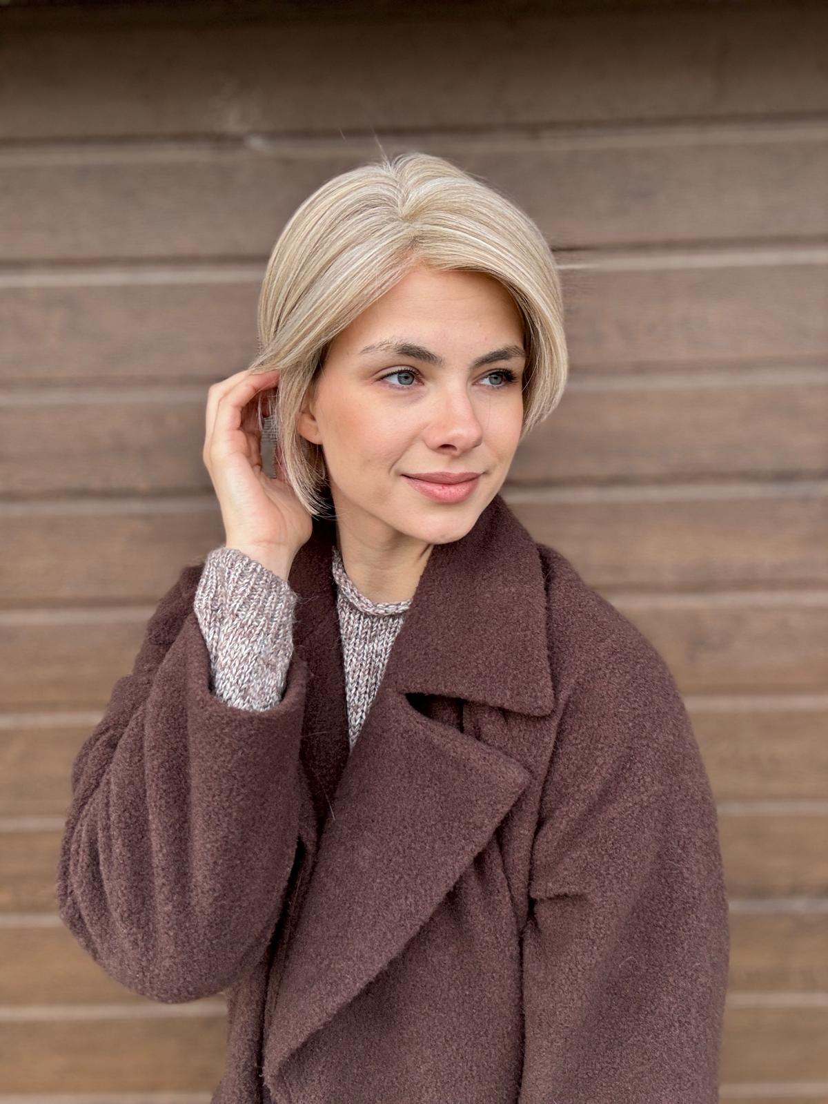 Peruka Arletta to propozycja dla kobiet, które kochają krótkie formy, ale nie chcą rezygnować z pełnej swobody stylizacji. Ten klasyczny bob w niezwykle twarzowym, neutralnym blondzie wygląda świeżo, elegancko i bardzo naturalnie. Pięknie rozmyta linia czoła sprawia, że peruka stapia się ze skórą, a fryzura wygląda jak własne włosy. Arletta daje ogromne możliwości — możesz przekładać włosy, unosić je u nasady, a nawet zaczesywać do tyłu, tworząc różne wersje tej samej fryzury. To model, który świetnie odnajdzie się zarówno na co dzień, jak i w bardziej eleganckich stylizacjach.