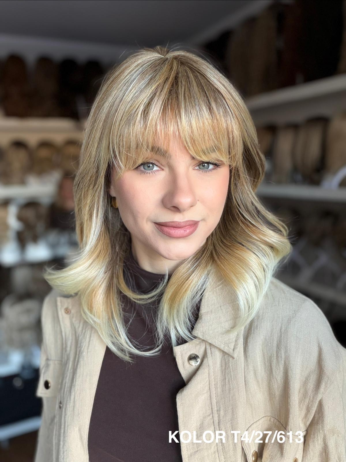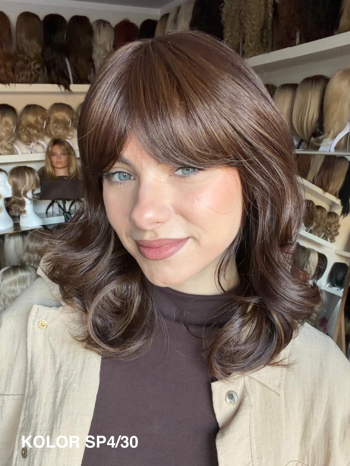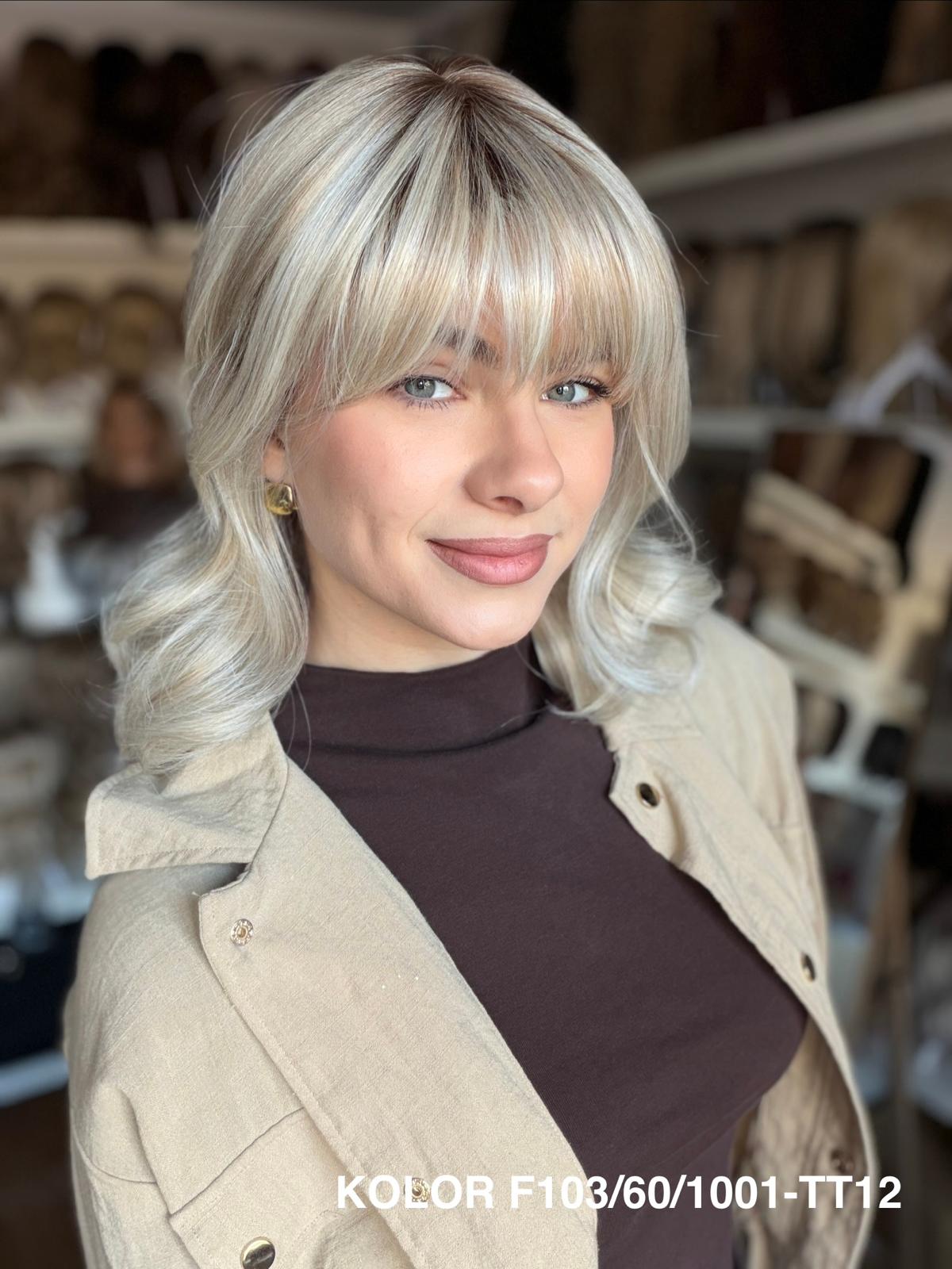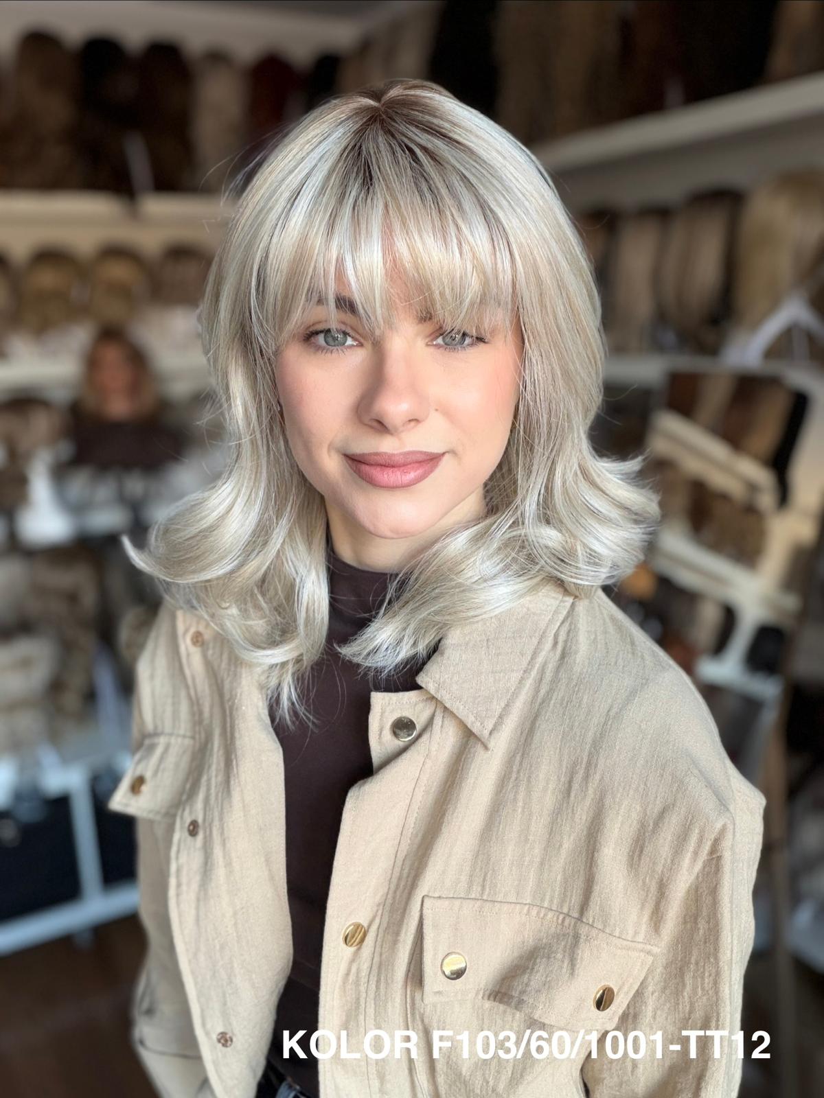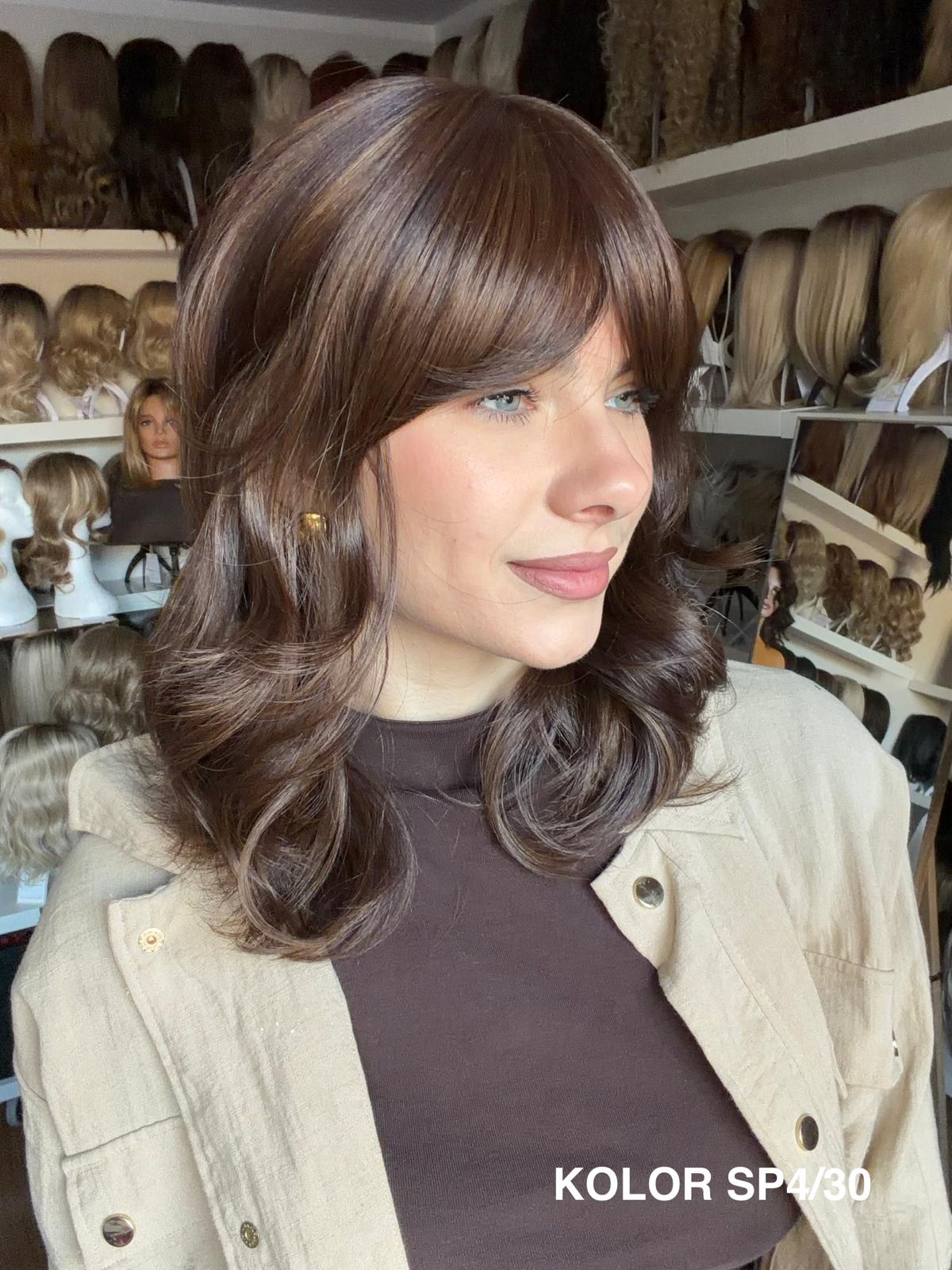 Peruka Carmina stopniowo wycieniowana peruka z delikatną grzywką, która pięknie układa się wokół twarzy i nadaje fryzurze lekkości. Wykonana z wysokiej jakości włókna japońskiego, łączy naturalny wygląd z wygodą noszenia na co dzień