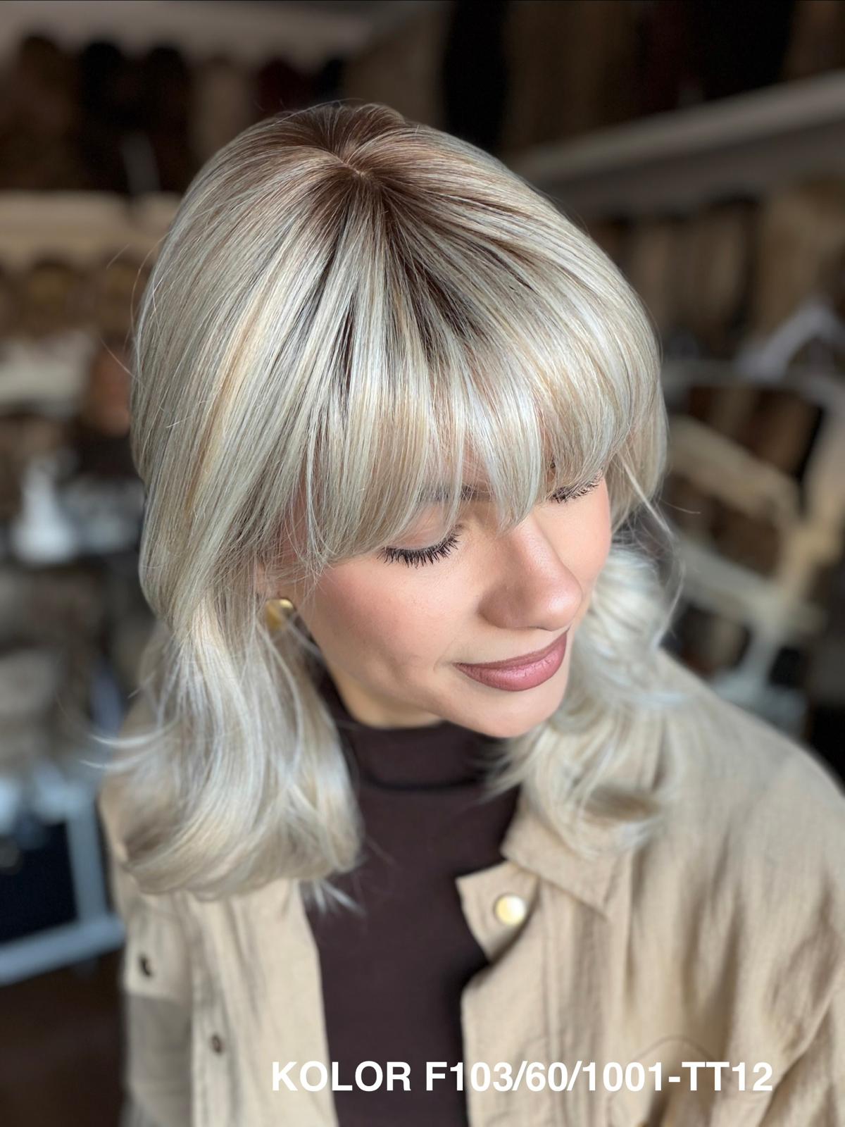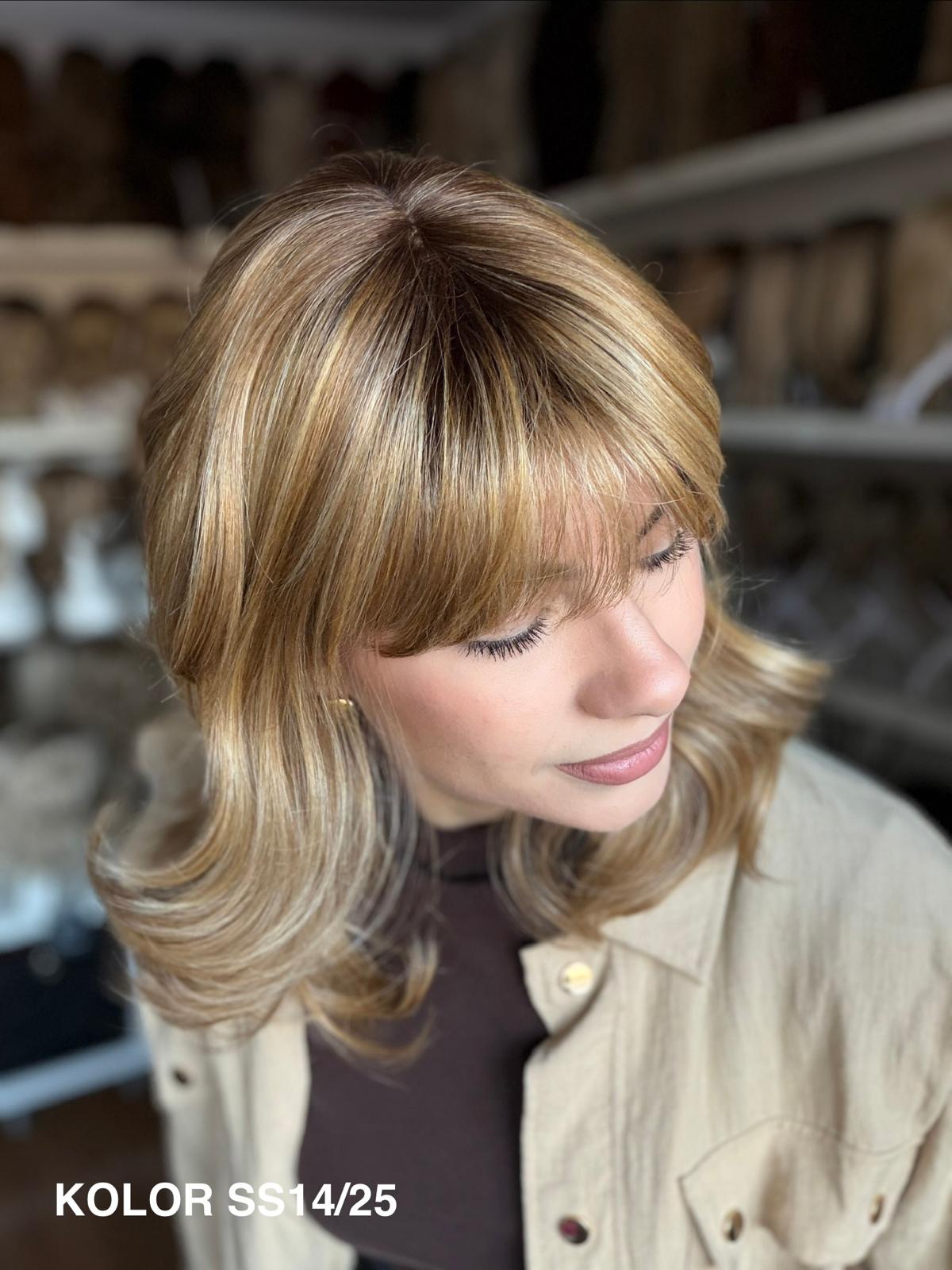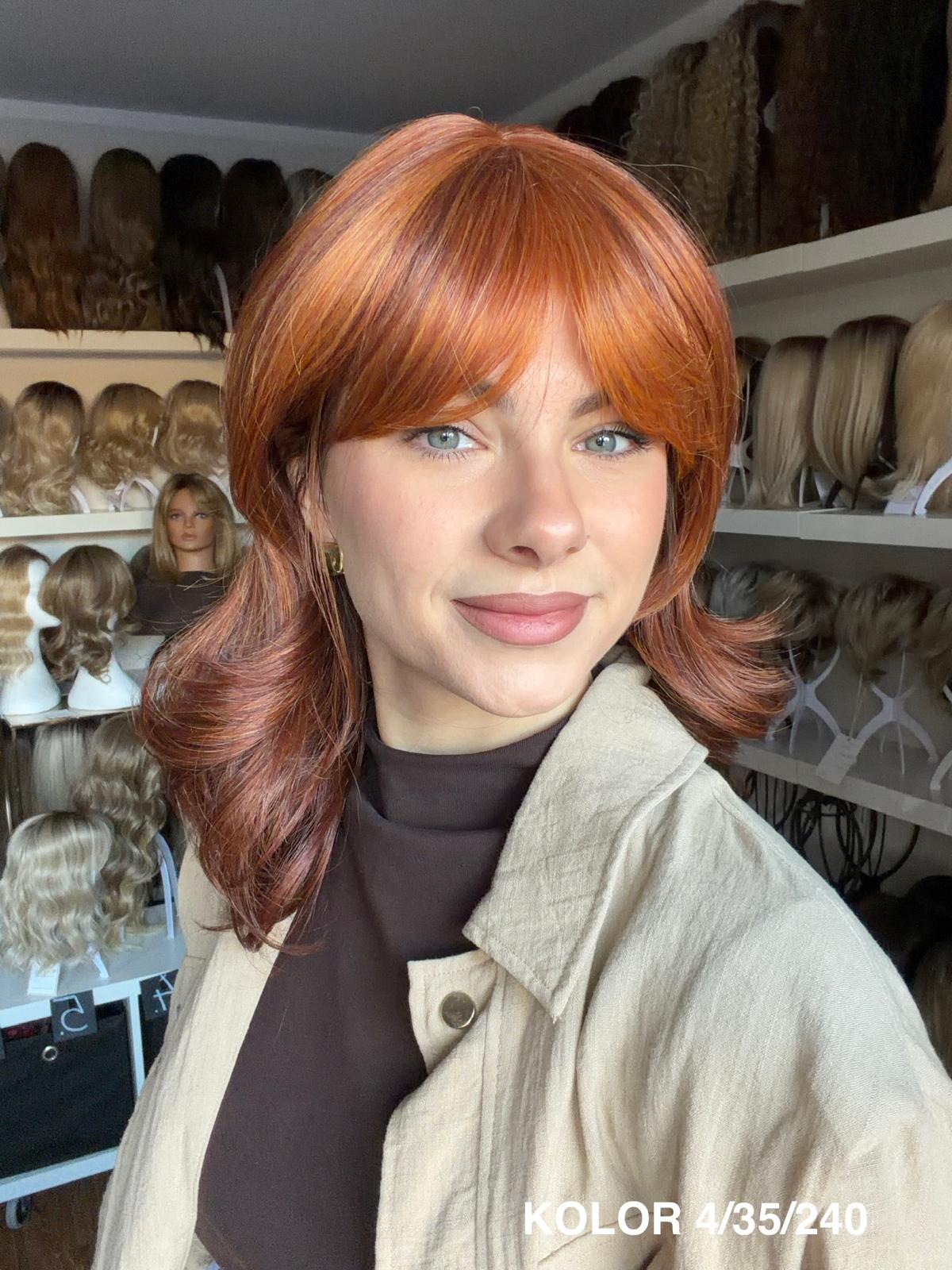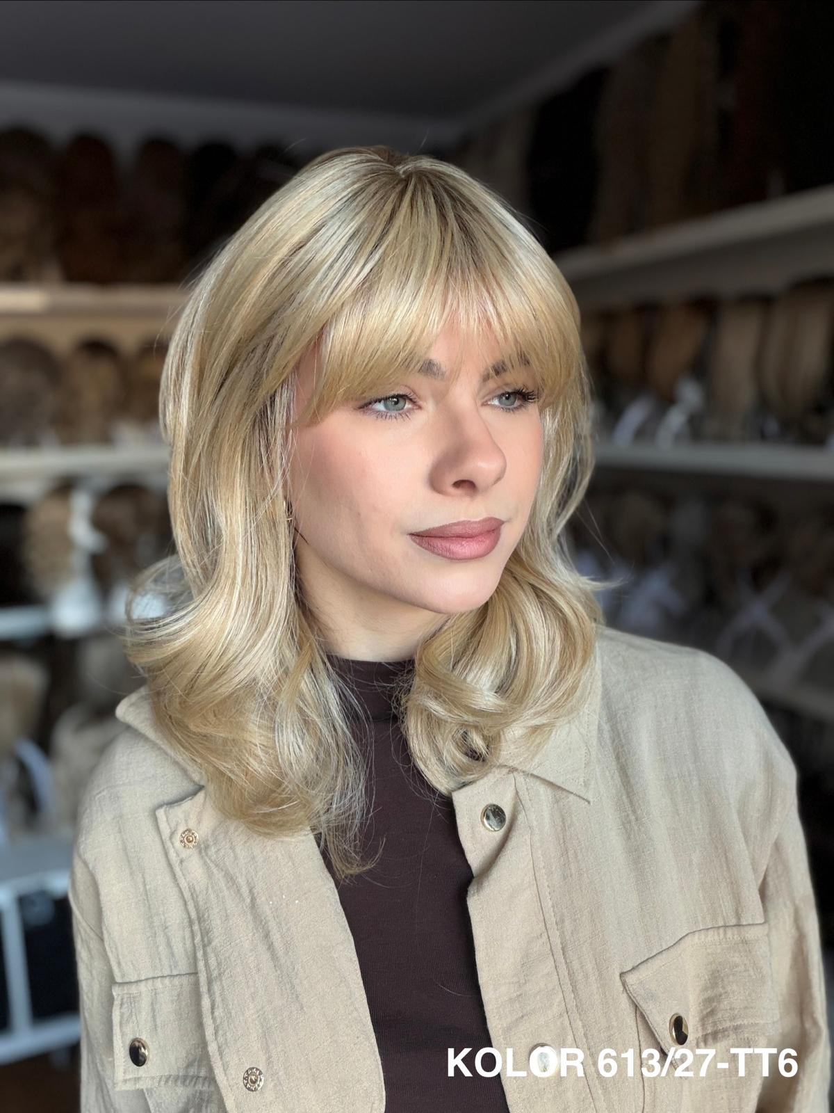 Peruka Carmina stopniowo wycieniowana peruka z delikatną grzywką, która pięknie układa się wokół twarzy i nadaje fryzurze lekkości. Wykonana z wysokiej jakości włókna japońskiego, łączy naturalny wygląd z wygodą noszenia na co dzień