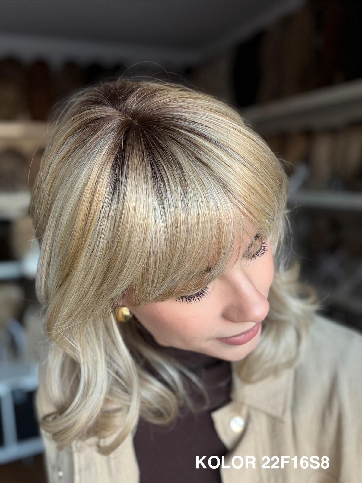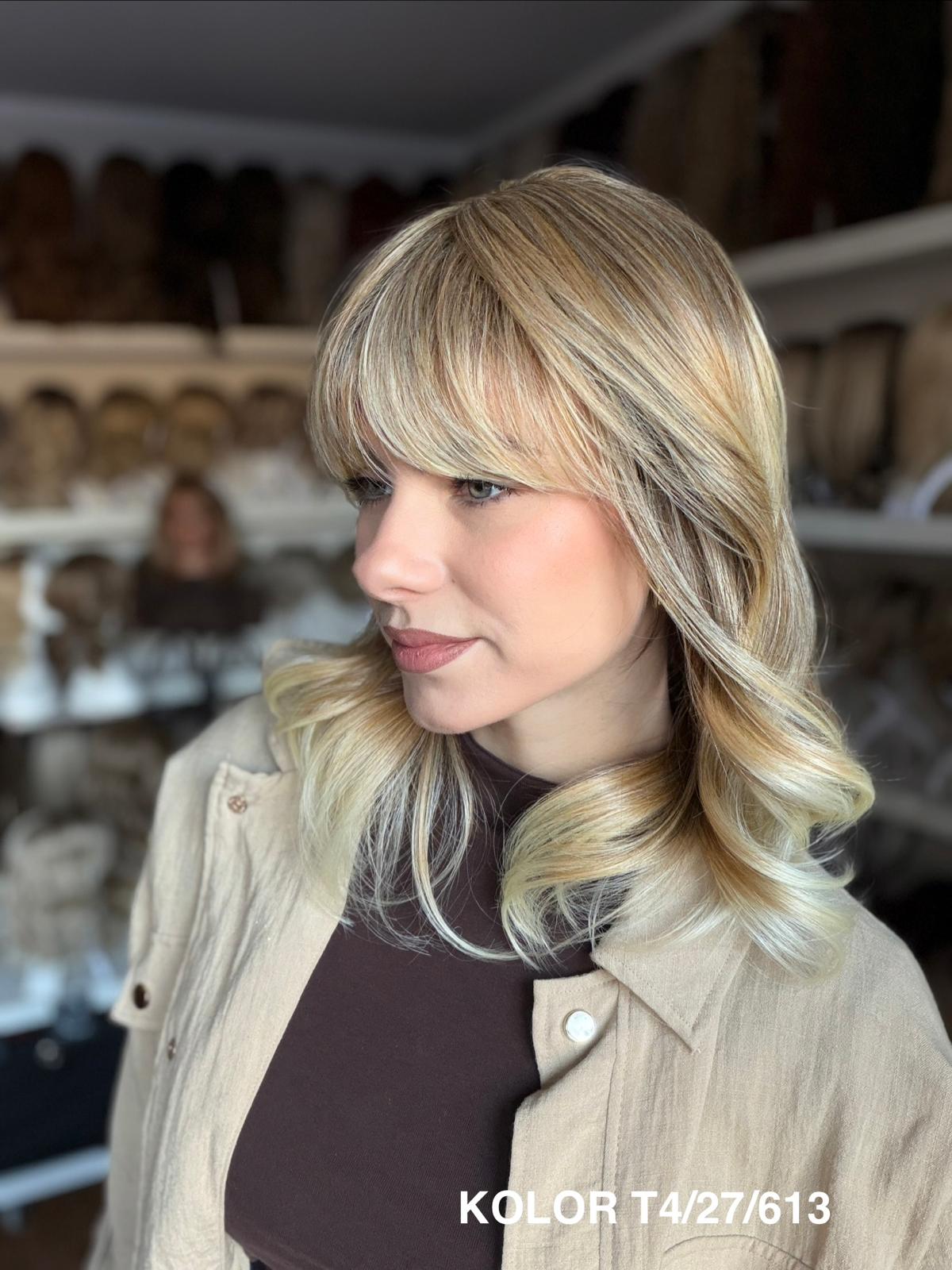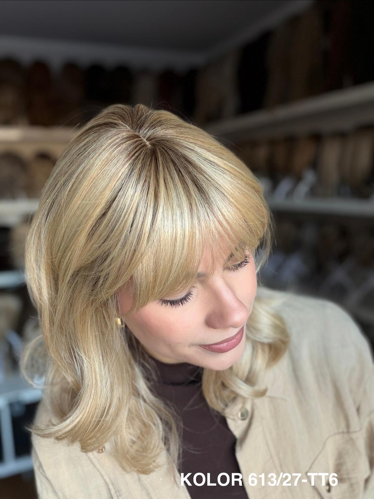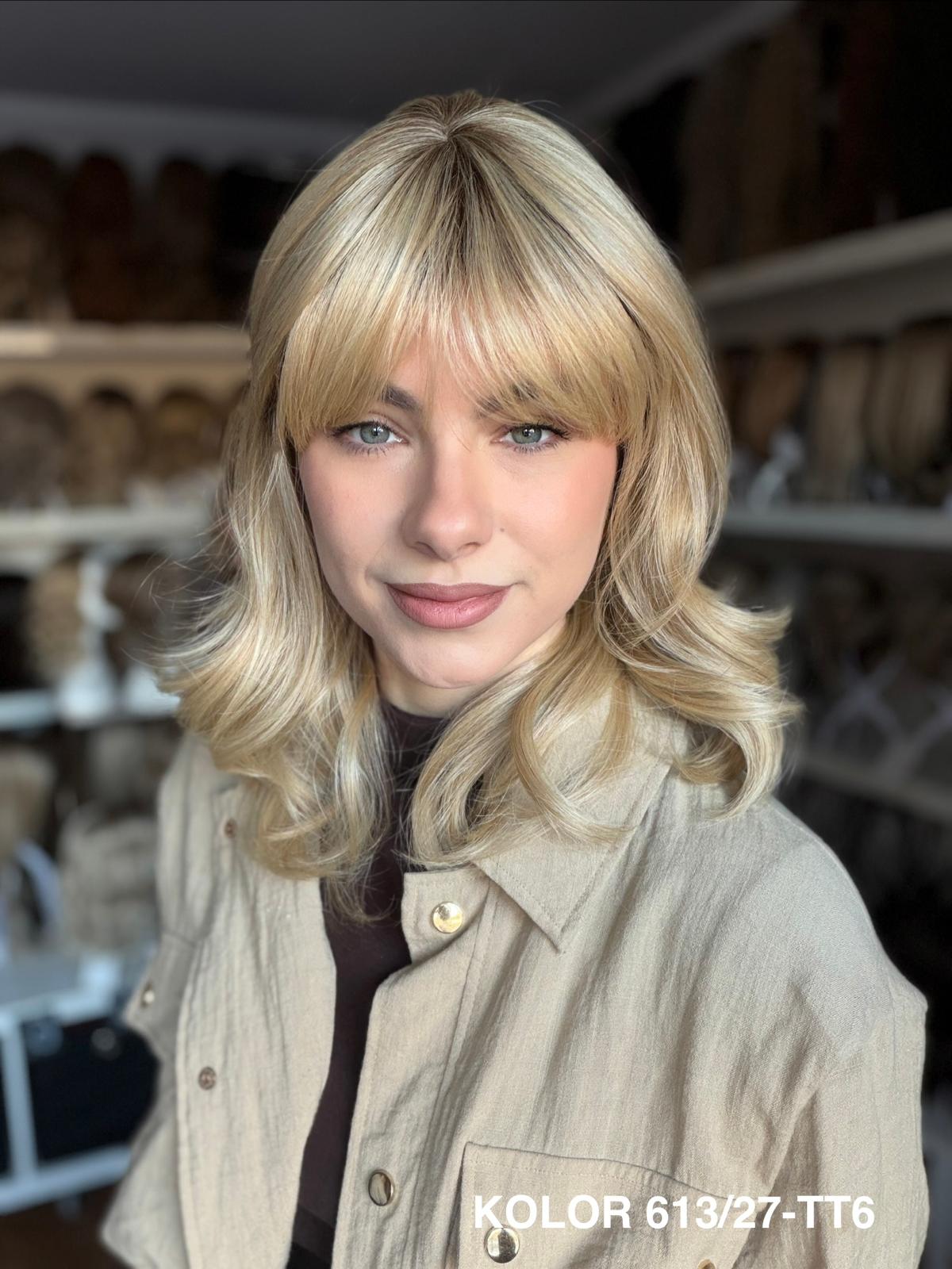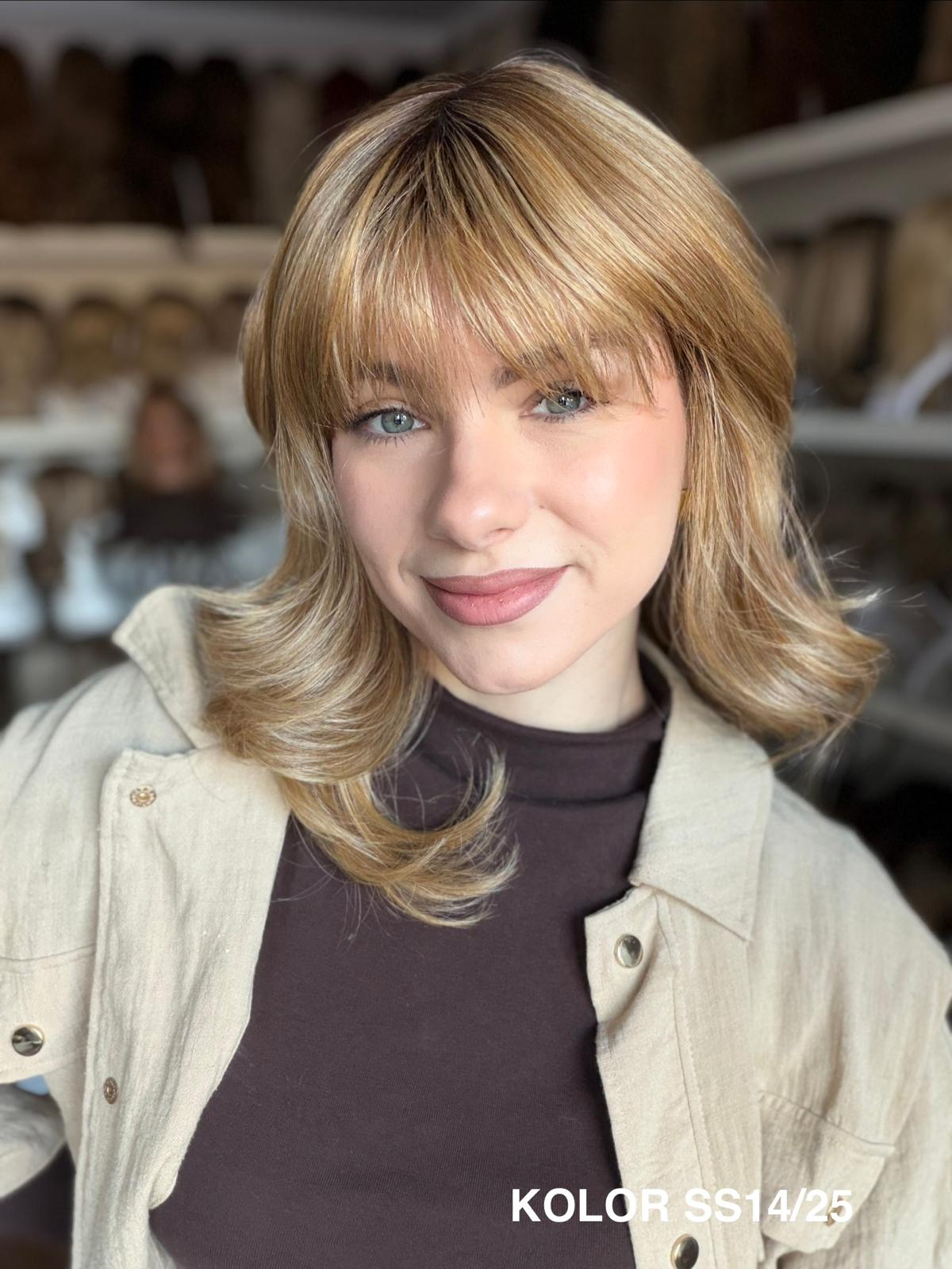 Peruka Carmina stopniowo wycieniowana peruka z delikatną grzywką, która pięknie układa się wokół twarzy i nadaje fryzurze lekkości. Wykonana z wysokiej jakości włókna japońskiego, łączy naturalny wygląd z wygodą noszenia na co dzień