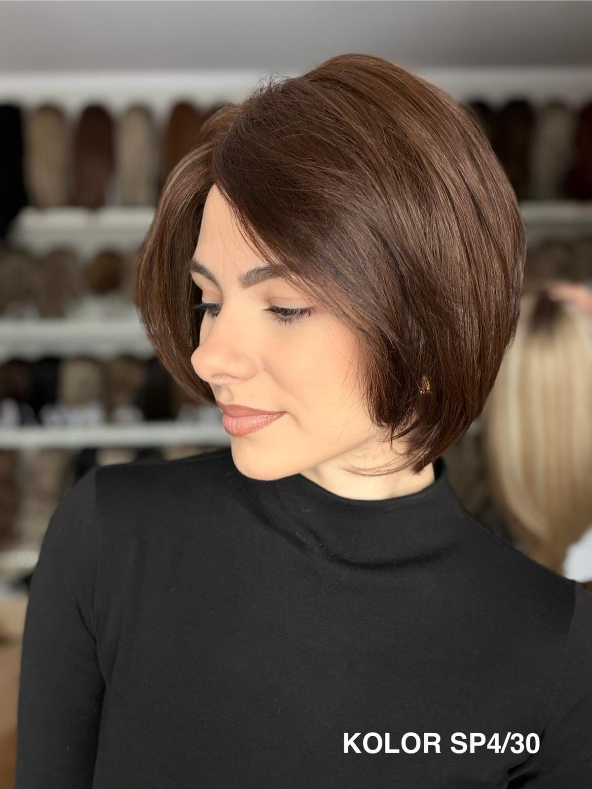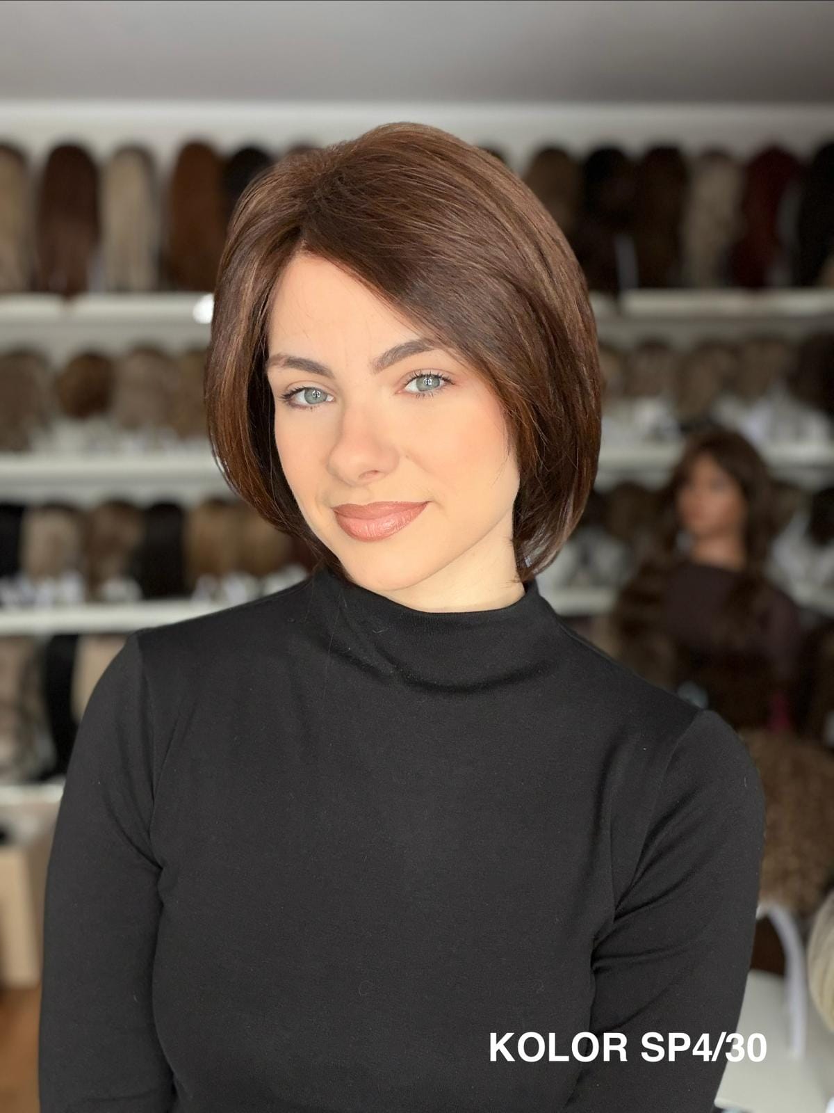 Dominika to peruka, która zachwyca naturalnością od pierwszego założenia. Delikatnie ułożone włosy o długości ok. 25 cm prezentują się lekko i elegancko, a wstawka monofilament na linii czoła sprawia, że fryzura wygląda jak prawdziwa. Włókno japońskie nadaje miękkość i realistyczną strukturę, a wygodny czepek 54–56 cm zapewnia komfort przez cały dzień.