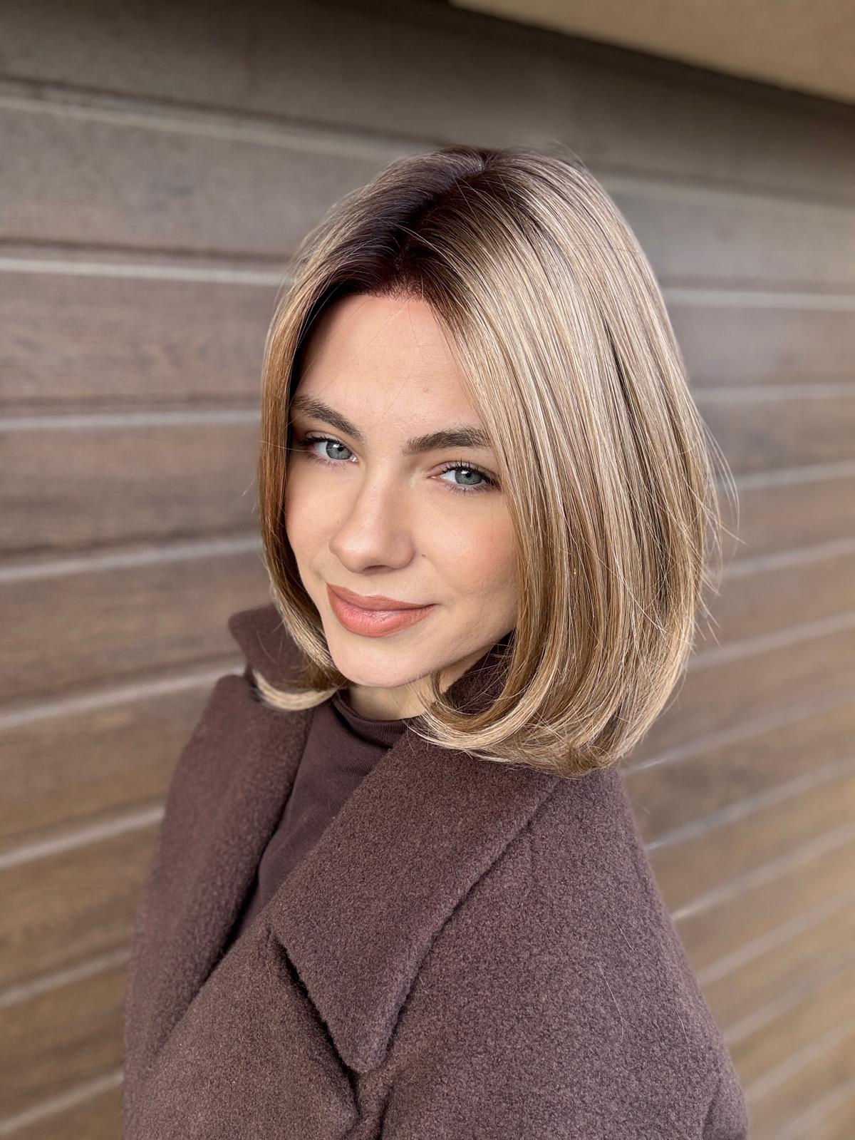 Edyta to klasyczny, niezwykle twarzowy bob, który zachwyca swoją lekkością, elegancją i naturalnym wyglądem. Gładkie, starannie ułożone włosy o długości około 30 cm pięknie okalają twarz, tworząc efekt zadbanej, ponadczasowej fryzury. Subtelnie rozmyta linia włosów sprawia, że całość prezentuje się wyjątkowo naturalnie — jak prawdziwe włosy wyrastające ze skóry.
