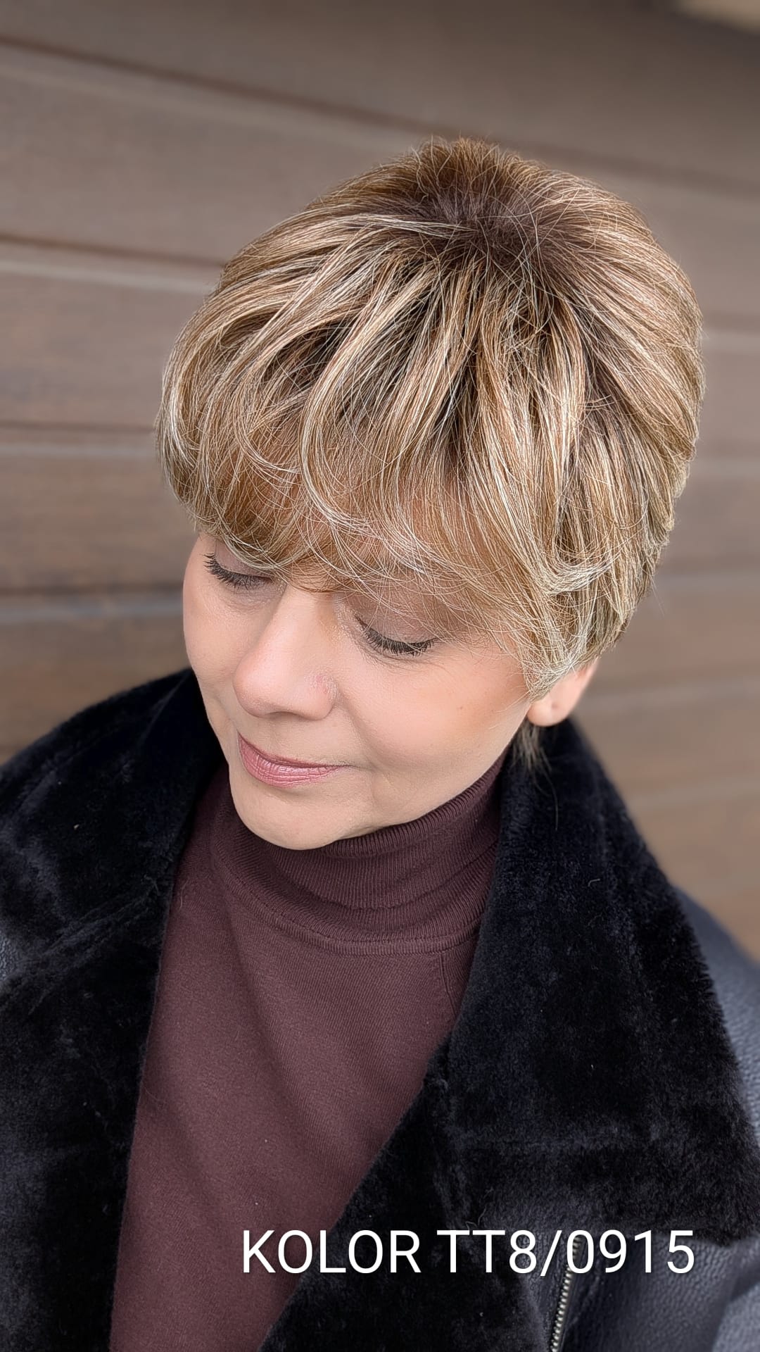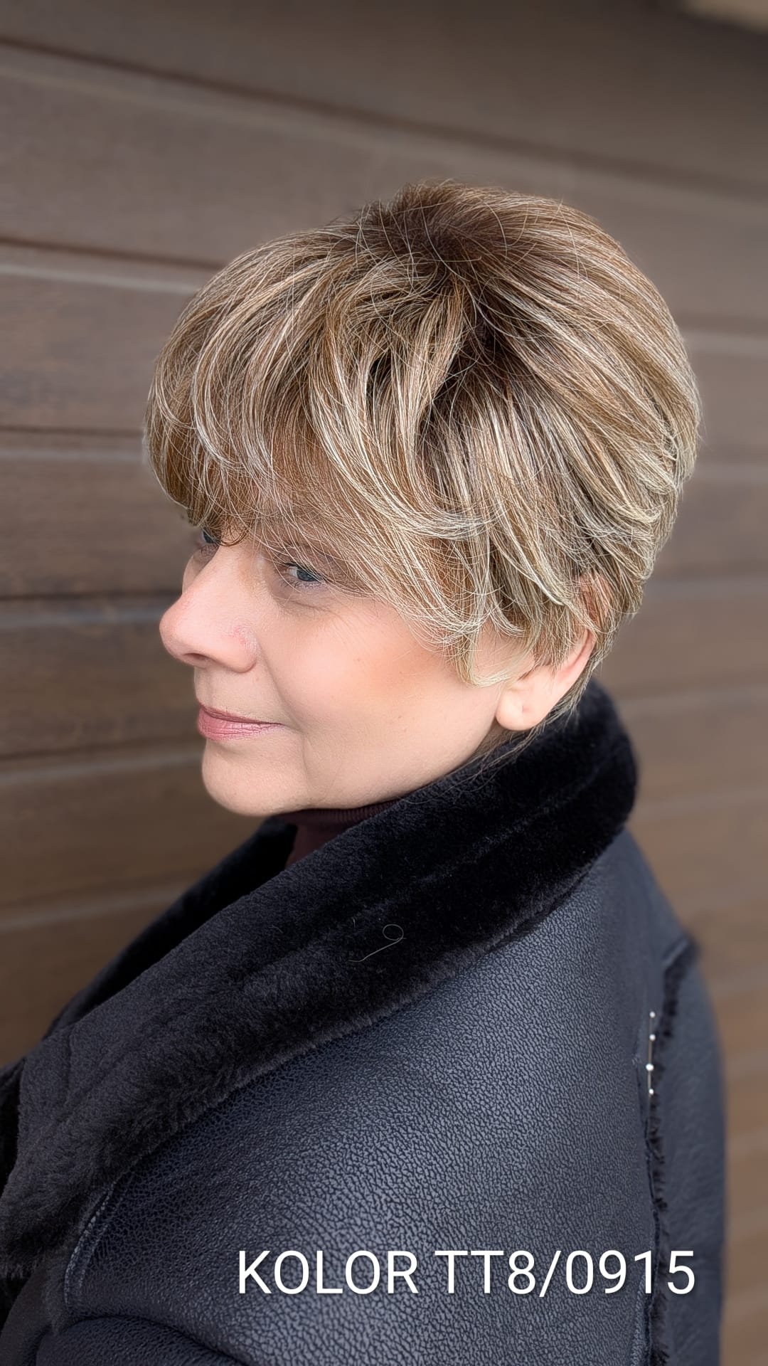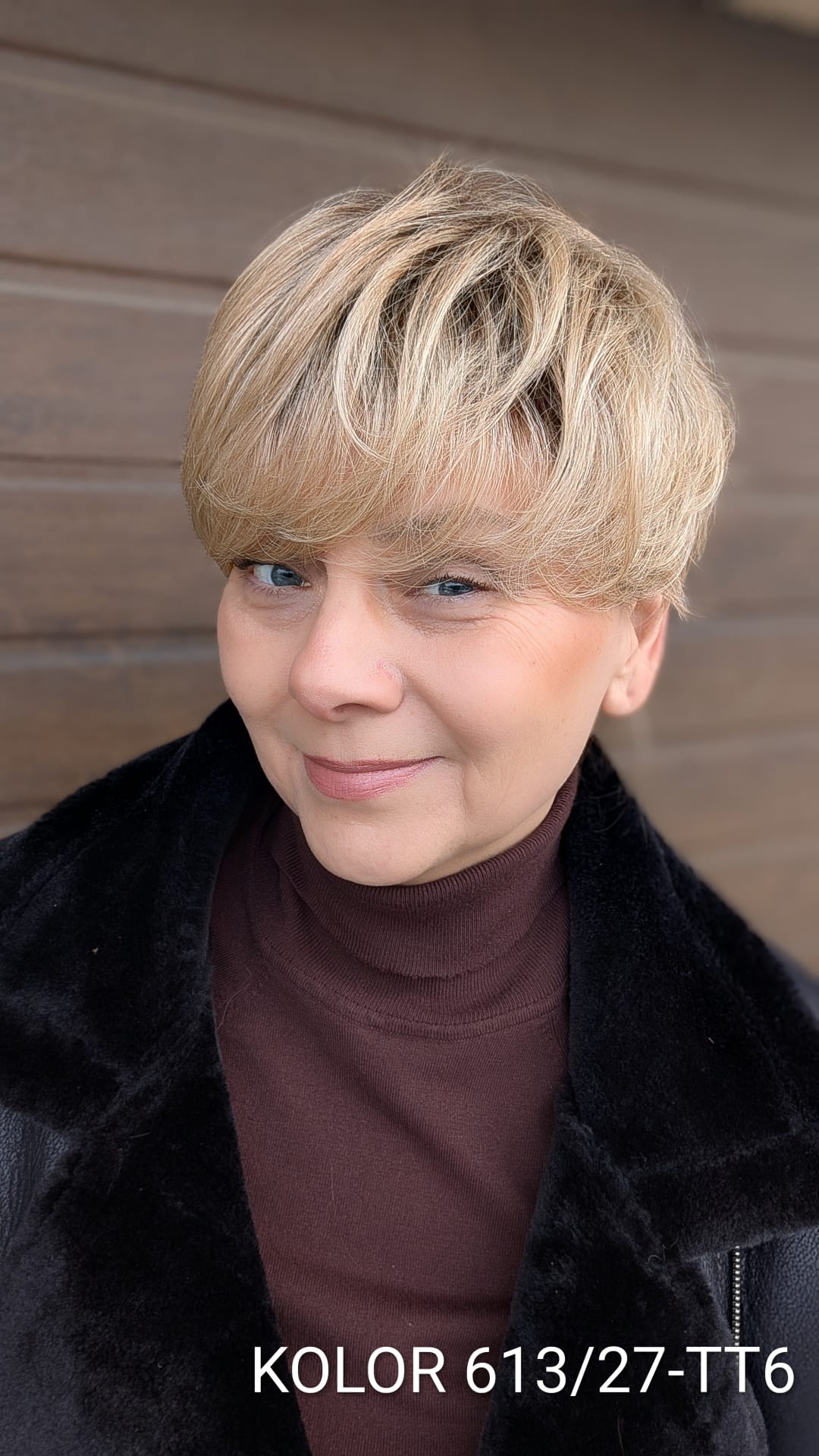 Peruka Elżbieta to klasyczna, krótka fryzura z nowoczesnym wykończeniem, która zachwyca naturalnym układem i lekkością formy. Włosy są delikatnie wycieniowane i miękko ułożone, z subtelnym uniesieniem u nasady, co nadaje fryzurze objętości i bardzo twarzowego charakteru. Grzywka układa się naturalnie, lekko opadając na czoło, dzięki czemu całość wygląda świeżo, elegancko i niezwykle kobieco. To model idealny dla kobiet ceniących wygodę, klasykę i dopracowany wygląd – doskonały zarówno na co dzień, jak i na bardziej eleganckie okazje, bez potrzeby długiej stylizacji.