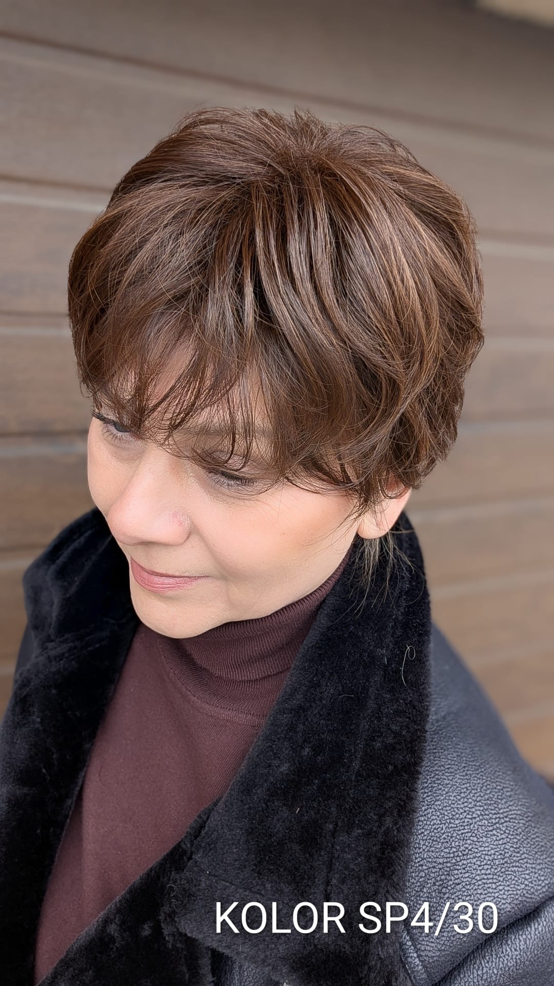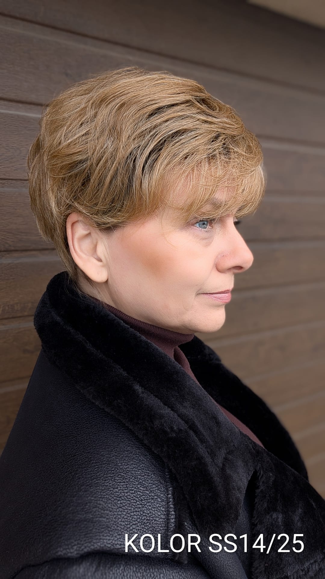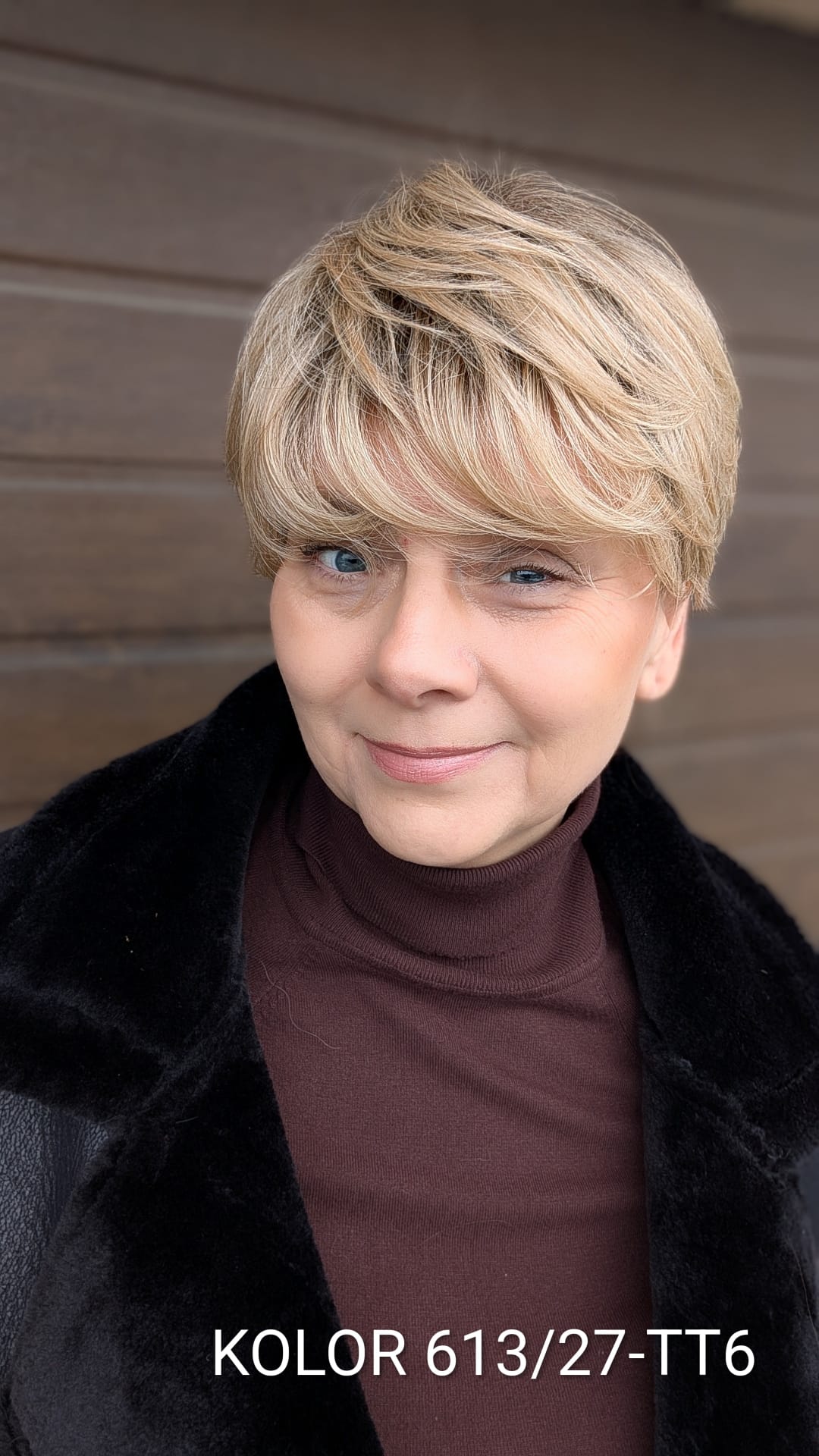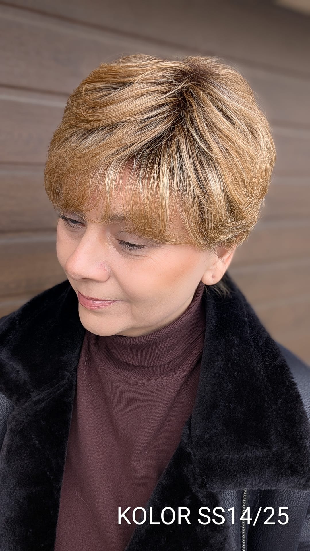 Peruka Elżbieta to klasyczna, krótka fryzura z nowoczesnym wykończeniem, która zachwyca naturalnym układem i lekkością formy. Włosy są delikatnie wycieniowane i miękko ułożone, z subtelnym uniesieniem u nasady, co nadaje fryzurze objętości i bardzo twarzowego charakteru. Grzywka układa się naturalnie, lekko opadając na czoło, dzięki czemu całość wygląda świeżo, elegancko i niezwykle kobieco. To model idealny dla kobiet ceniących wygodę, klasykę i dopracowany wygląd – doskonały zarówno na co dzień, jak i na bardziej eleganckie okazje, bez potrzeby długiej stylizacji.