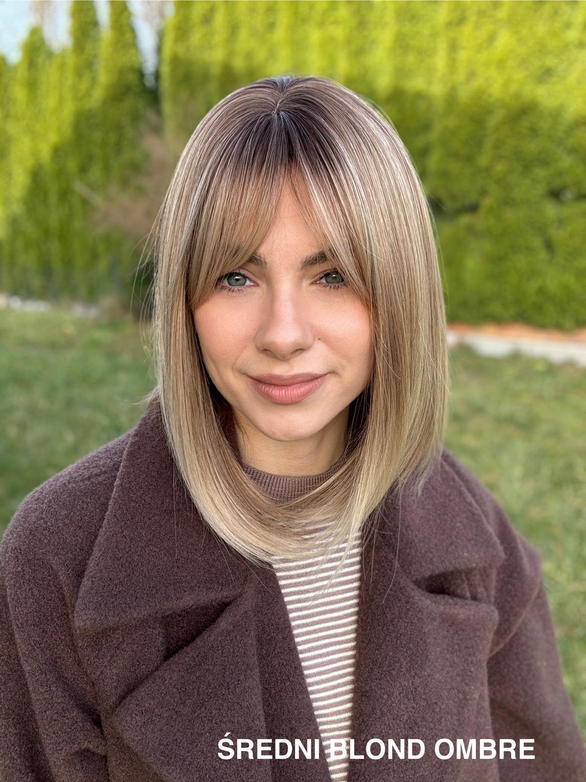 IGA to klasyczny bob o długości około 35 cm z delikatną, prostą grzywką, która nadaje fryzurze miękkości i bardzo naturalnego charakteru. To ponadczasowy model, który wygląda elegancko w każdej sytuacji — lekki, kobiecy i niezwykle twarzowy. Wykonana z wysokiej jakości włókna japońskiego, układa się miękko i jest bardzo komfortowa w codziennym noszeniu. Wygodny, przewiewny czepek z regulacją pozwala na idealne dopasowanie. Kolor to piękny efekt balayage: średni blond przechodzący w jasny blond, który dodaje fryzurze świeżości i naturalnego blasku.