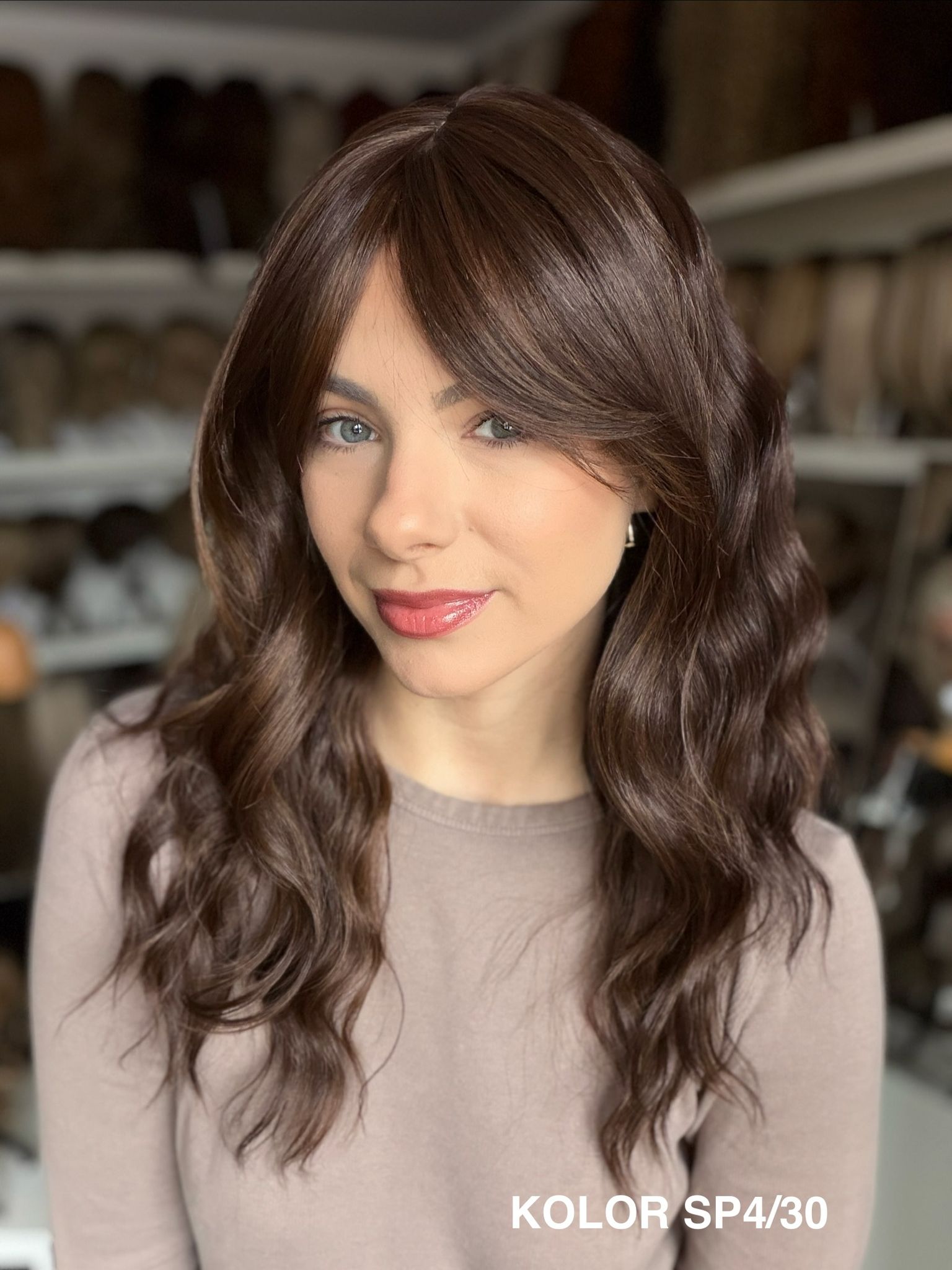 Peruka Klementyna falowane pasma z grzywką kurtynową