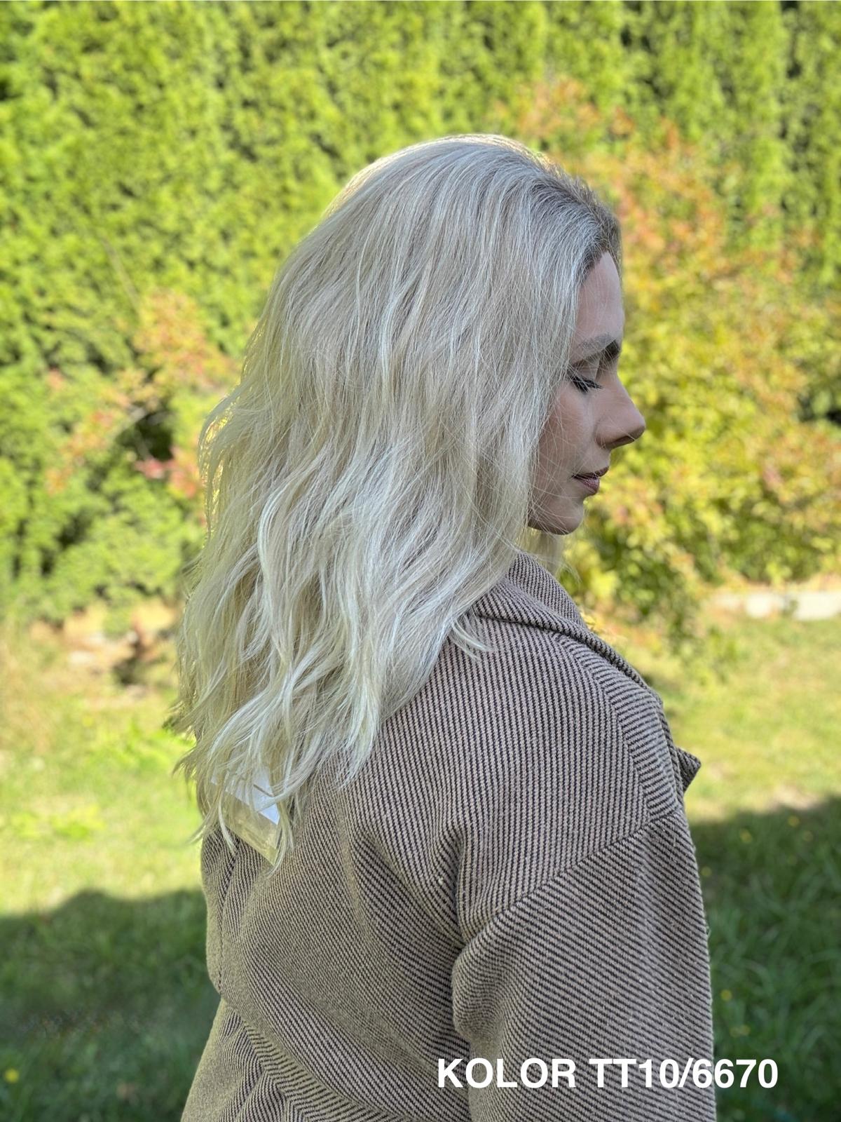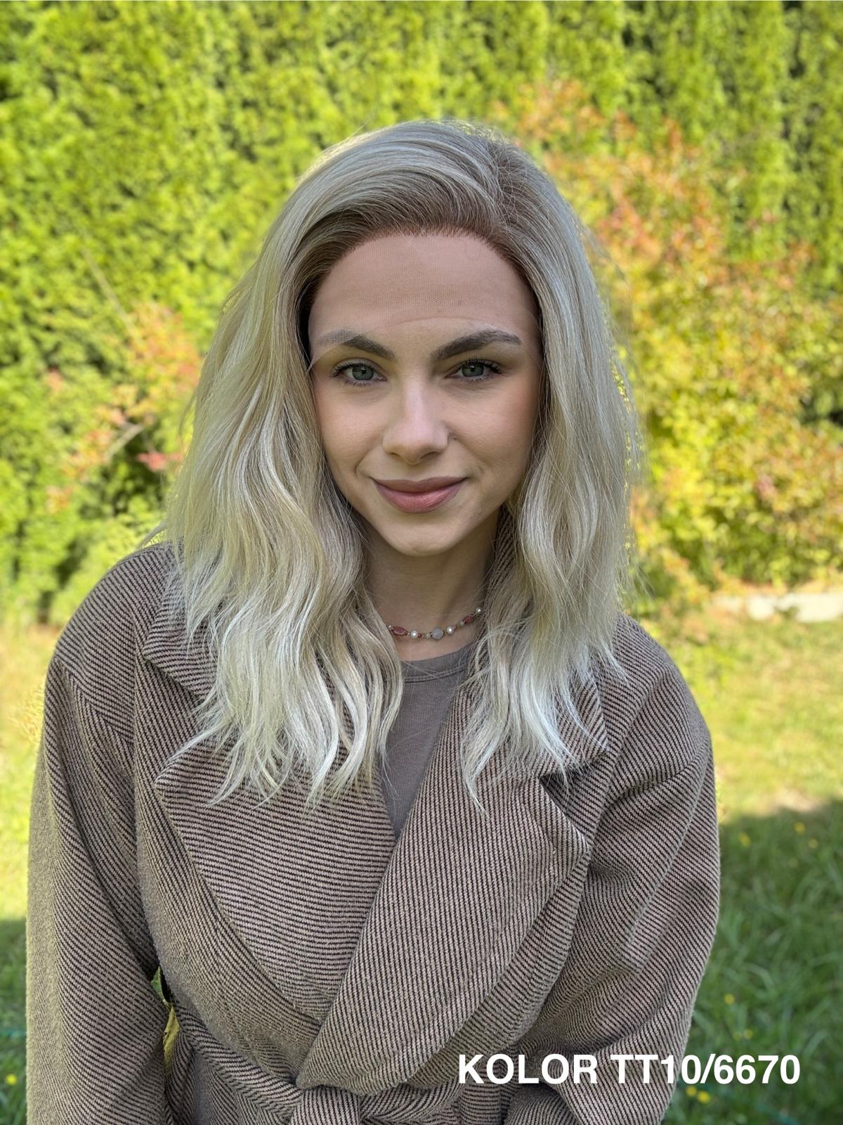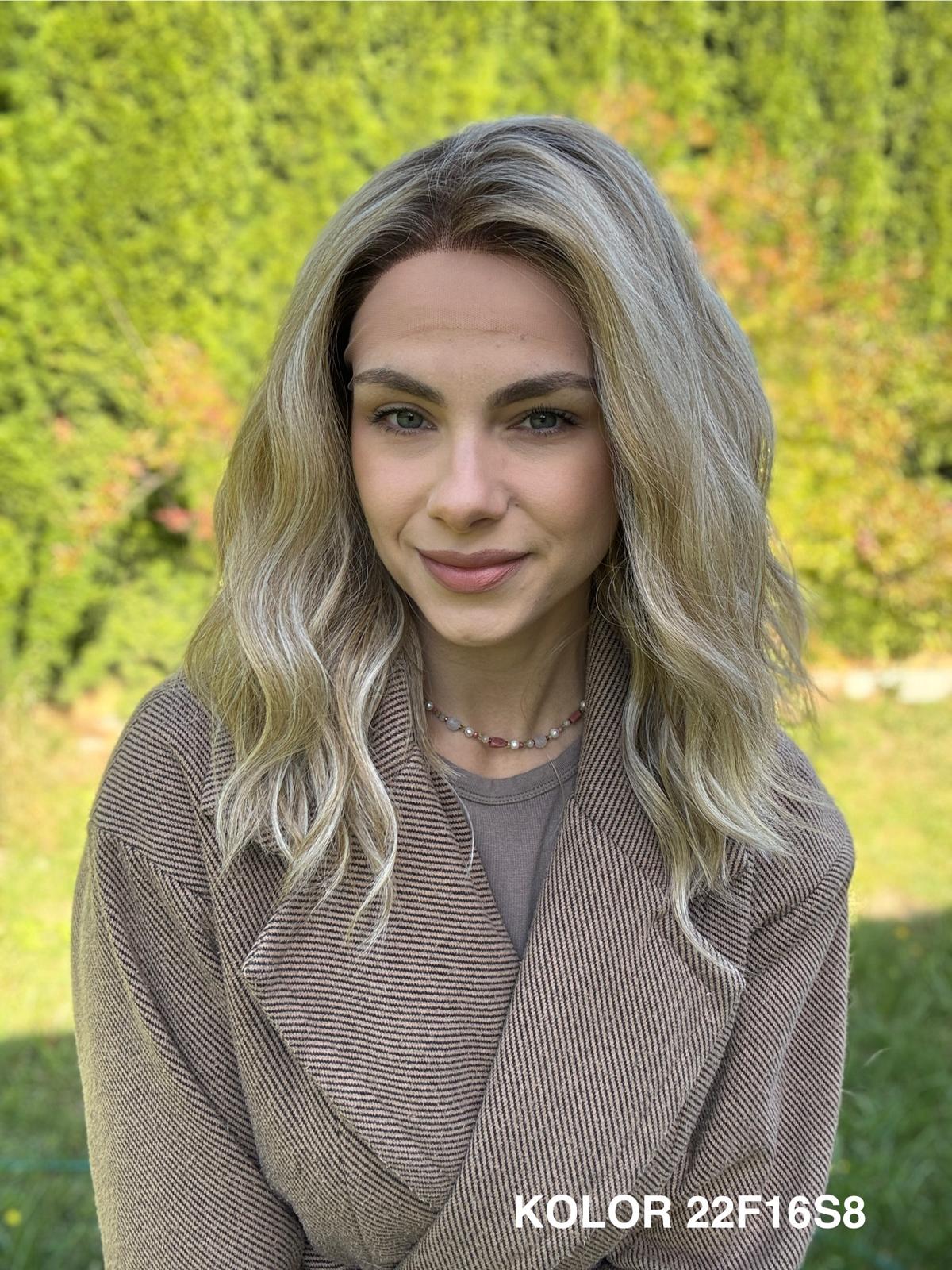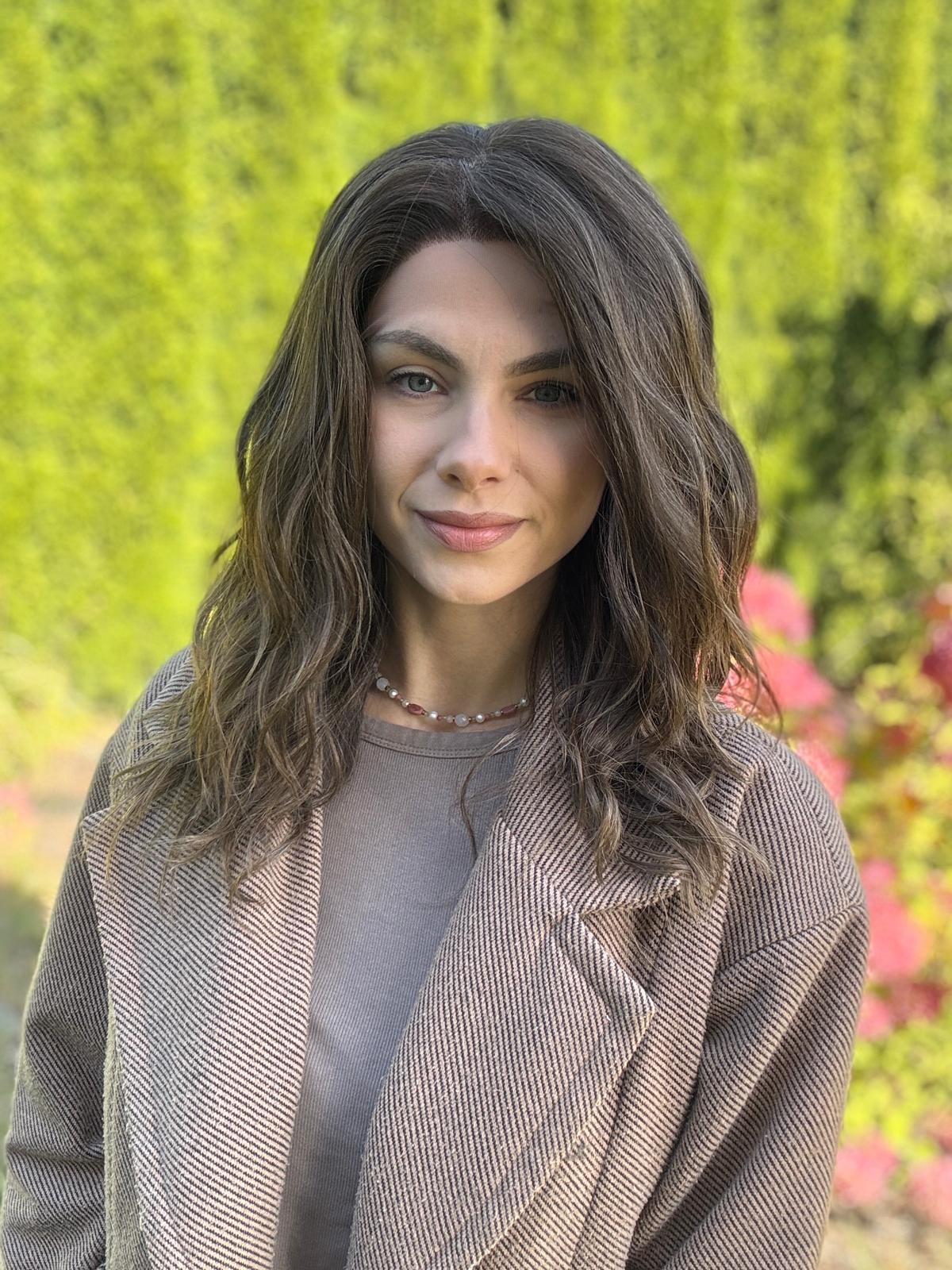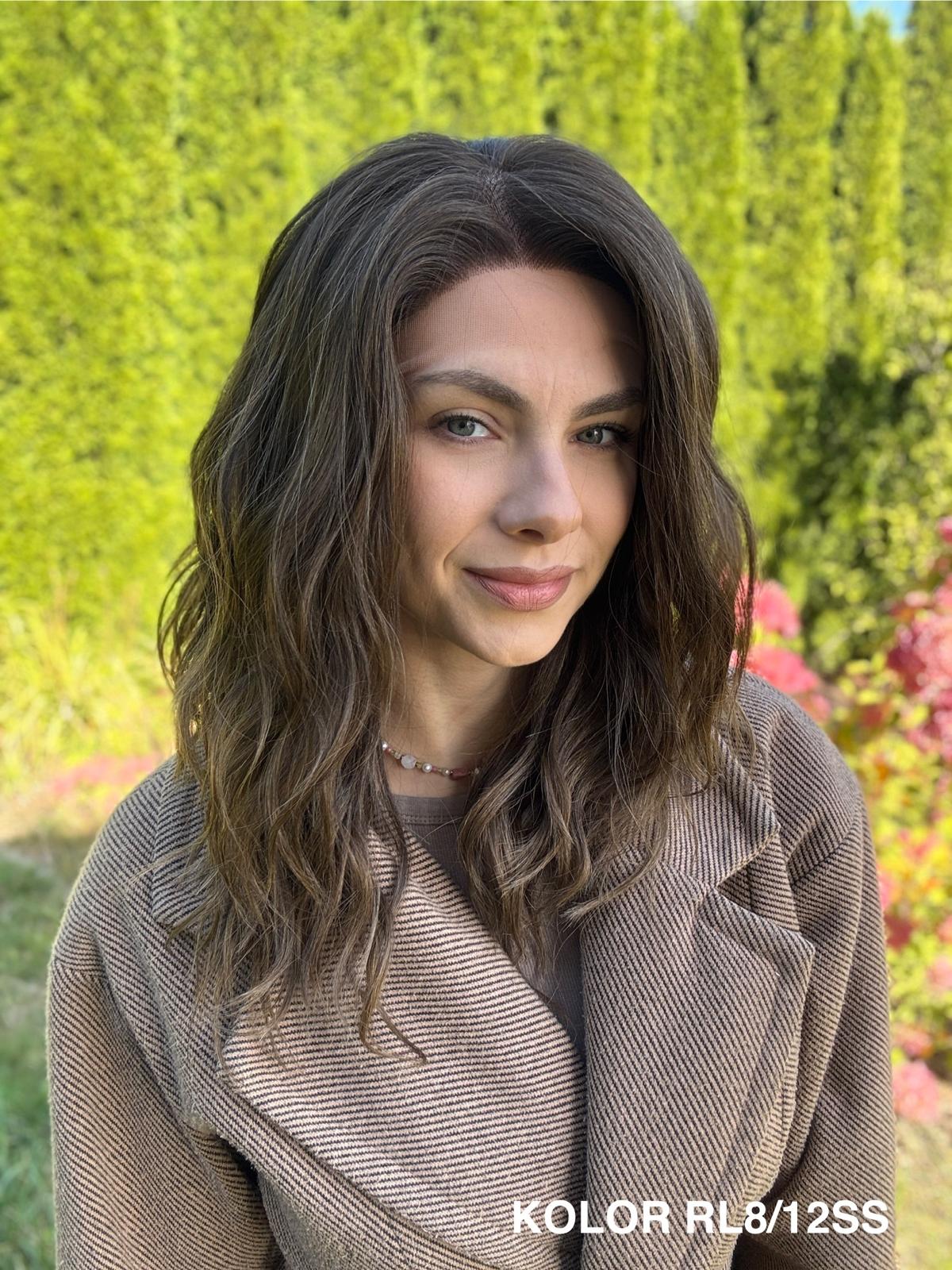 Peruka „Kleo” – delikatna, lekko falowana fryzura o niezwykle naturalnym wyglądzie. Włosy układają się miękko i swobodnie, dając efekt lekkości i naturalnego ruchu – taki przyjemny, codzienny „luźny look”, który zawsze wygląda świeżo i kobieco.
