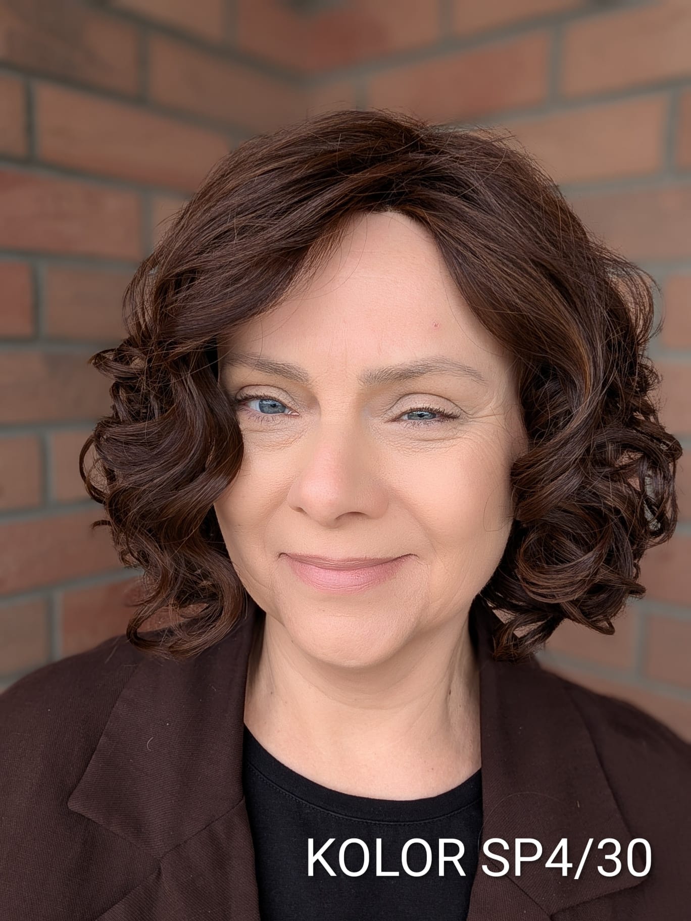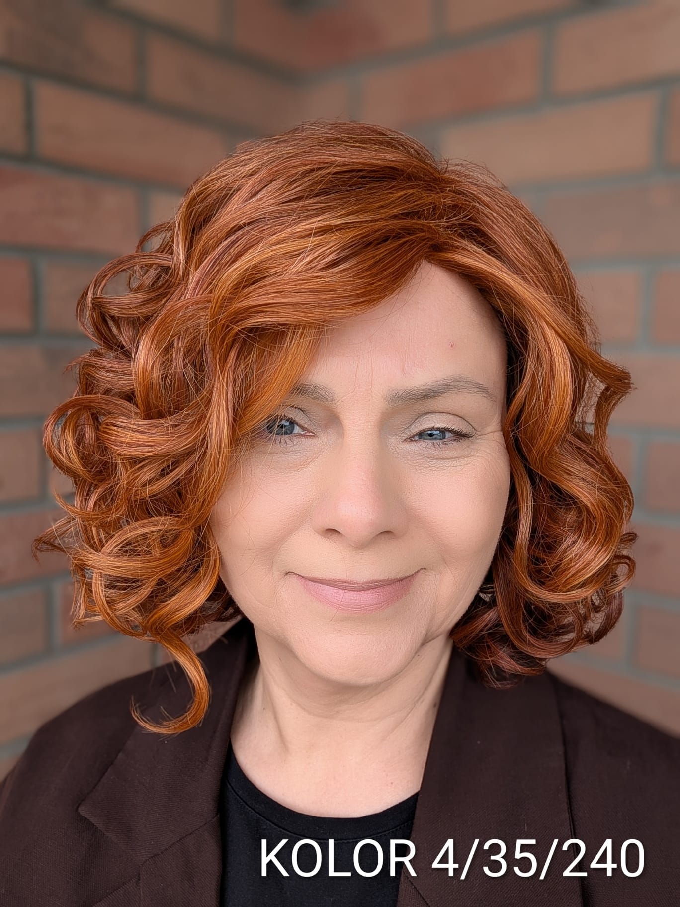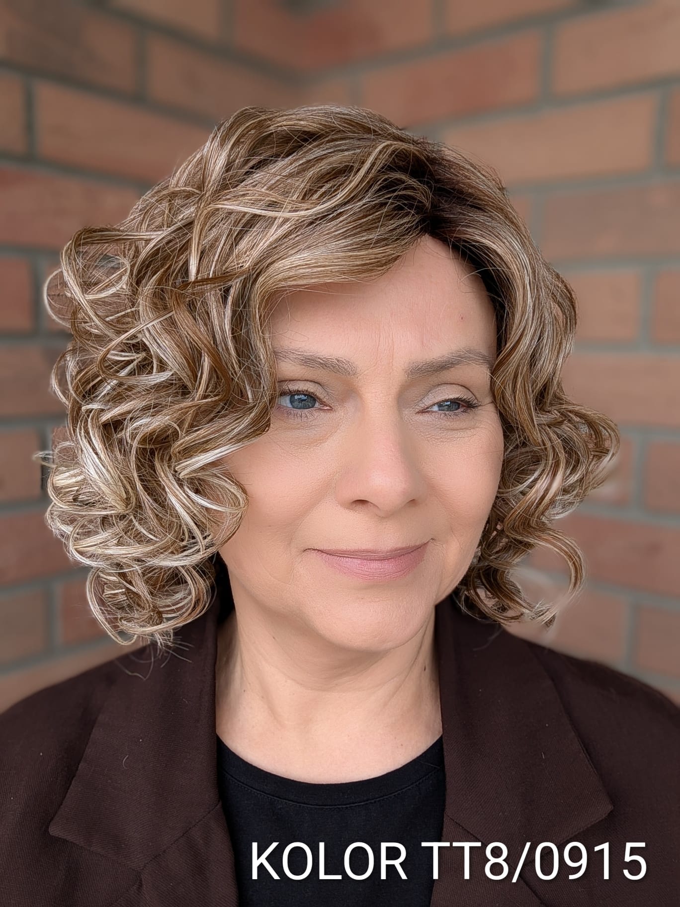- Rodzaj fryzury: Półdługie luźne loki z efektem tapiru, przedziałek z lewej strony.