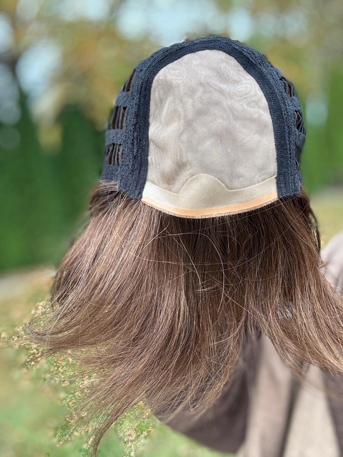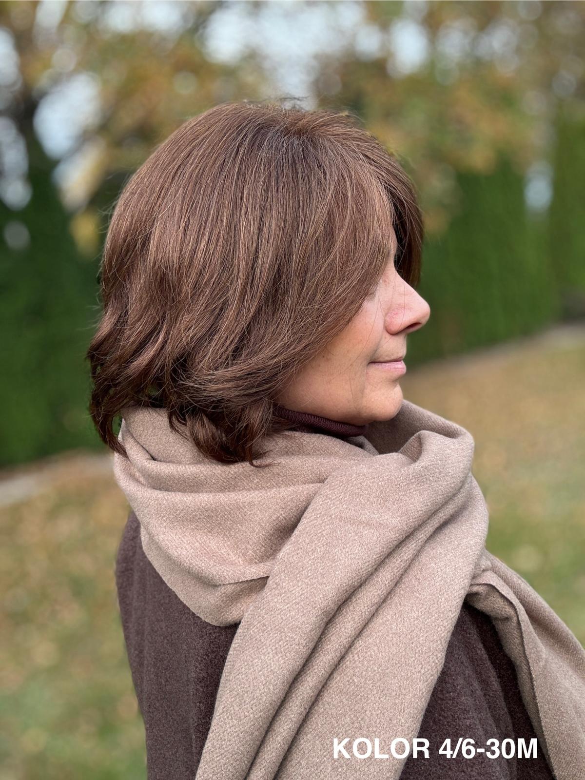 Naturalna elegancja i lekkość w najlepszym wydaniu 🌸 Marta to peruka z delikatnych, miękkich włosów naturalnych, które można swobodnie stylizować – tworzą piękne, naturalne fryzury. Włosy zostały ręcznie wszyte na pełnym Mono Topie, co pozwala na zmianę przedziałka i uniesienie ich u nasady. Rozmyta linia czoła sprawia, że całość wygląda niezwykle realistycznie i subtelnie.