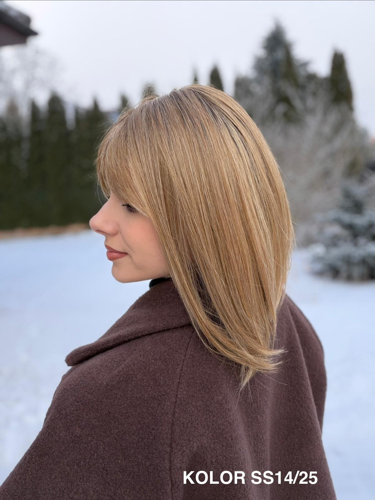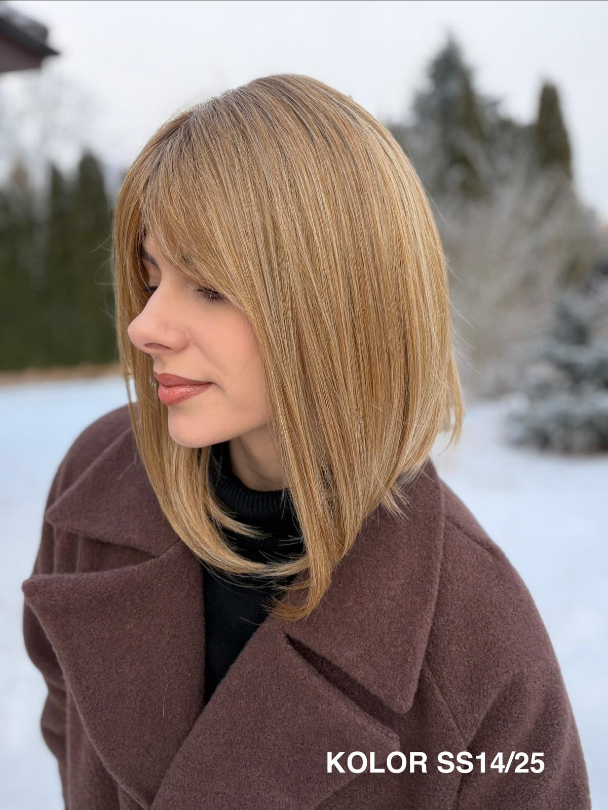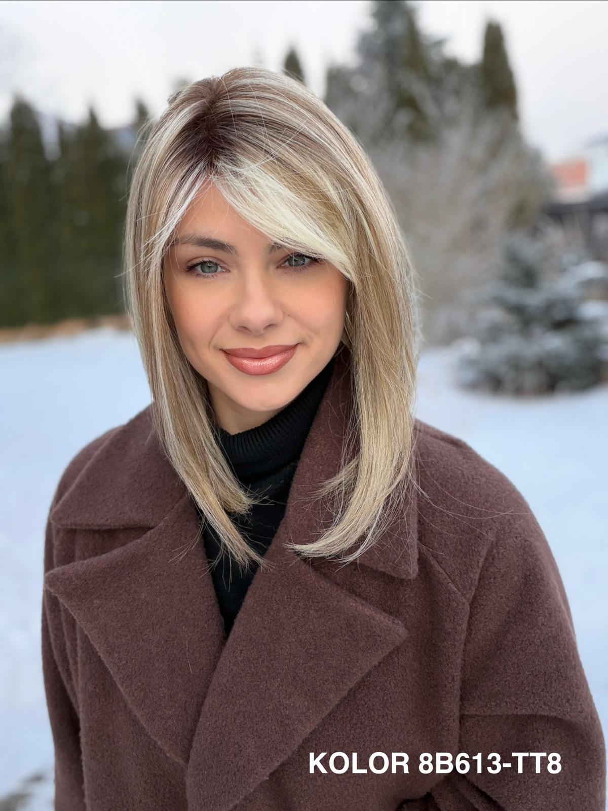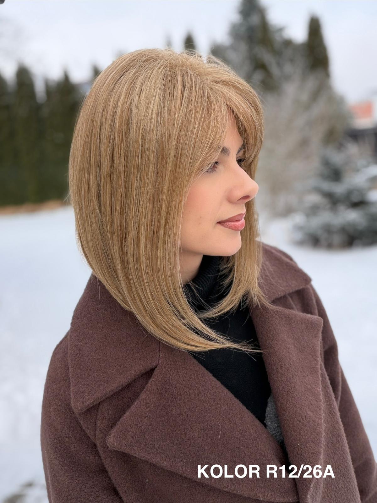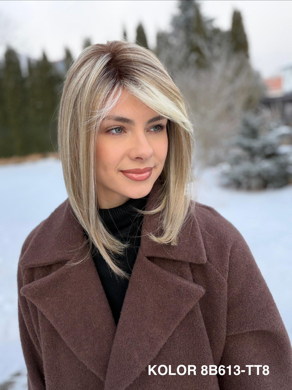 Peruka „Marysia” to wyważone połączenie nowoczesnej formy i subtelnej objętości, stworzone z myślą o kobietach, które oczekują naturalnego efektu i wysokiego komfortu noszenia. Delikatny tapir unosi włosy u nasady, nadając fryzurze harmonijną linię bez nadmiaru ciężkości, a przemyślana ilość włosa sprawia, że peruka pozostaje lekka i niezwykle wygodna na co dzień. Klasyczny long bob ze skośnym cięciem pięknie porządkuje sylwetkę fryzury i dodaje jej eleganckiego charakteru. Budowa czepka pozwala na subtelne przesuwanie przedziałka, dzięki czemu ułożenie włosów można łatwo dopasować do rysów twarzy i własnych preferencji, zachowując naturalny, dopracowany wygląd ❤️