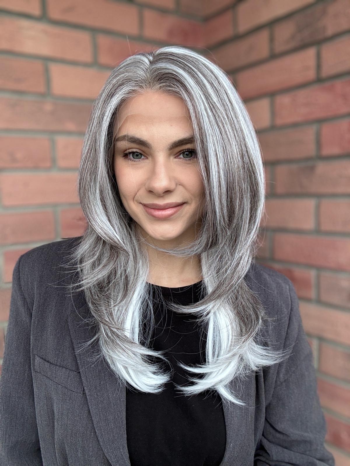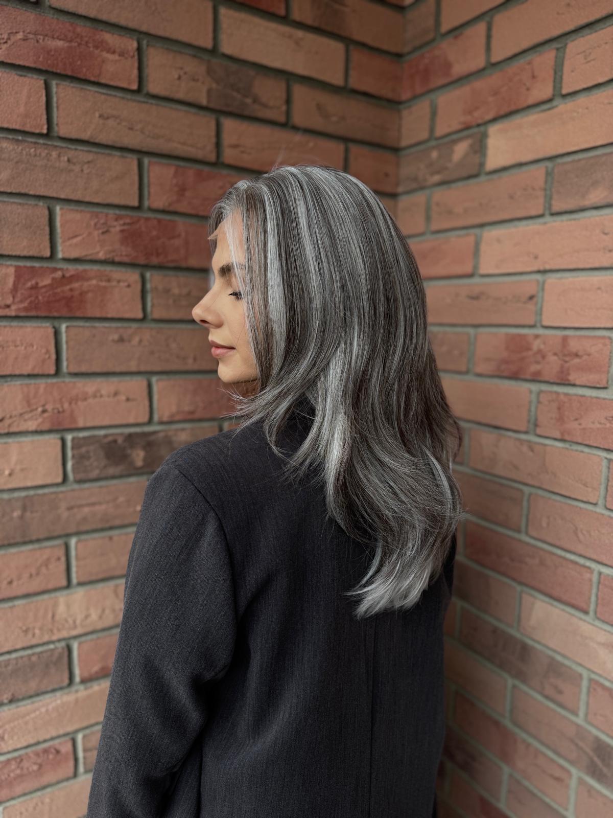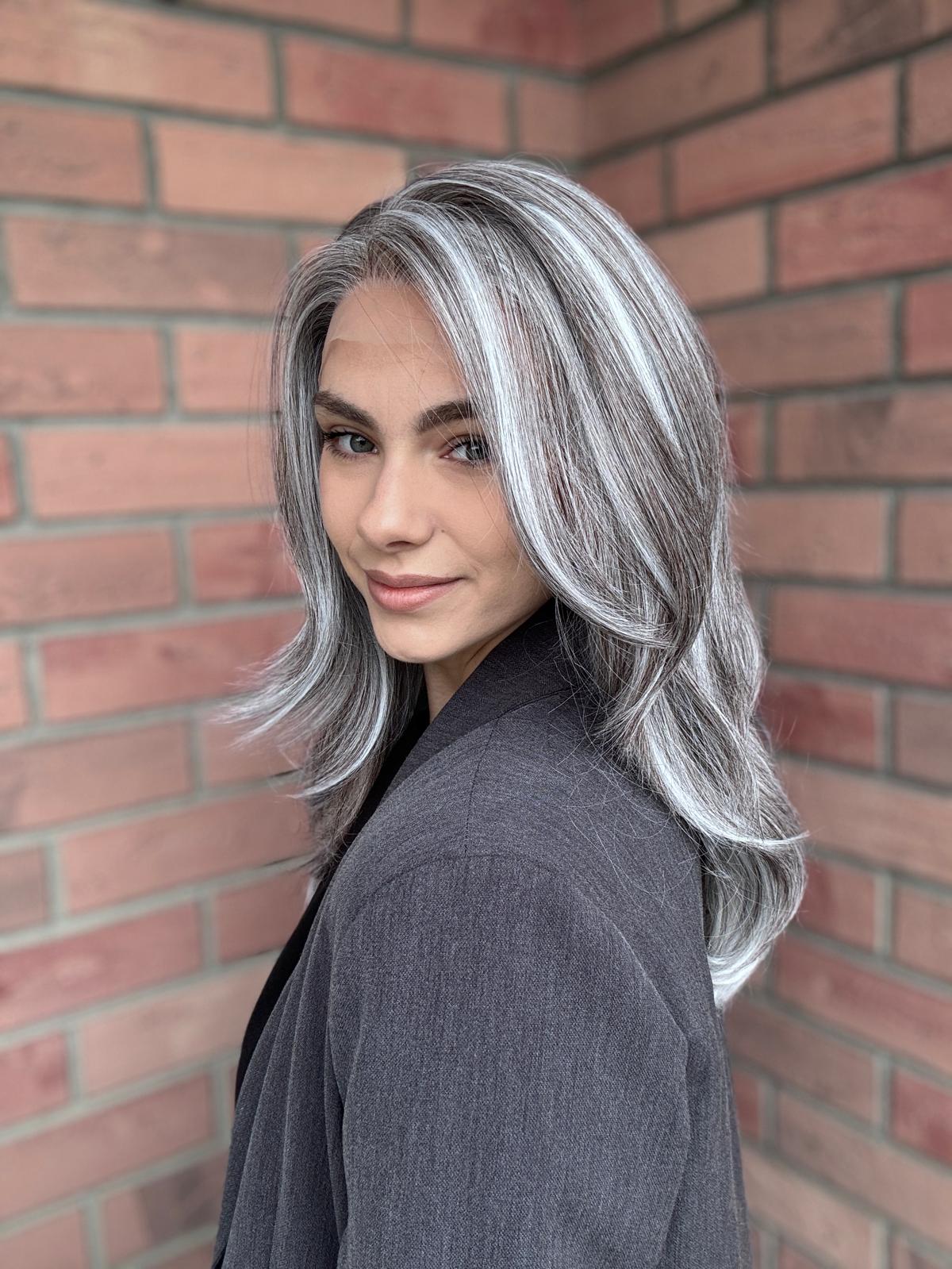 Peruka „Matylda” Lace Front, siwy balayage