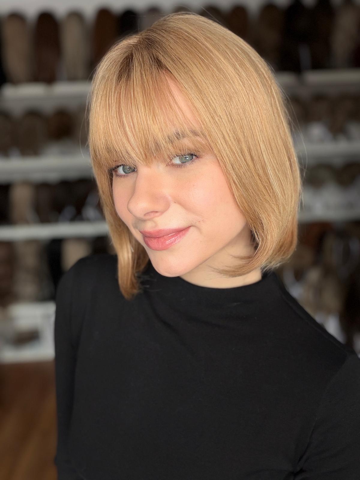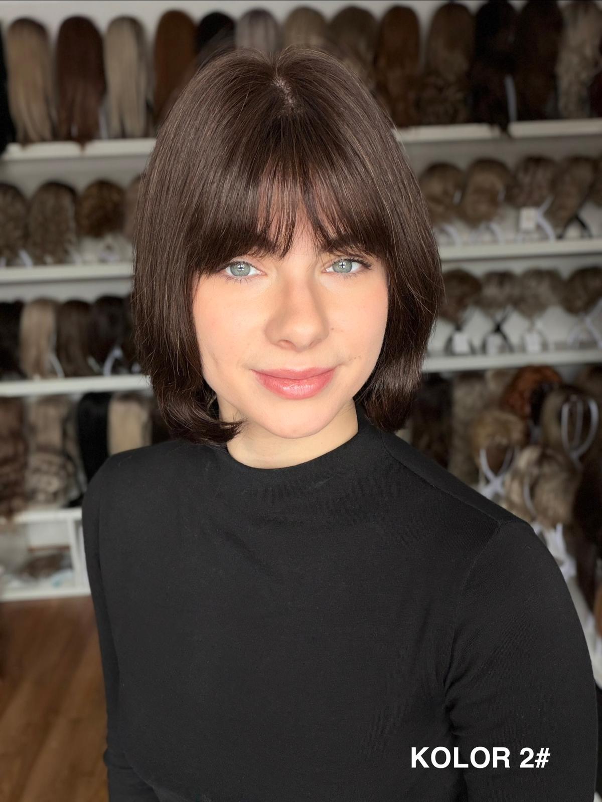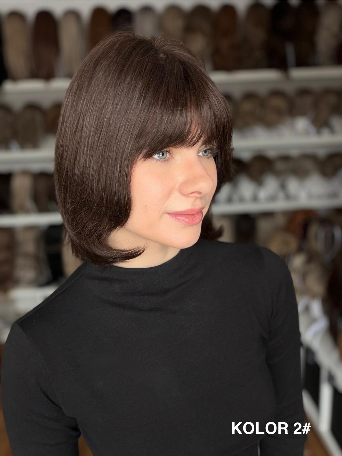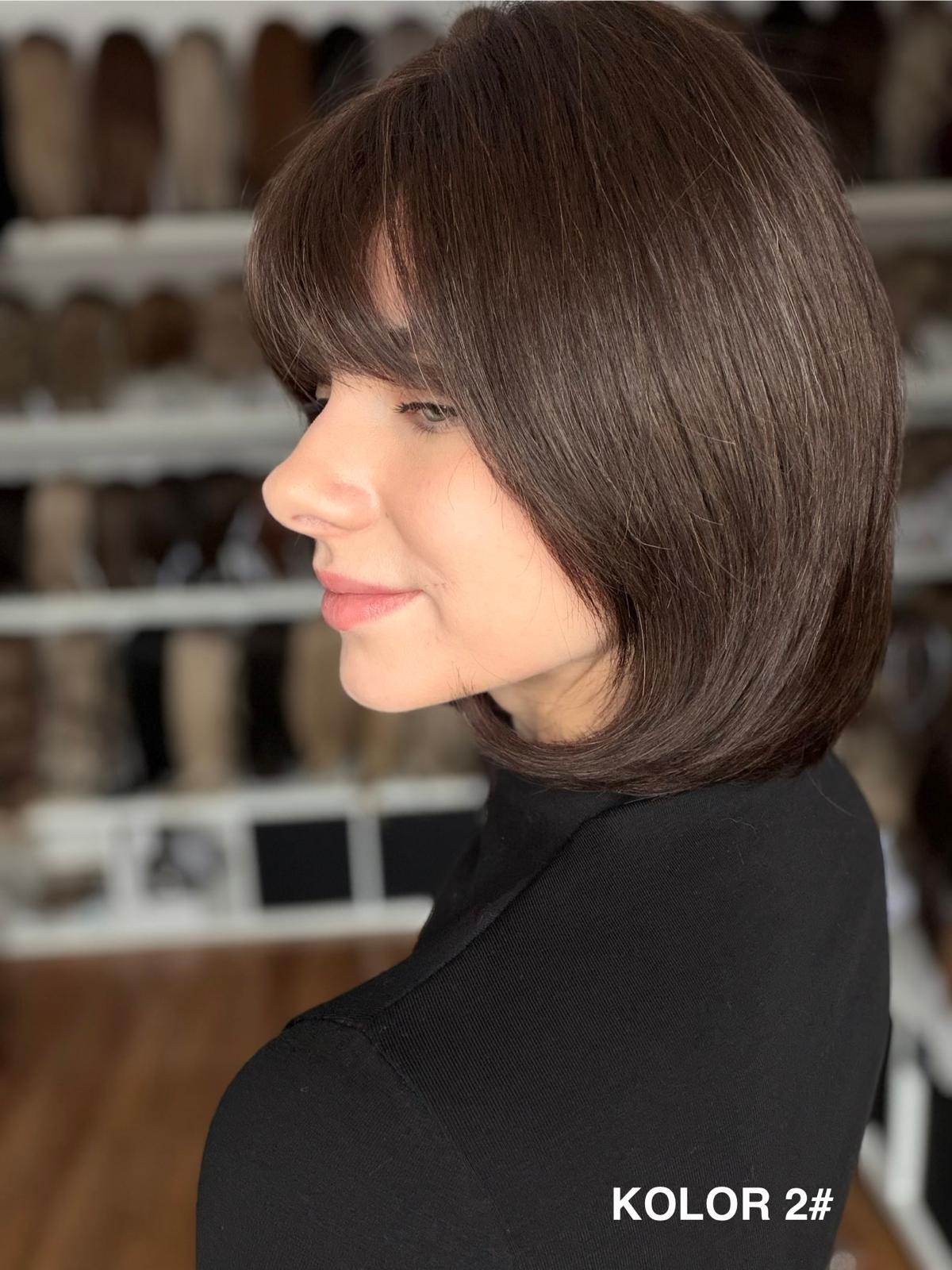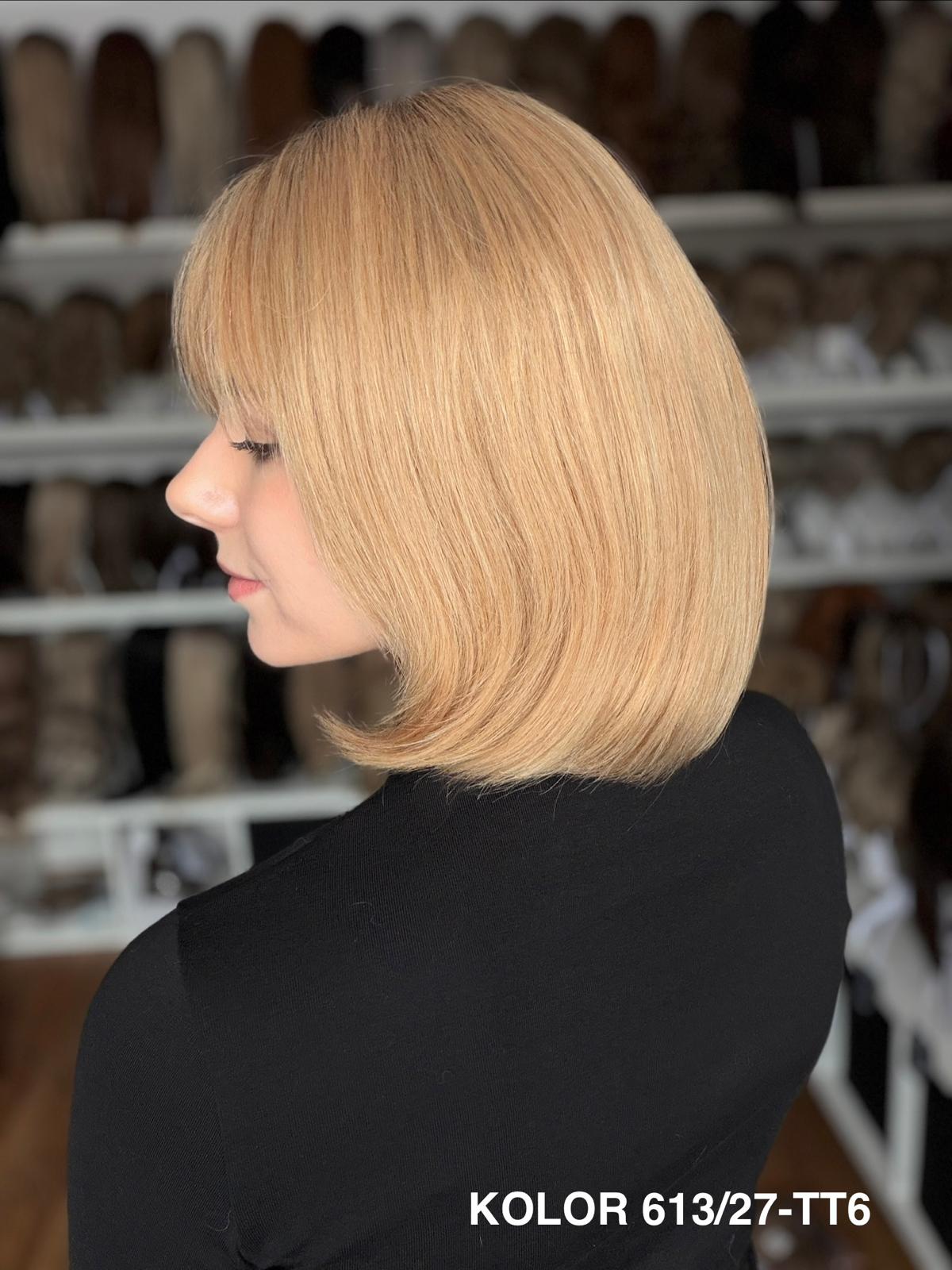 Peruka Mirebel to druga propozycja w naszej kolekcji włosów naturalnych Remy – stworzona z myślą o kobietach, które oczekują najwyższej jakości, naturalnego efektu i pełnej swobody stylizacji. Fryzura prezentuje się niezwykle czysto i elegancko, z miękko układającymi się pasmami, które pięknie pracują przy ruchu i subtelnie odbijają się od nasady. Dzięki konstrukcji Mono Top możliwe jest dowolne przekładanie włosów, modelowanie pojedynczych pasm i układanie fryzury dokładnie tak, jak własnych włosów. Całość wygląda lekko, świeżo i bardzo naturalnie – bez efektu ciężkości czy sztuczności. Włosy Remy są wyjątkowo delikatne w dotyku, podatne na stylizację i strukturą niezwykle zbliżone do naszych słowiańskich włosów, co daje poczucie komfortu i luksusu przy każdym noszeniu.