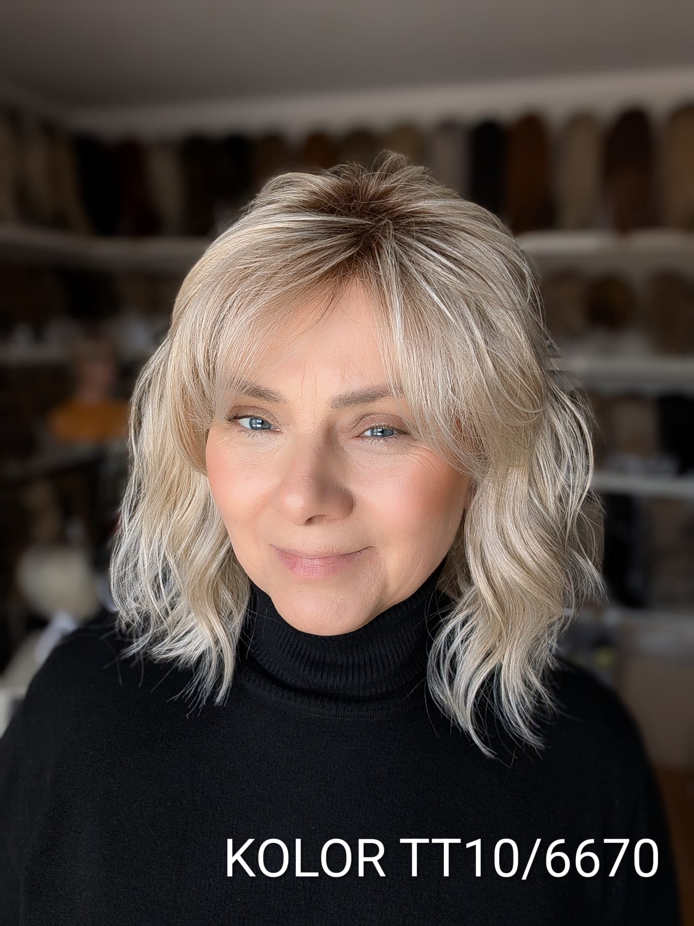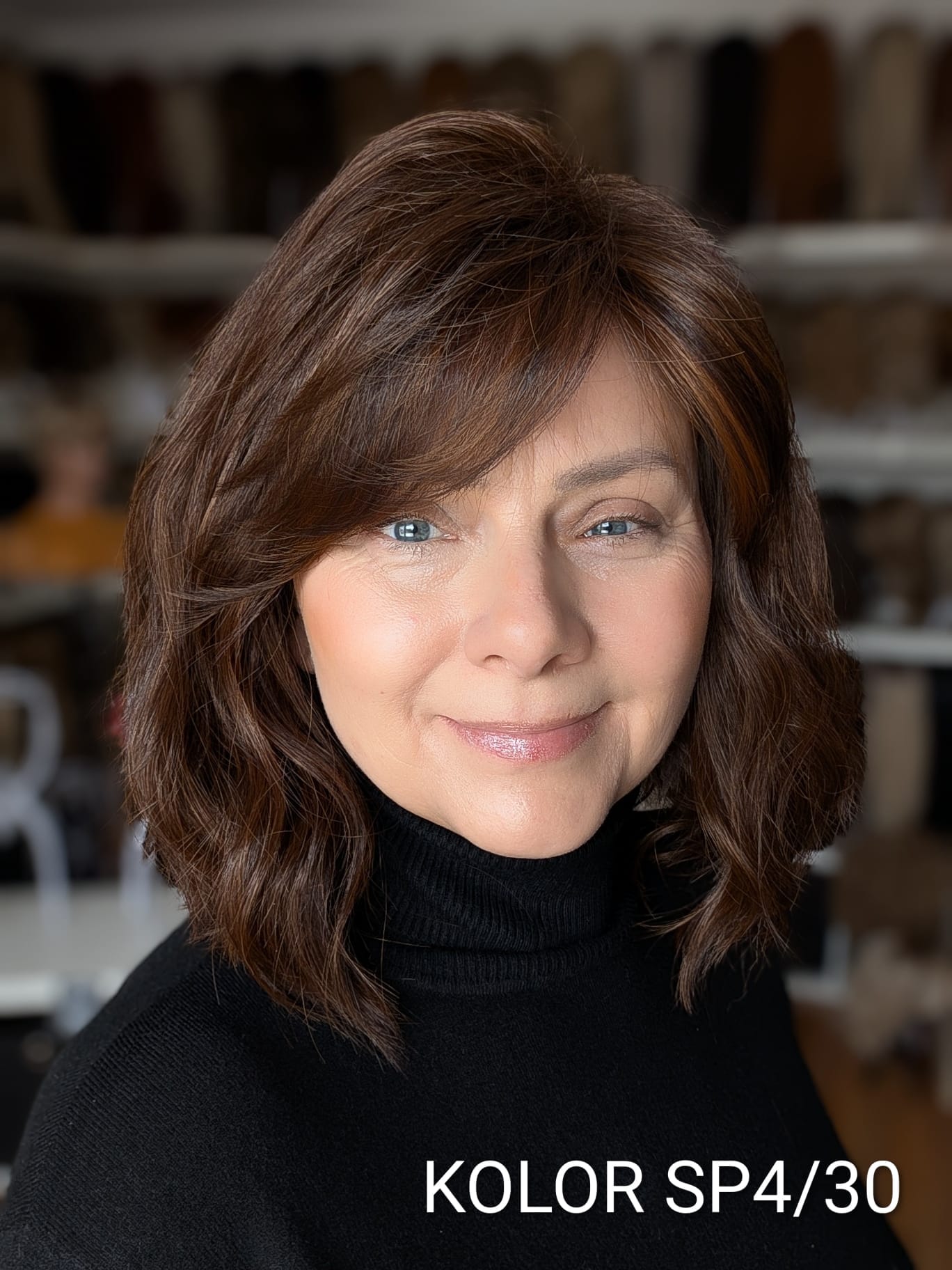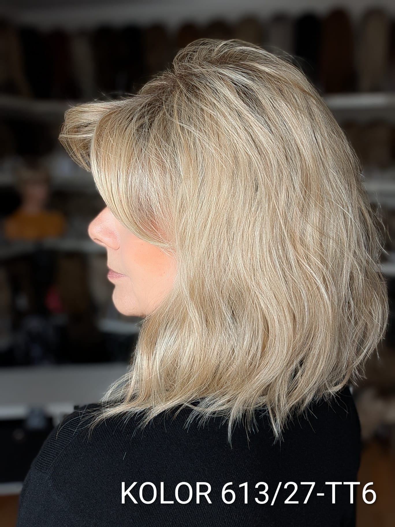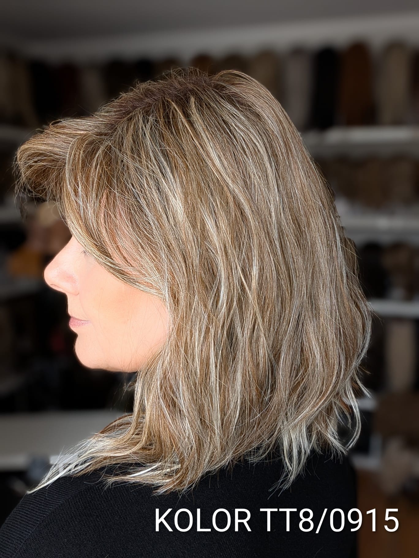 Peruka Patrycja to kobieca fryzura o średniej długości z delikatnym efektem tapiru, który subtelnie unosi włosy u nasady i dodaje objętości całej stylizacji. Lekki, cieniutki włos syntetyczno-termiczny pięknie układa się wokół twarzy, tworząc naturalny, miękki efekt przypominający włosy ludzkie. Zastosowanie monofilamentu na linii czoła sprawia, że fryzura wygląda niezwykle realistycznie, jakby włosy wyrastały bezpośrednio ze skóry. Patrycja to model elegancki i bardzo komfortowy – idealny zarówno na co dzień, jak i na wyjątkowe okazje.