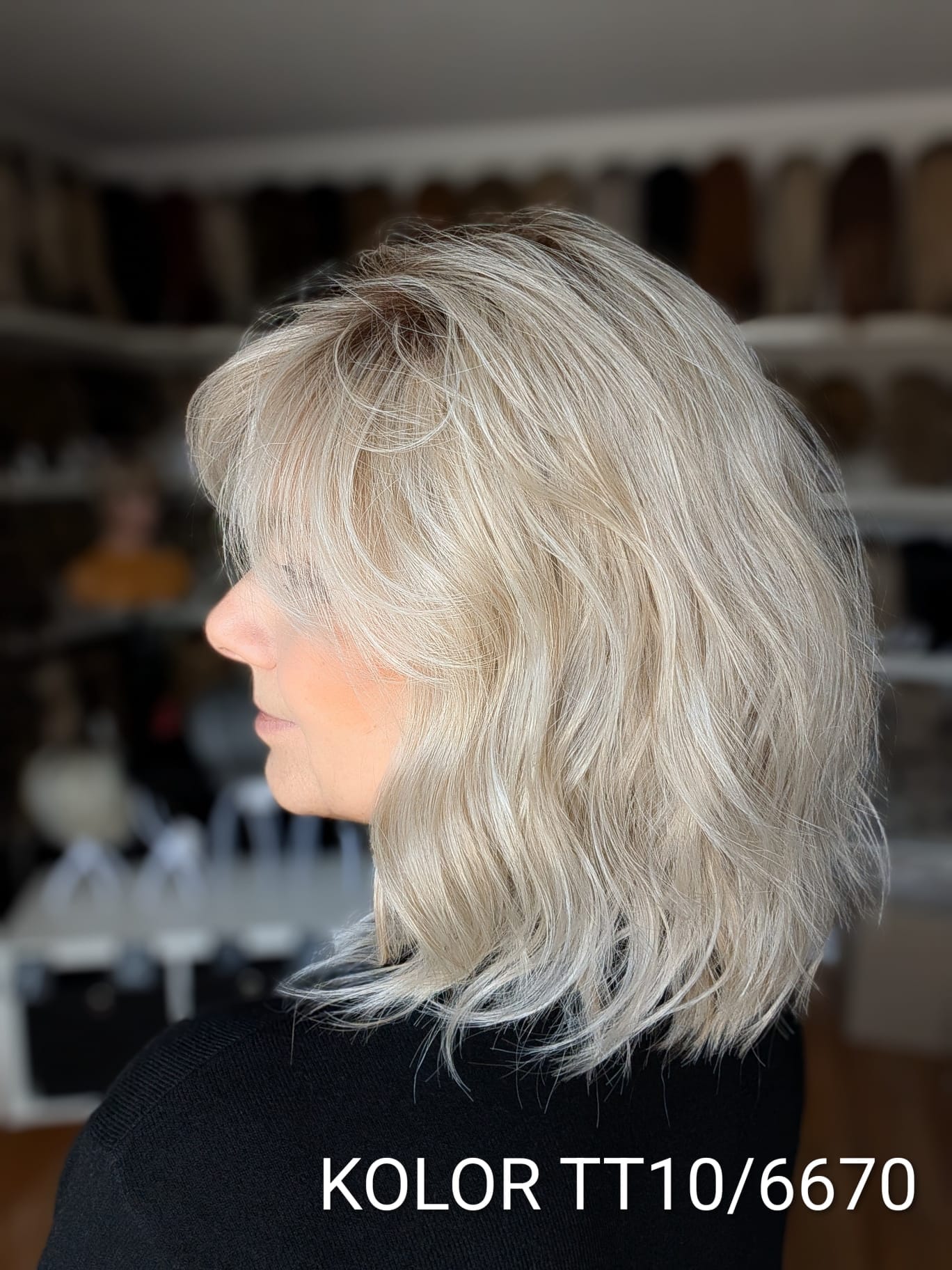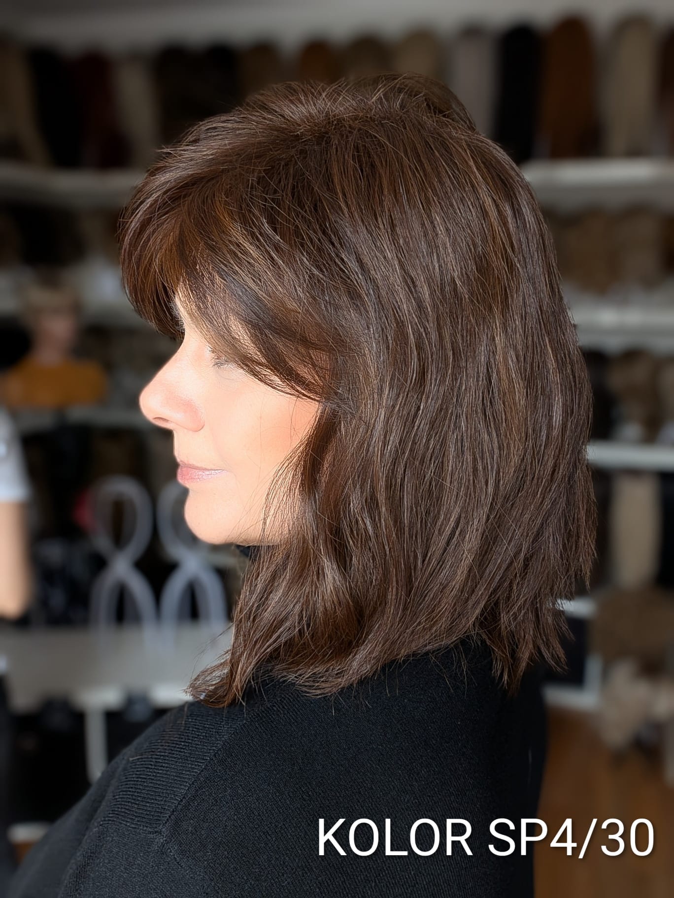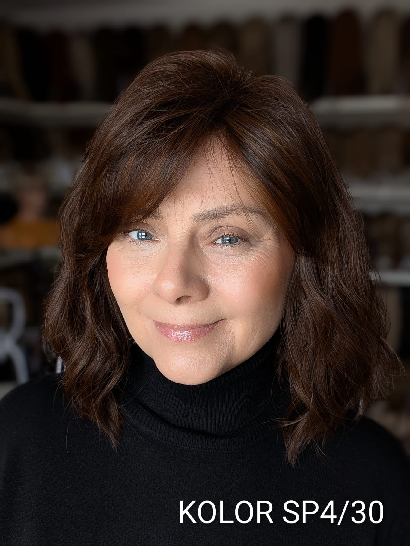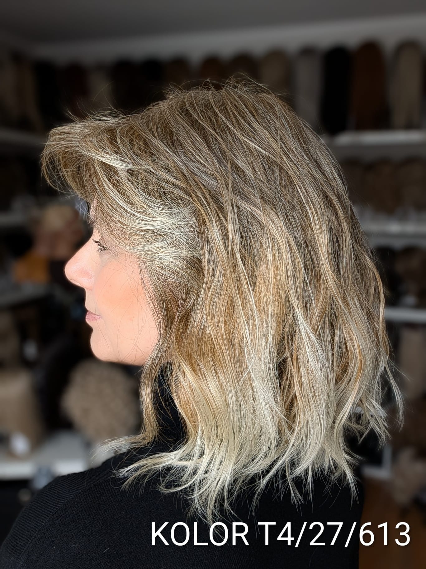 Peruka Patrycja to kobieca fryzura o średniej długości z delikatnym efektem tapiru, który subtelnie unosi włosy u nasady i dodaje objętości całej stylizacji. Lekki, cieniutki włos syntetyczno-termiczny pięknie układa się wokół twarzy, tworząc naturalny, miękki efekt przypominający włosy ludzkie. Zastosowanie monofilamentu na linii czoła sprawia, że fryzura wygląda niezwykle realistycznie, jakby włosy wyrastały bezpośrednio ze skóry. Patrycja to model elegancki i bardzo komfortowy – idealny zarówno na co dzień, jak i na wyjątkowe okazje.
