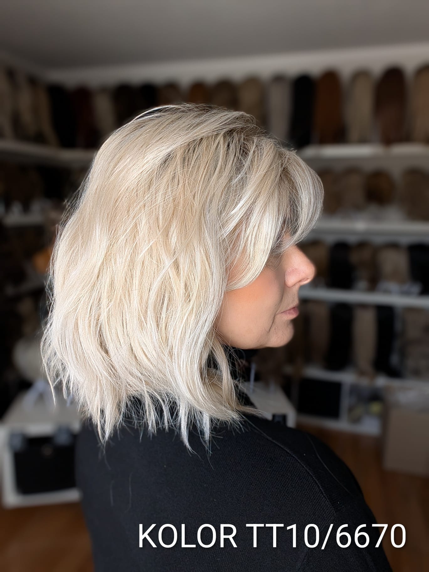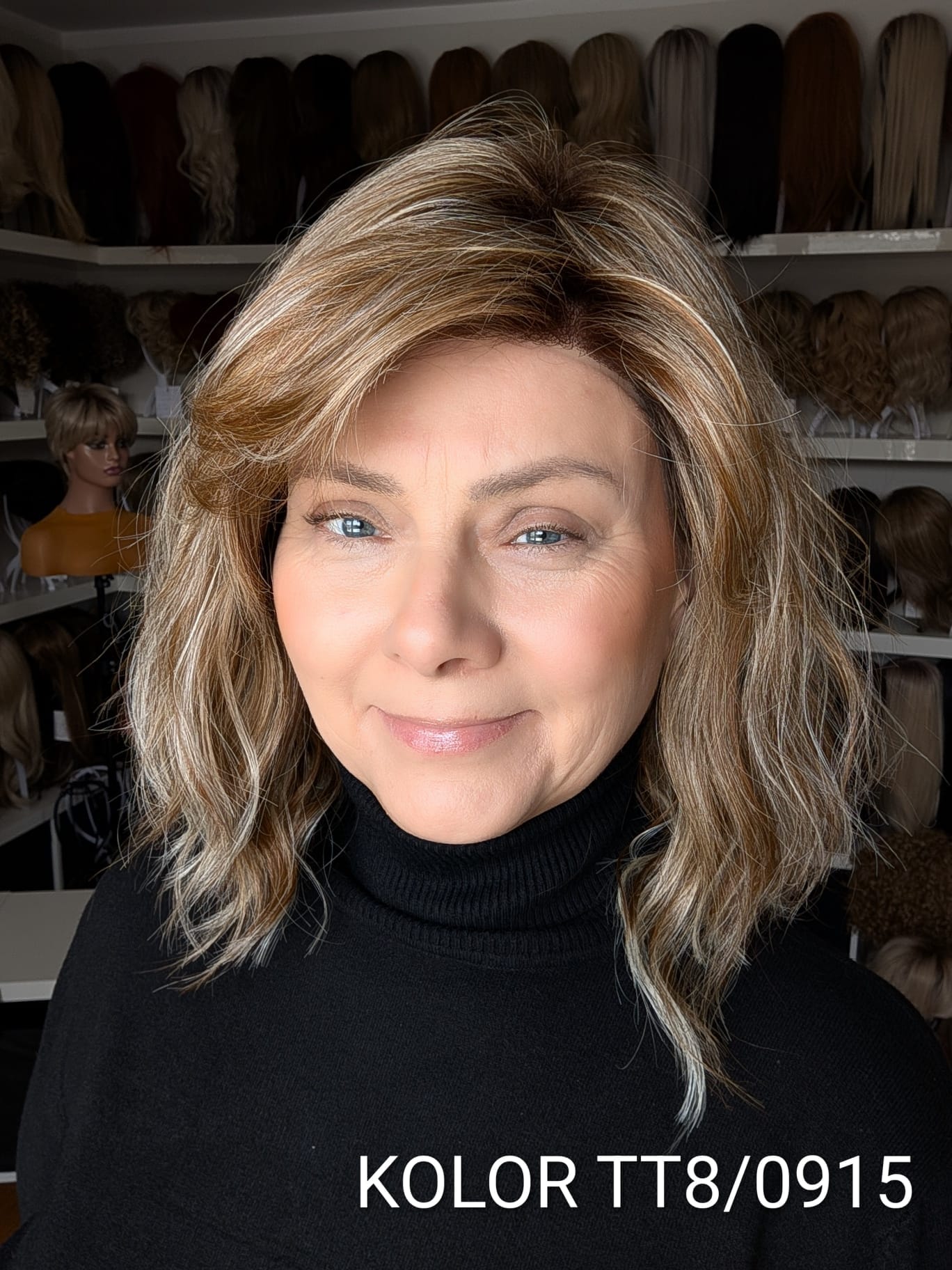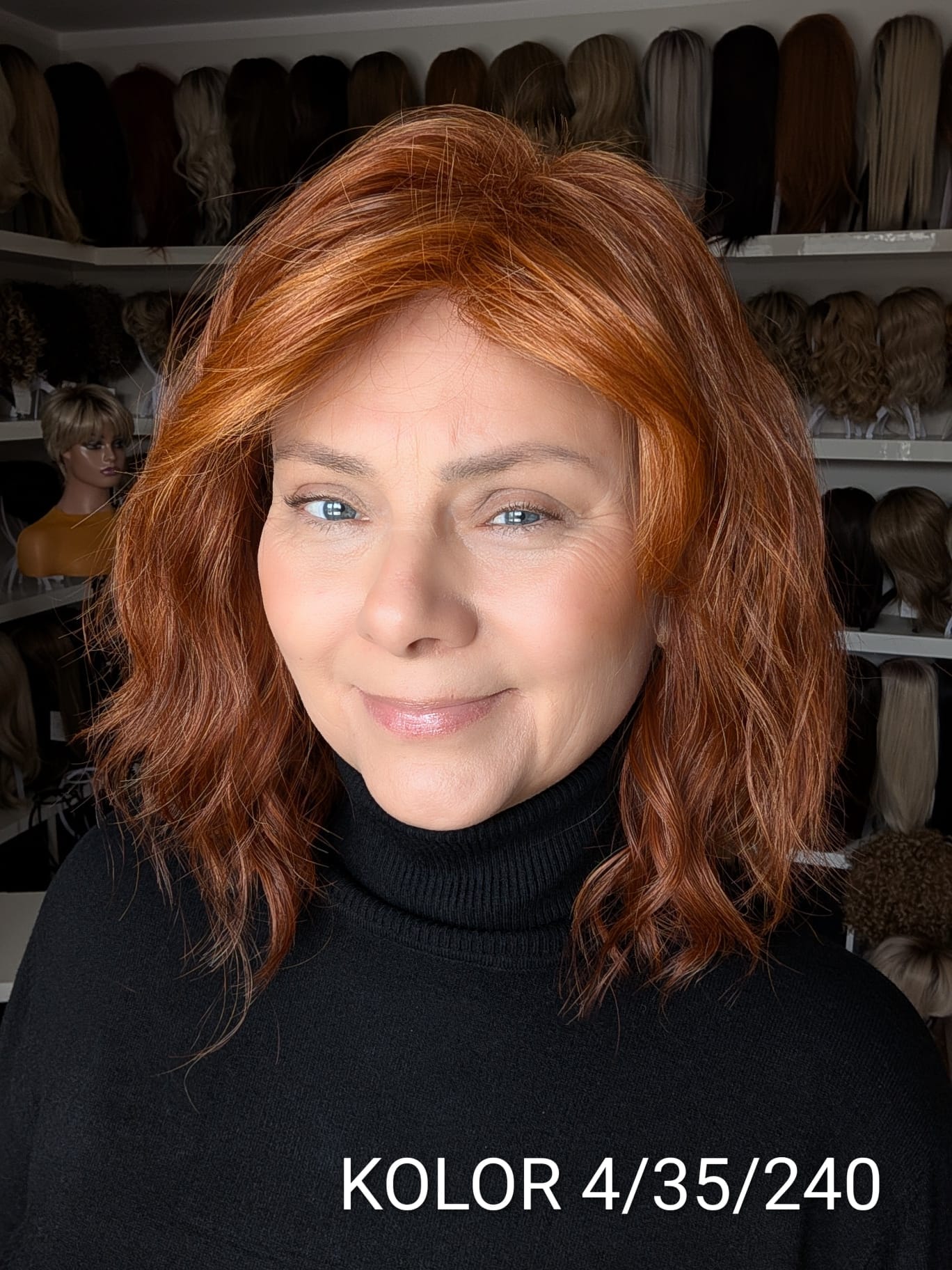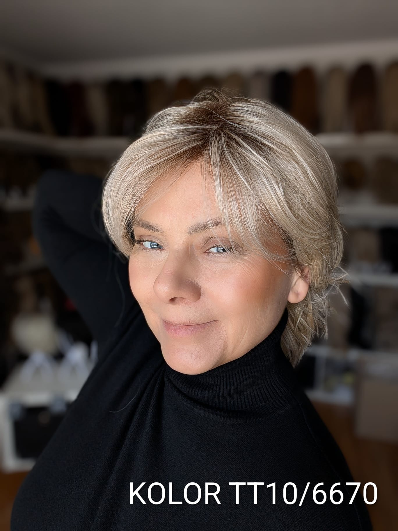 Peruka Patrycja to kobieca fryzura o średniej długości z delikatnym efektem tapiru, który subtelnie unosi włosy u nasady i dodaje objętości całej stylizacji. Lekki, cieniutki włos syntetyczno-termiczny pięknie układa się wokół twarzy, tworząc naturalny, miękki efekt przypominający włosy ludzkie. Zastosowanie monofilamentu na linii czoła sprawia, że fryzura wygląda niezwykle realistycznie, jakby włosy wyrastały bezpośrednio ze skóry. Patrycja to model elegancki i bardzo komfortowy – idealny zarówno na co dzień, jak i na wyjątkowe okazje.