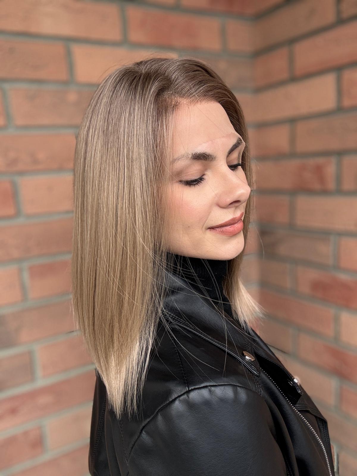 Paulina to nowoczesna i bardzo twarzowa propozycja dla kobiet, które lubią elegancję w codziennym wydaniu. Półdługie, proste włosy w pięknym blond sombre tworzą efekt zadbanego, świeżego long boba, który sprawdzi się na każdą okazję. Długość około 40 cm wygląda lekko i naturalnie, a brak grzywki dodaje całości subtelnej, klasycznej linii. Dzięki konstrukcji Lace Front 13×6 fryzura wygląda niezwykle realistycznie, umożliwia dowolną zmianę przedziałka oraz uniesienie włosów od nasady, co pozwala stworzyć indywidualny styl w kilka sekund.