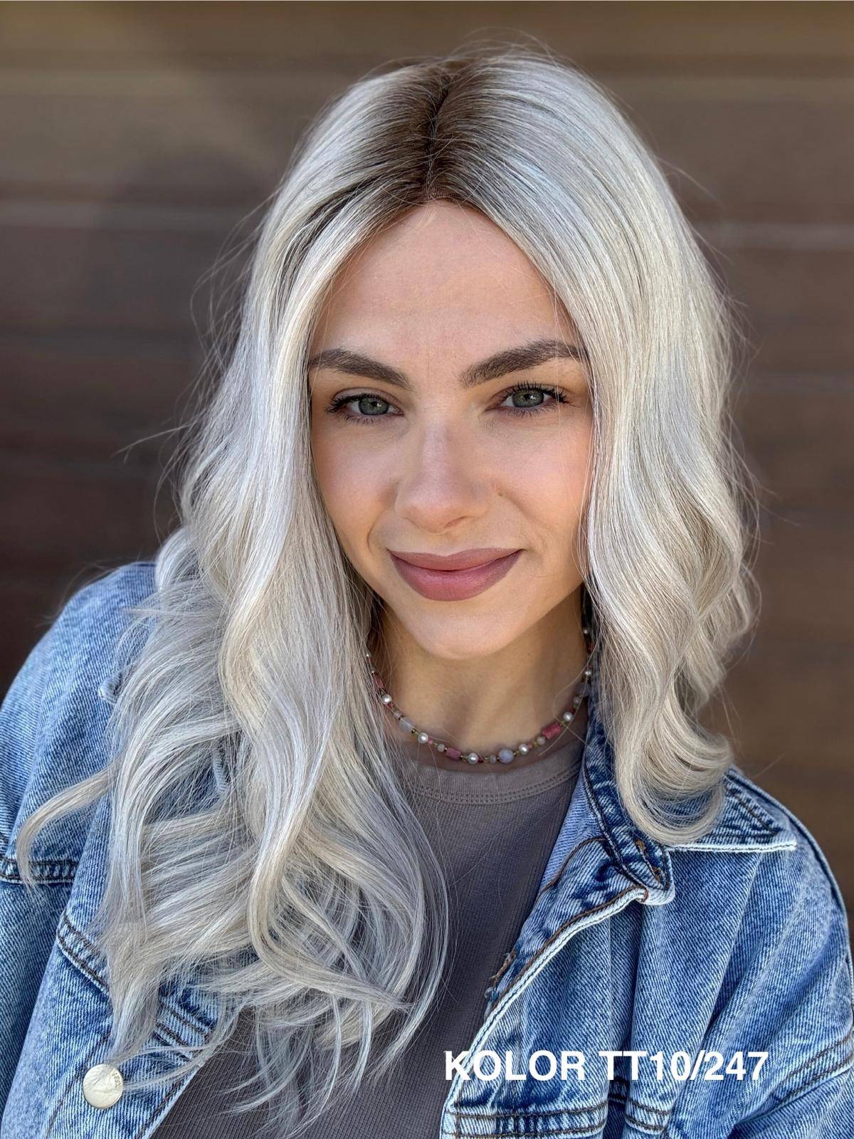 Peruka Suzana  delikatna i romantyczna peruka o miękkiej fali, która subtelnie podkreśla rysy twarzy i dodaje uroku. Dzięki wstawce z monofilamentu w miejscu przedziałka fryzura wygląda niezwykle naturalnie, a włosy sprawiają wrażenie, jakby wyrastały bezpośrednio z głowy. Lekka, nieprzytłaczająca – idealna zarówno na co dzień, jak i na ważne wyjścia.