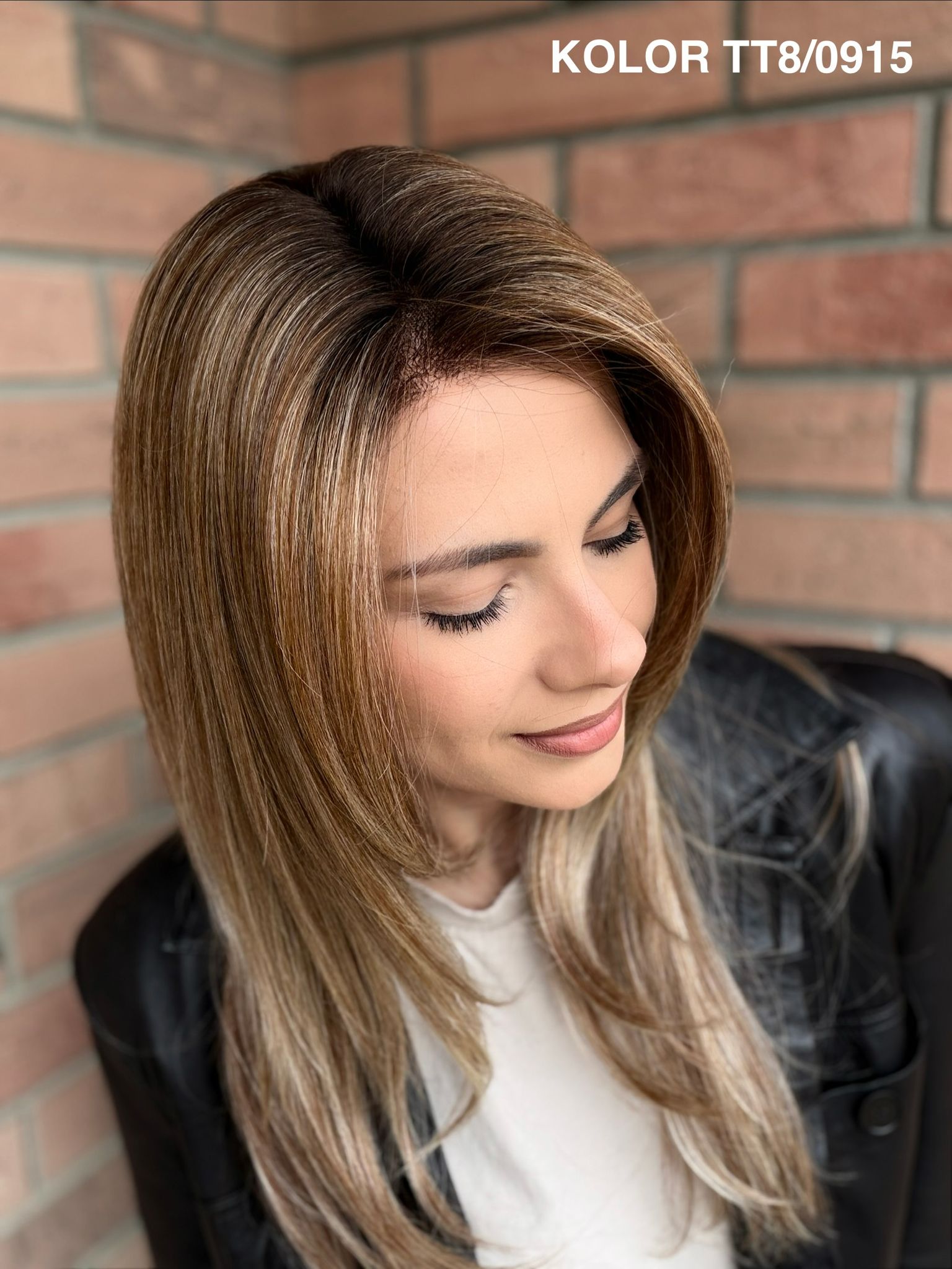 • Czepek: pełny Mono Top – bardzo realistyczna linia włosów, możliwość dowolnej zmiany przedziałka i przekładania włosów