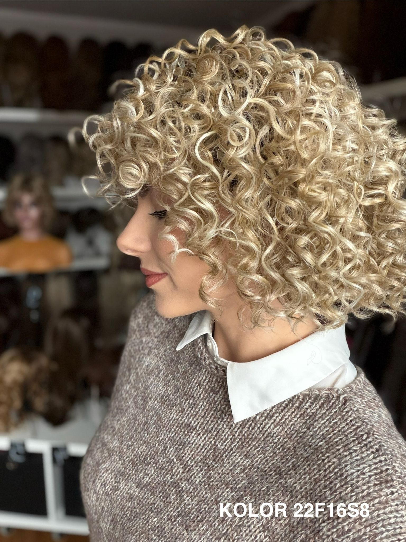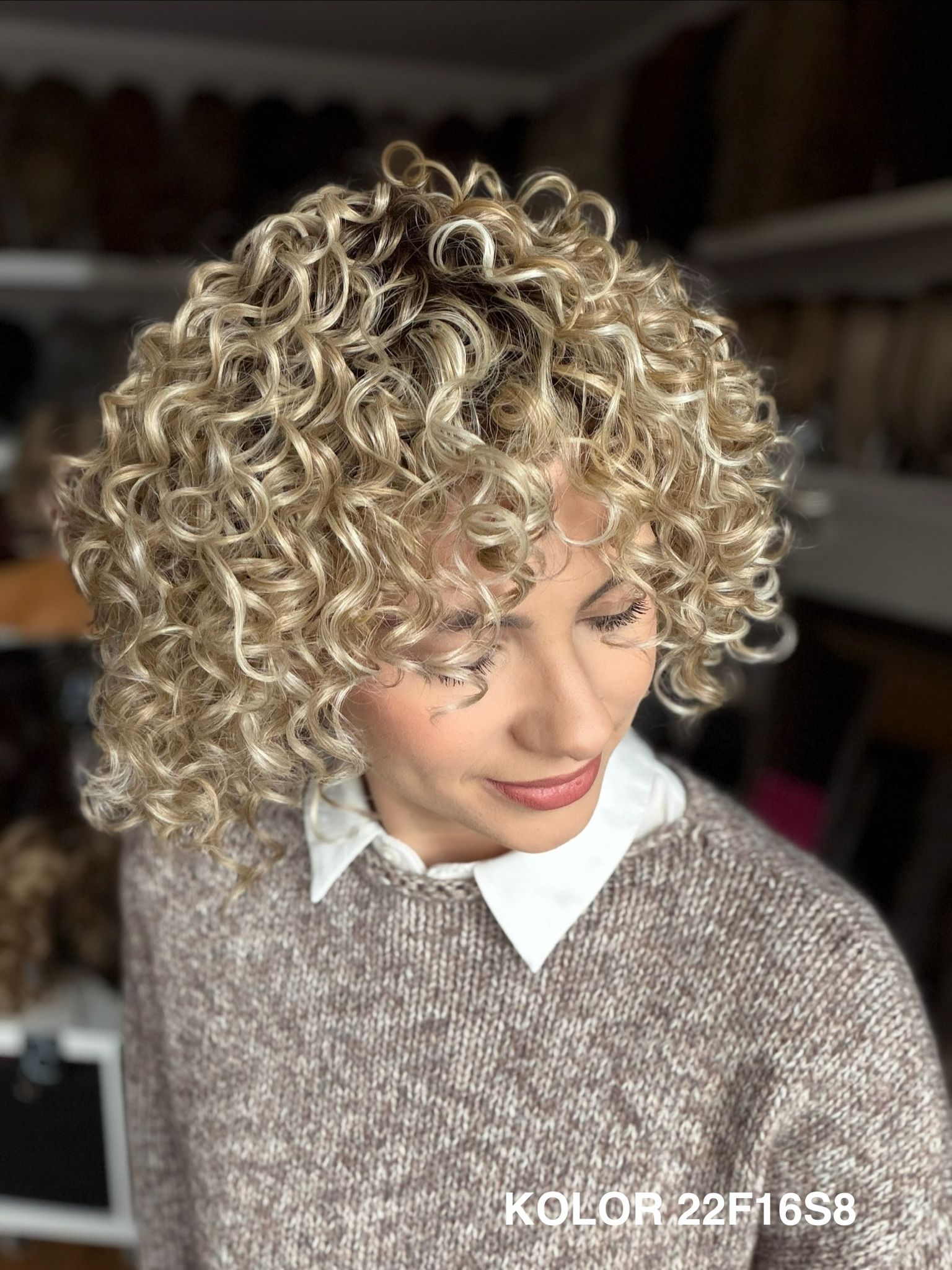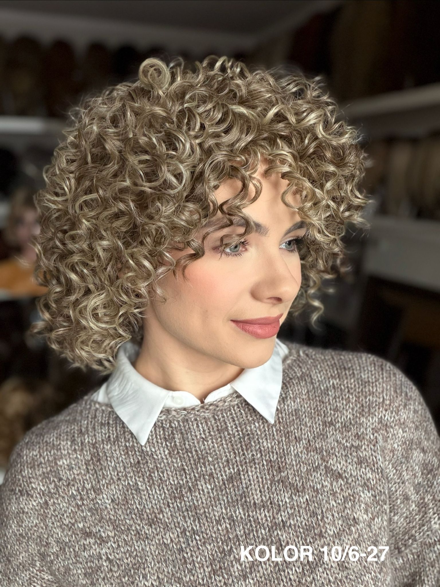 - Rodzaj fryzury: Afroloki, krótkie falowane loki.