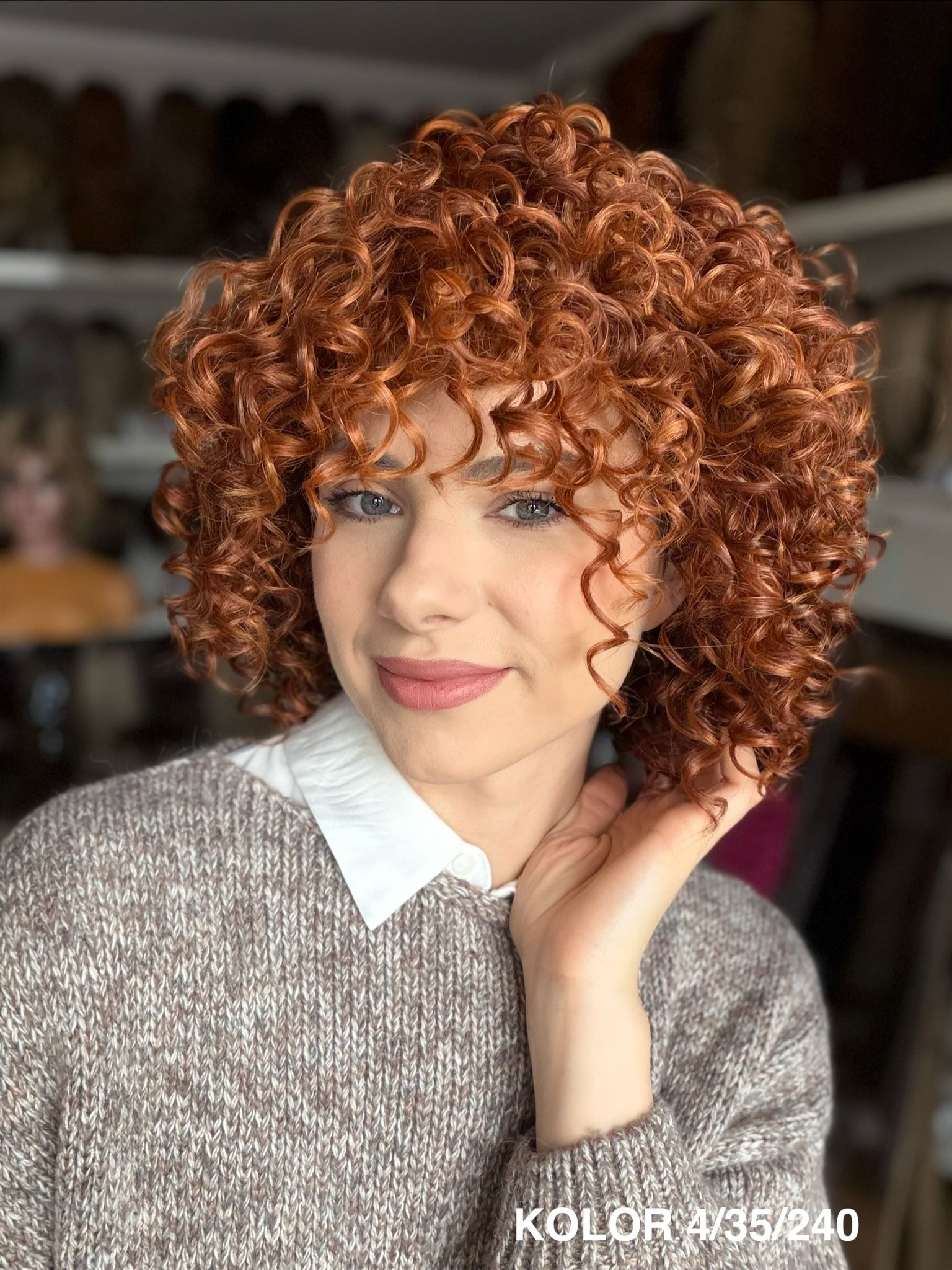 - Rodzaj włosa: Syntetyczny – termiczny, odporny na wysoką temperaturę, pozwala na stylizowanie włosów przy użyciu lokówki lub prostownicy do temperatury 180 stopni