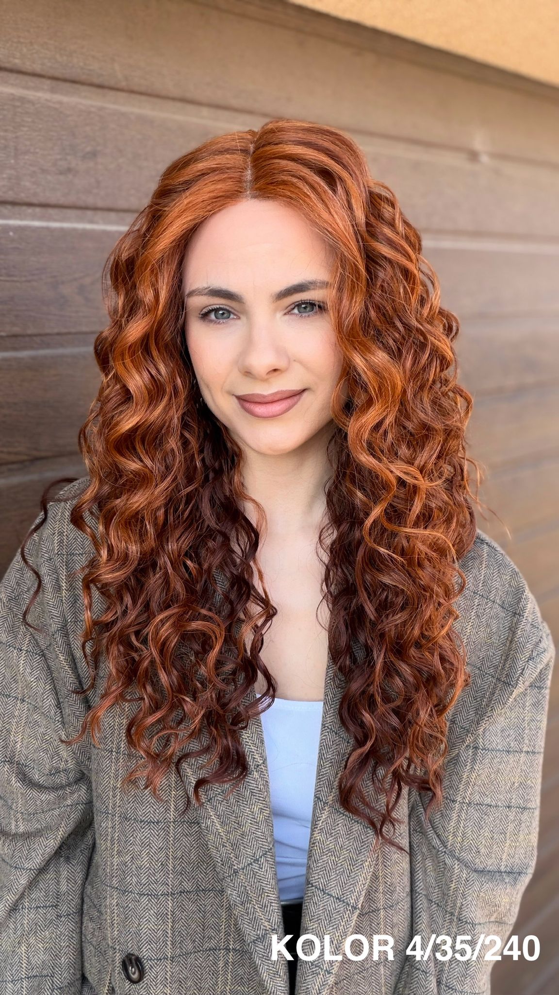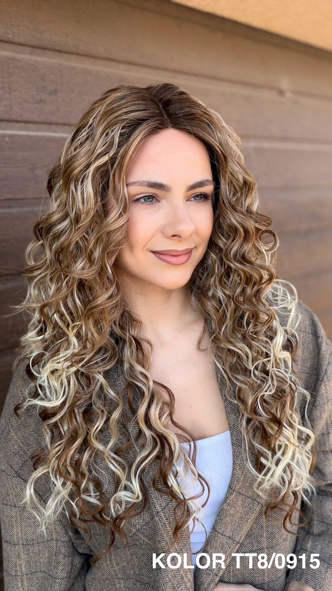 Peruka Consuela to kobieca, długa fryzura z luźnymi lokami, która przyciąga spojrzenia i dodaje stylizacji lekkości. Delikatne cieniowanie sprawia, że włosy pięknie się układają i nie tracą swojej objętości, a miękka, przyjemna w dotyku struktura daje bardzo naturalny efekt. Przedziałek na środku podkreśla symetrię twarzy, a subtelna siateczka przy linii czoła i przedziałku sprawia, że całość wygląda niezwykle realistycznie. Consuela to model dla kobiet, które chcą dodać sobie długości, objętości i efektu „wow” – bez wysiłku.