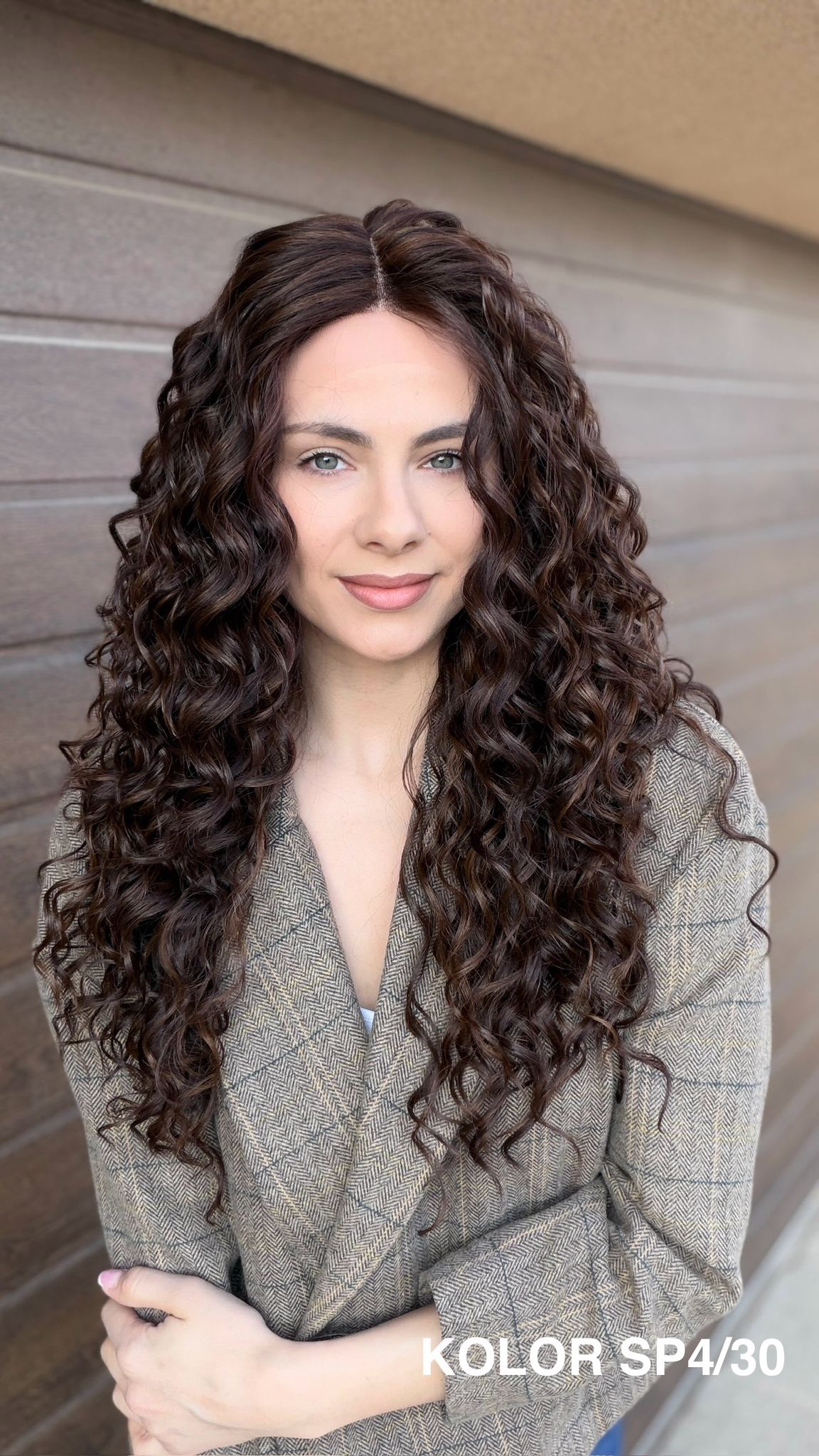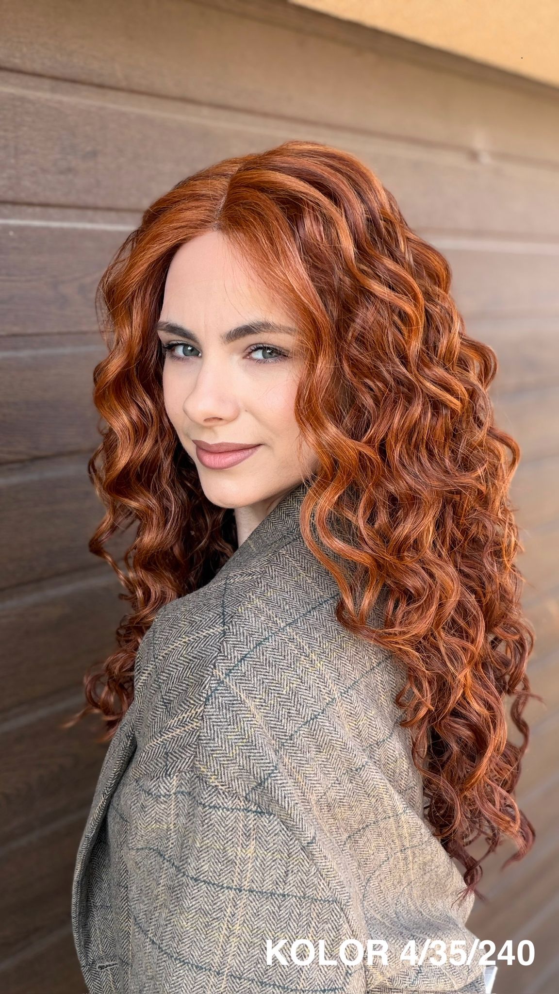 • Fryzura: długie, luźne loki, delikatnie cieniowane, przedziałek na środku