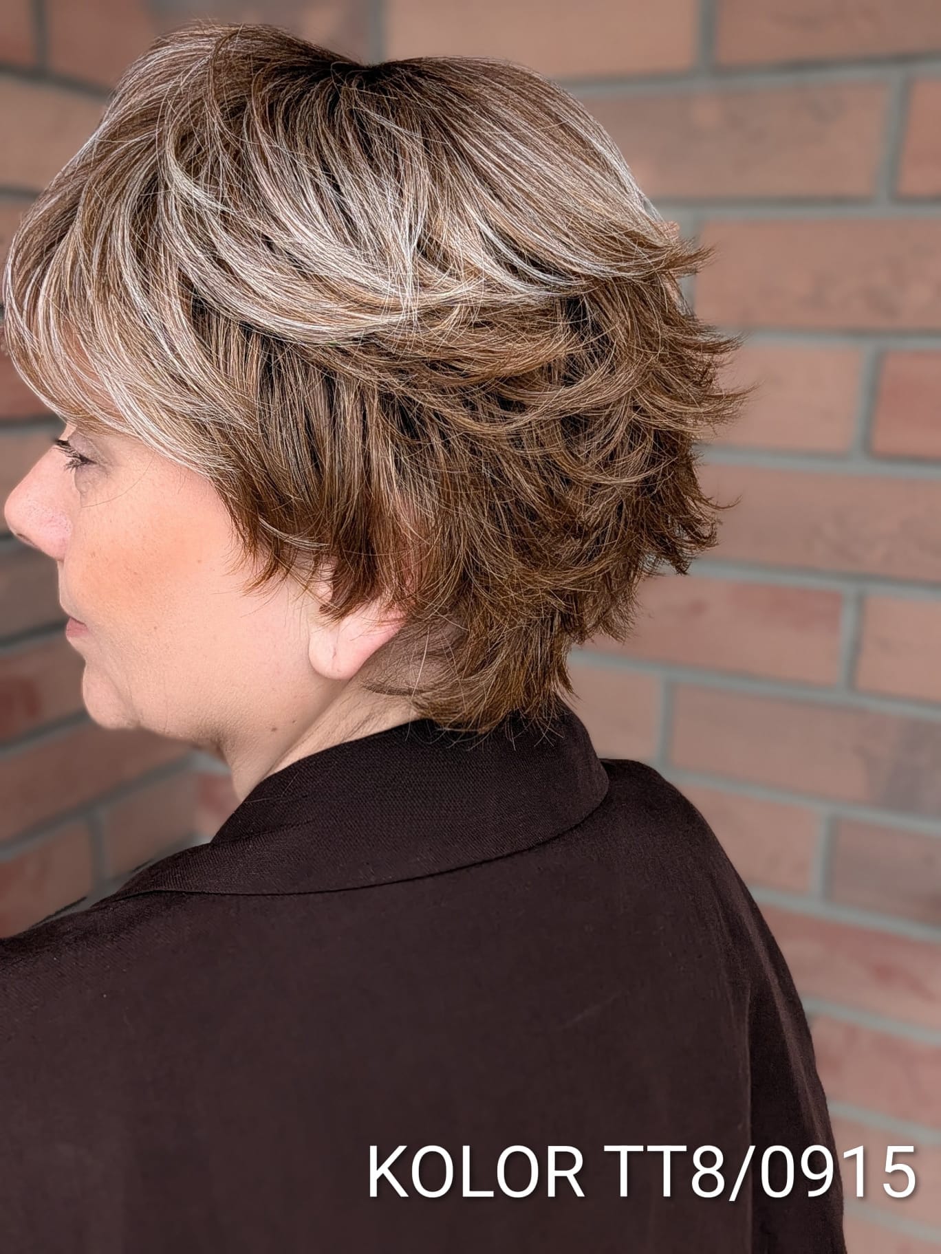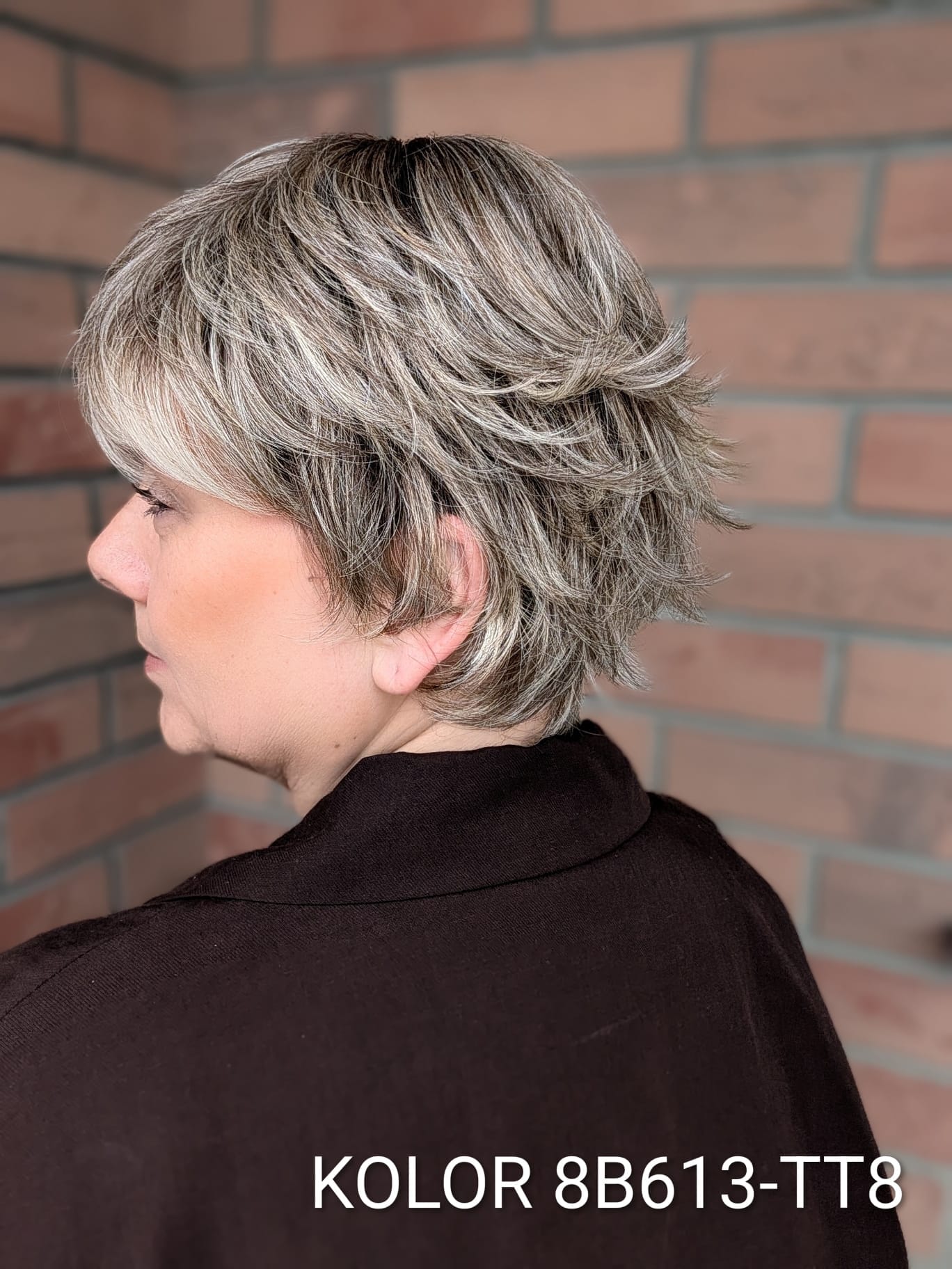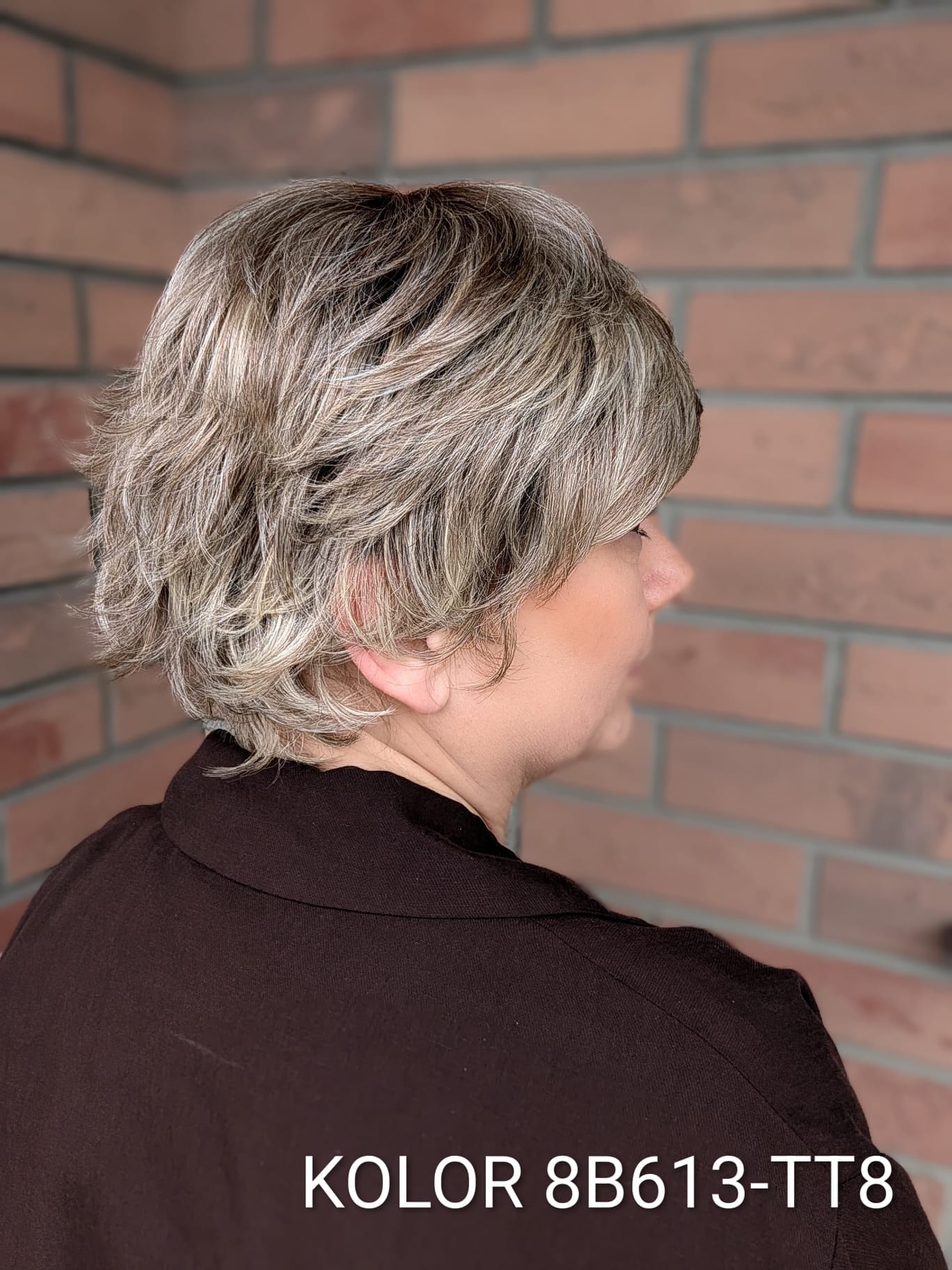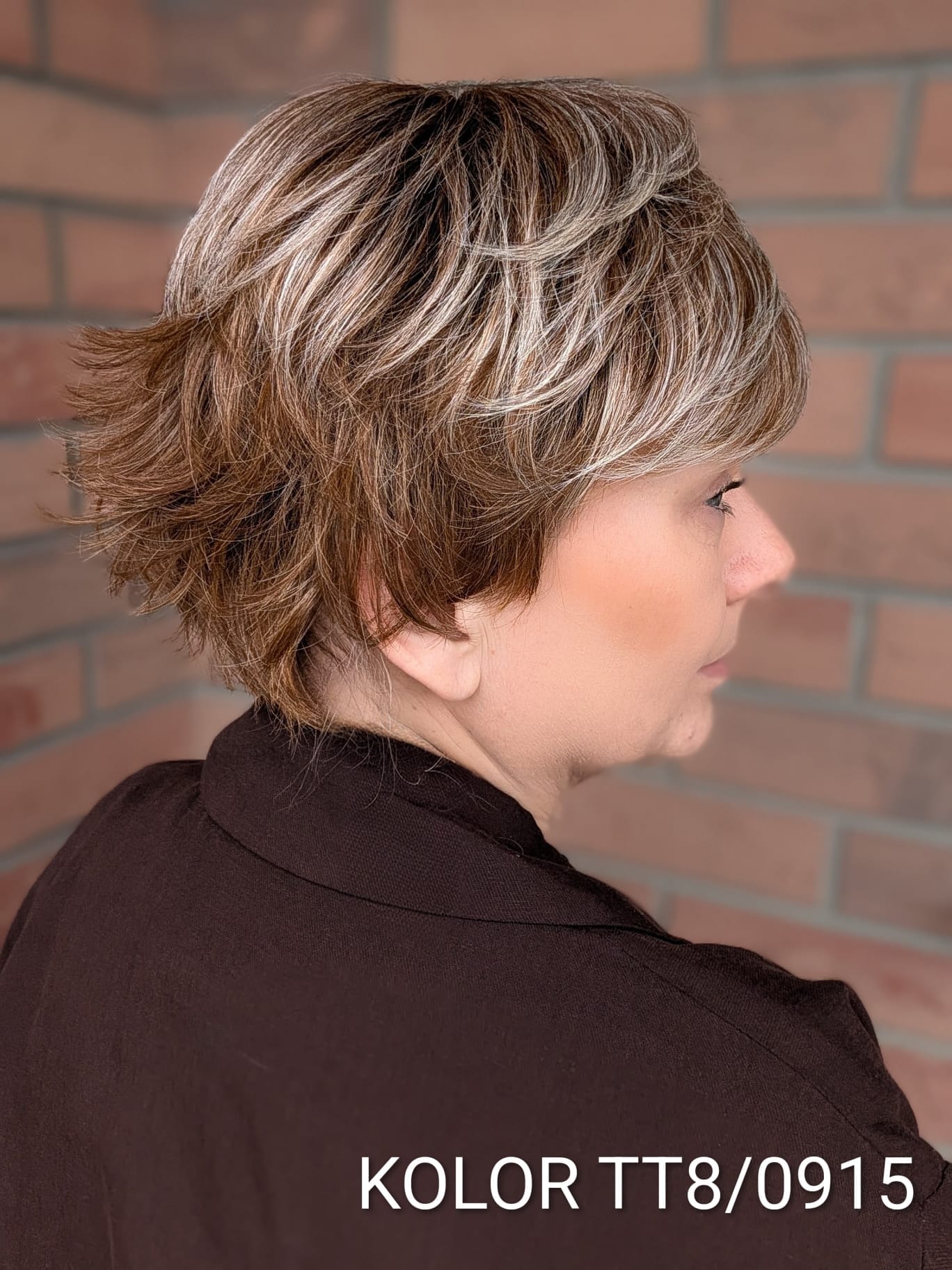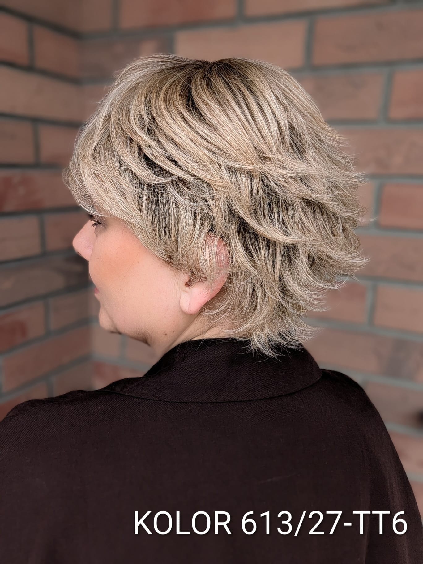 Peruka Wanda to krótka fryzura z pazurem – stworzona dla kobiet, które chcą dodać sobie charakteru i energii. Dzięki wstawce Mono Top włosy wyglądają, jakby wyrastały bezpośrednio z głowy, a efekt przejścia na linii czoła jest całkowicie niewidoczny. Peruka jest niezwykle lekka i komfortowa, co sprawia, że noszenie jej przez cały dzień to czysta przyjemność. Ta fryzura to połączenie swobody, realizmu i klasy – dla kobiet, które chcą wyglądać naturalnie i czuć się pewnie każdego dnia.