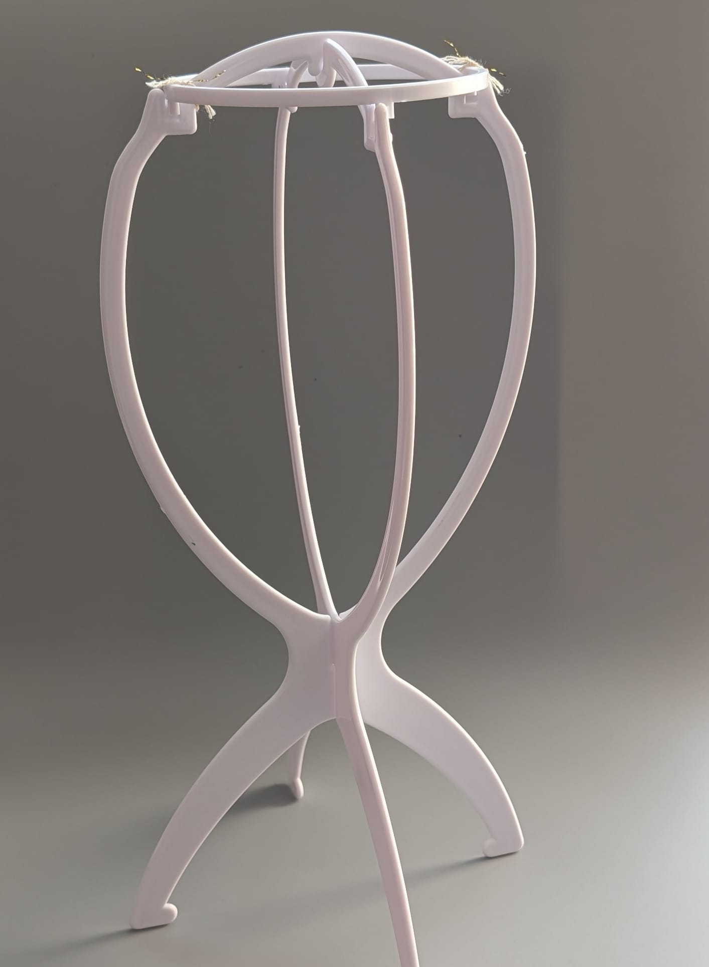 Otwarta, przewiewna forma zapewnia swobodny przepływ powietrza, co przyspiesza schnięcie i zapobiega gromadzeniu wilgoci wewnątrz czepka. Statyw jest lekki, stabilny i łatwy do złożenia – sprawdzi się zarówno w domu, jak i w podróży.