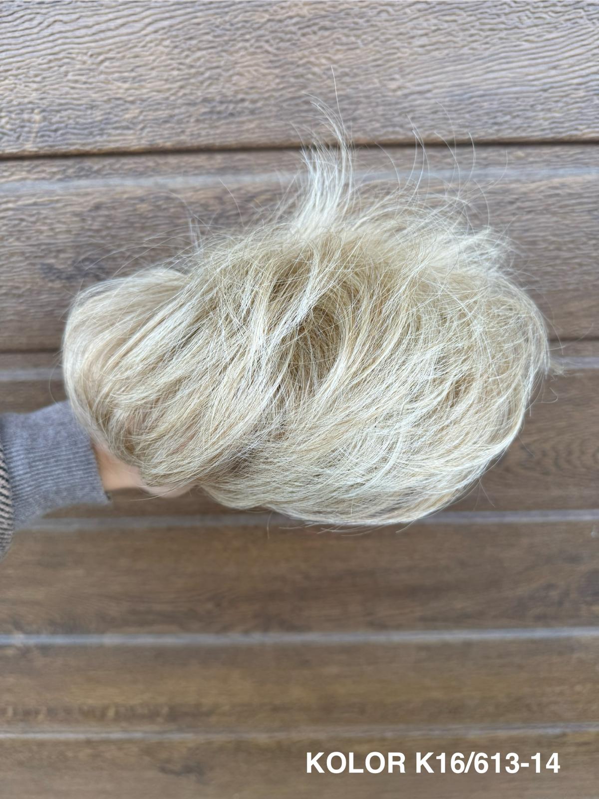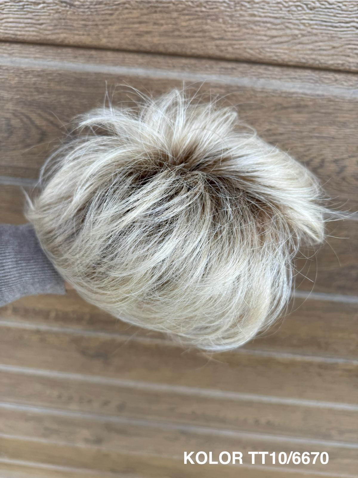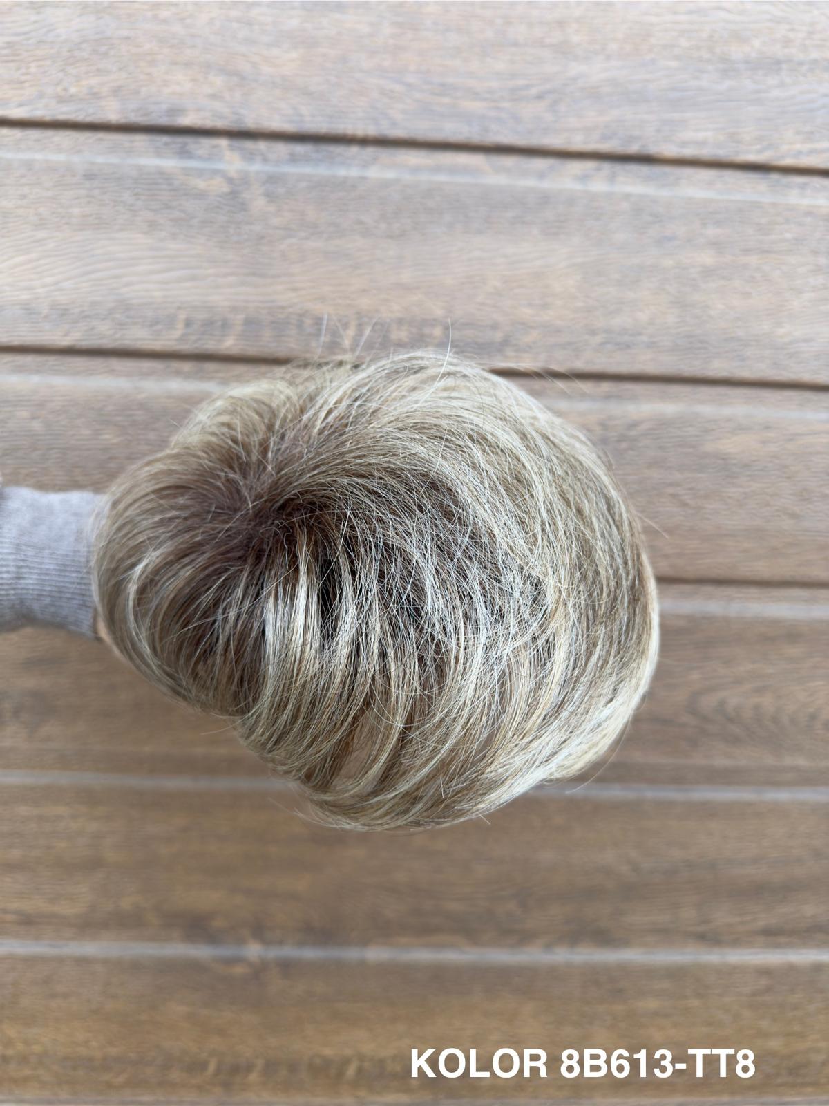- Cechy specjalne: Topper posiada efekt delikatnego tapiru u nasady, co nadaje fryzurze naturalną objętość i lekko uniesiony kształt bez konieczności stylizacji