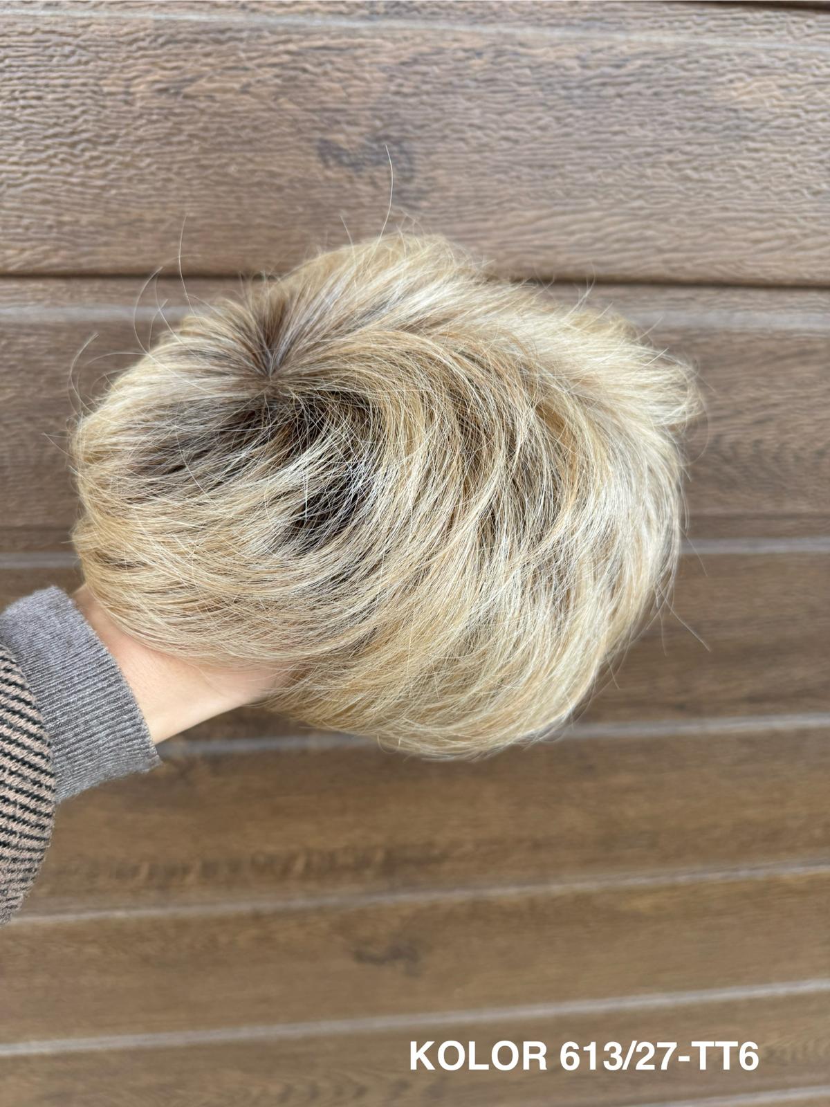 - Zastosowanie: Profesjonalny topper z włosów syntetycznych przeznaczony do codziennego użytku – idealny do maskowania przerzedzeń, dodania objętości lub subtelnej zmiany fryzury. Sprawdza się zarówno w stylizacjach casualowych, jak i eleganckich, zapewniając naturalny wygląd i komfort noszenia przez cały dzień