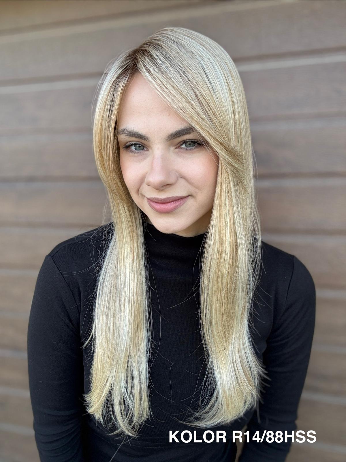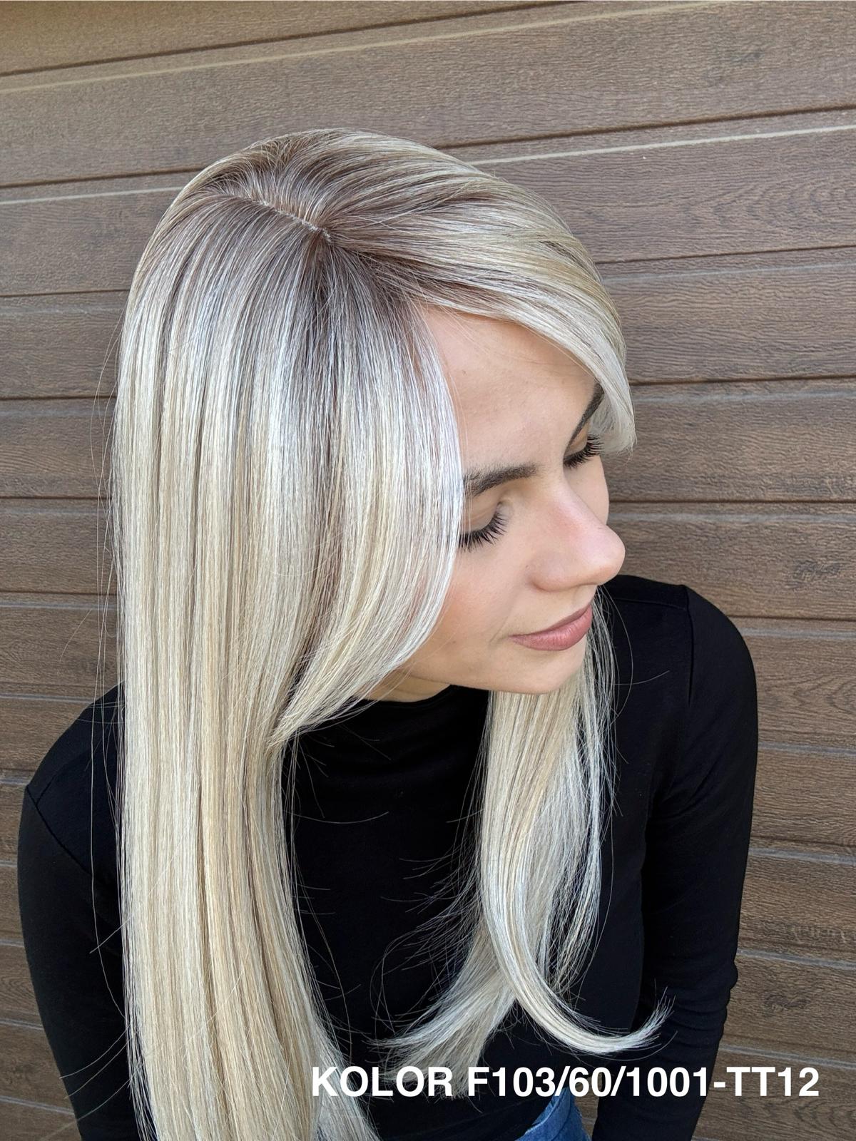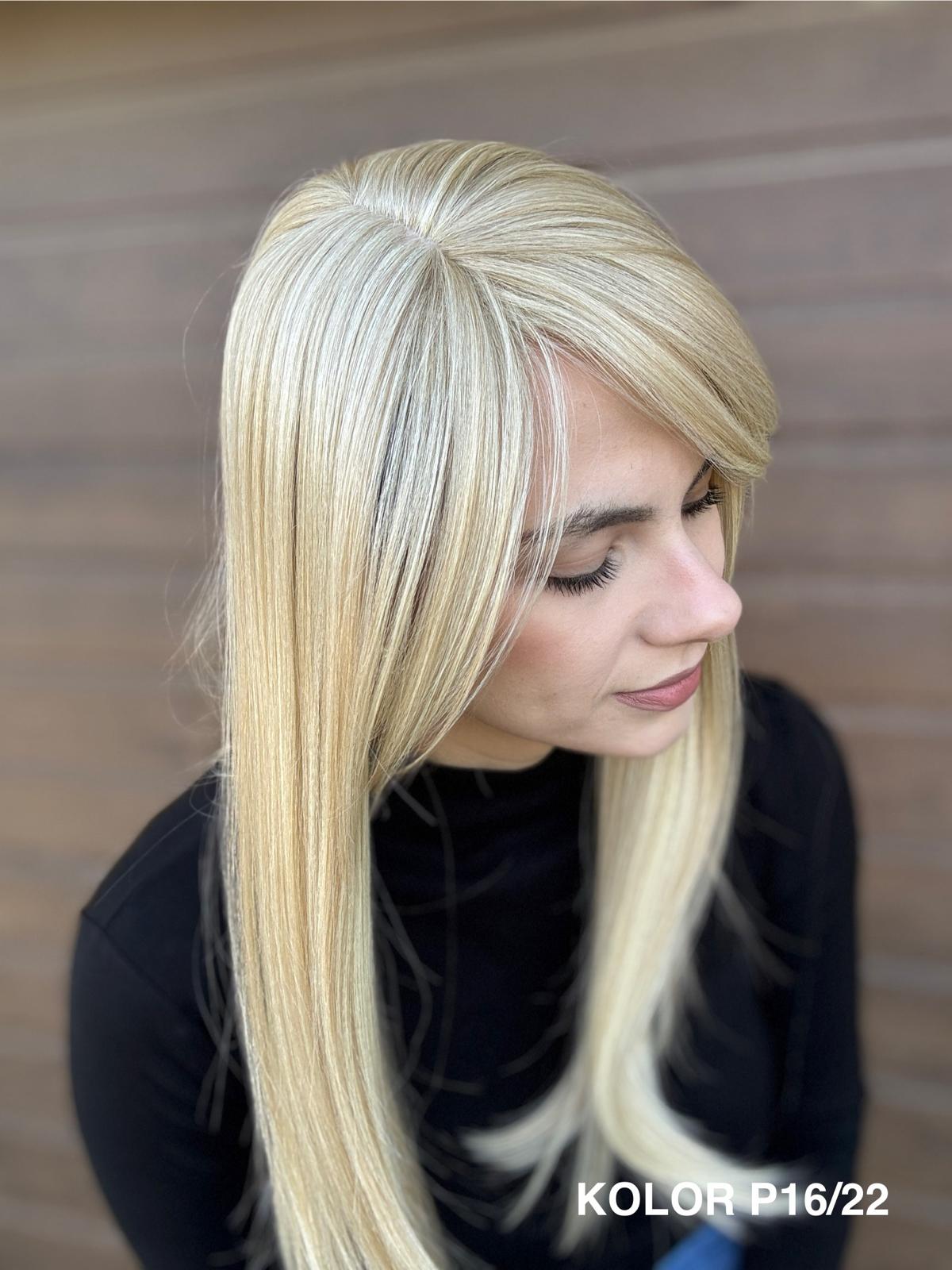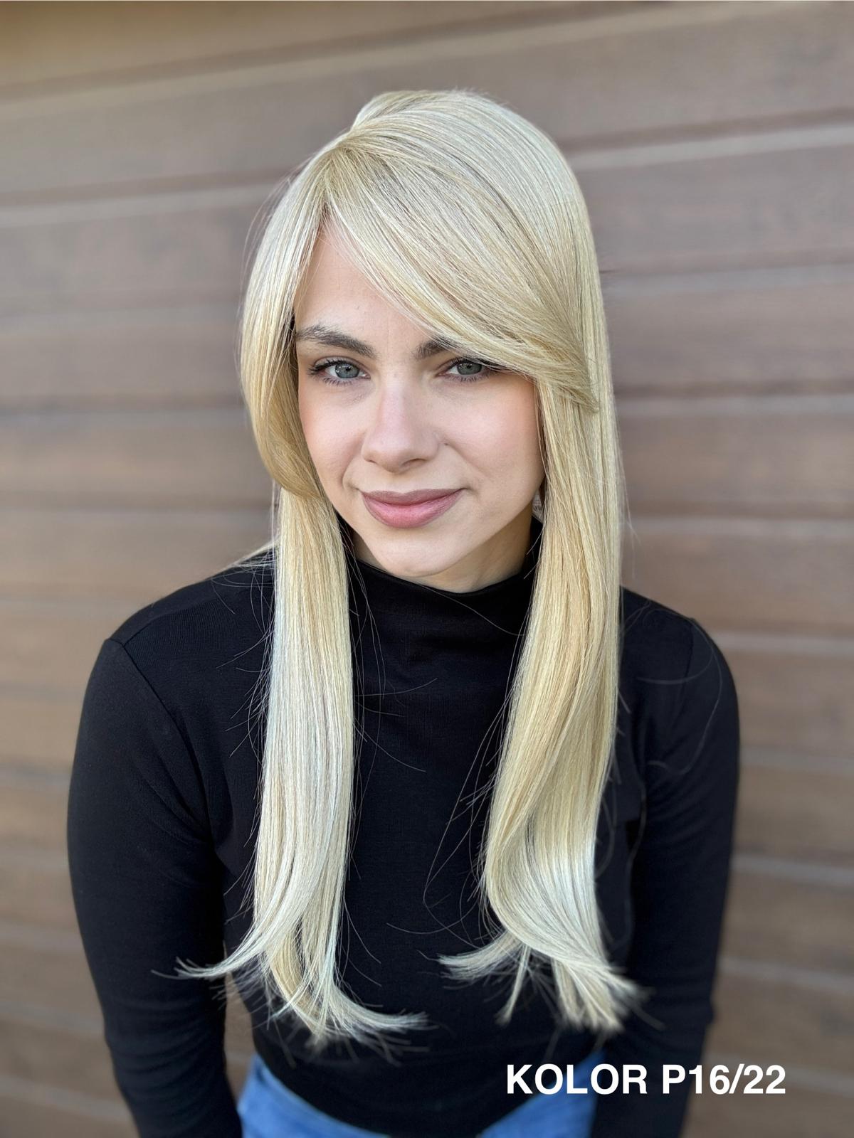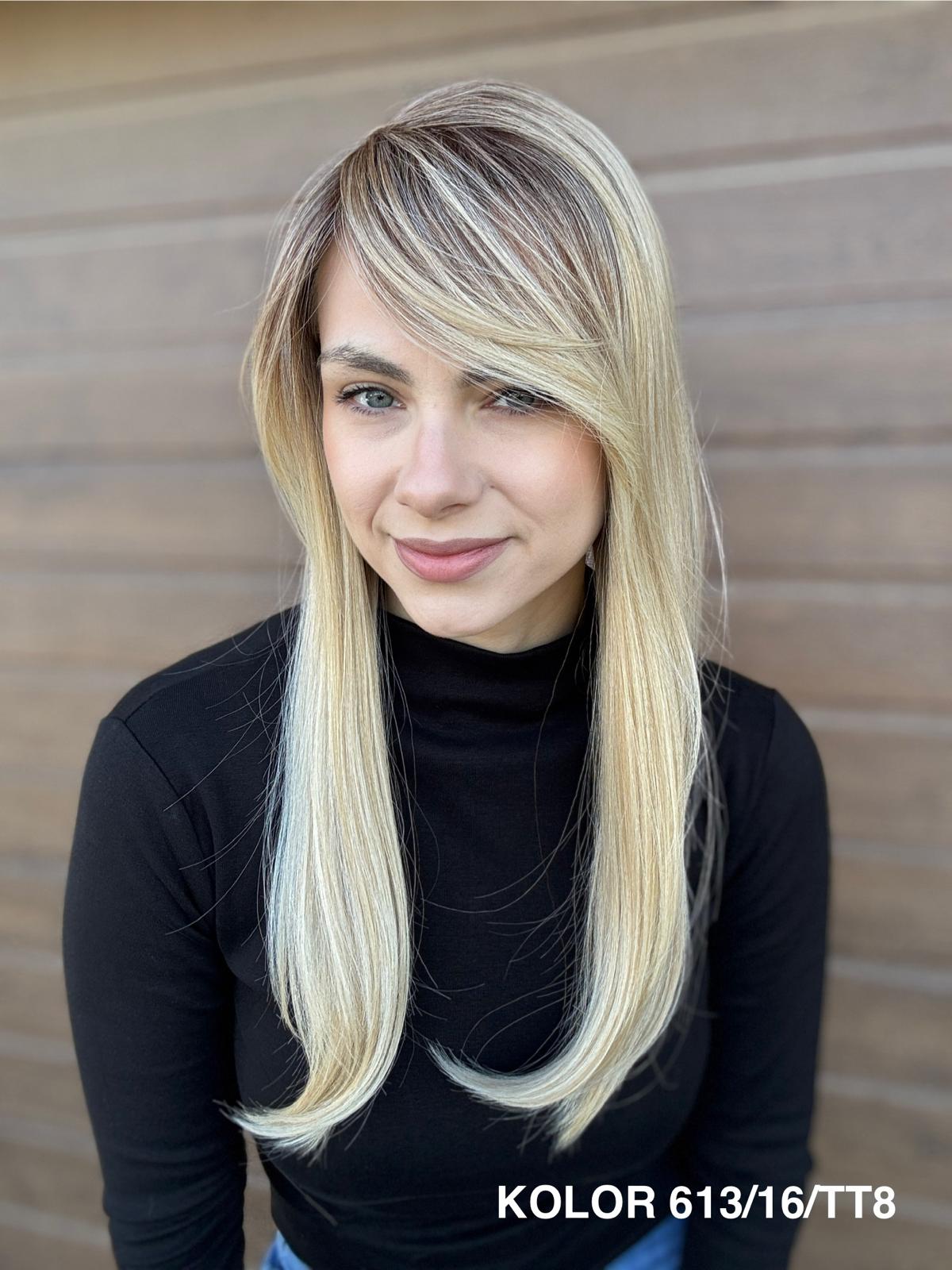 | Kolory | 10/27M, 1B (czarny), 22F16S8, 4/6-30M, 613/16-TT8, 613/27-TT6, 8B613-TT8, F103/60/1001-TT12, H33/Rose, K16/613-14, KOLOR 2, KOLOR 4, P14/22, P16/22, R12/26A, R14/88HSS, RL29/33SS8, RL51/61, RL8/12SS, SS130, SS14/25 (miodowy blond), TT10/247 (platynowy z odrostem), TT10/6670, TT8/0915  |
