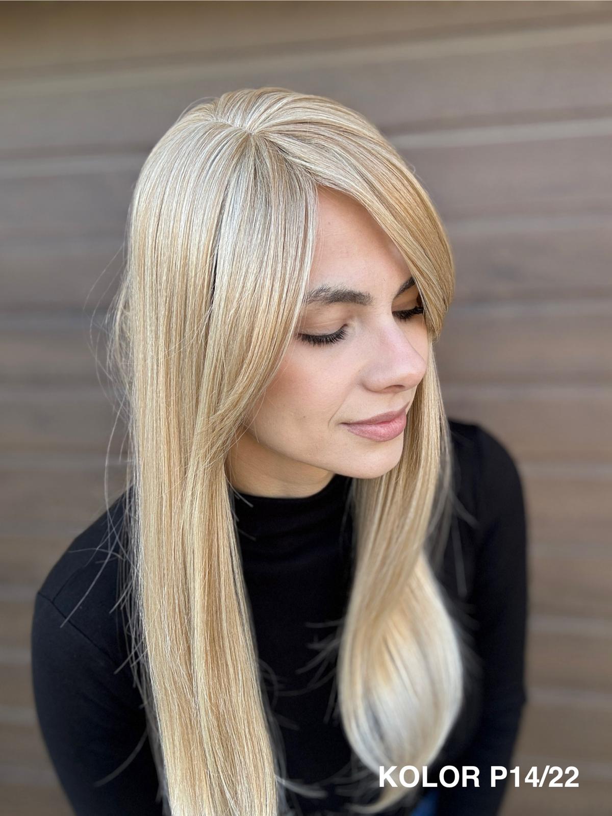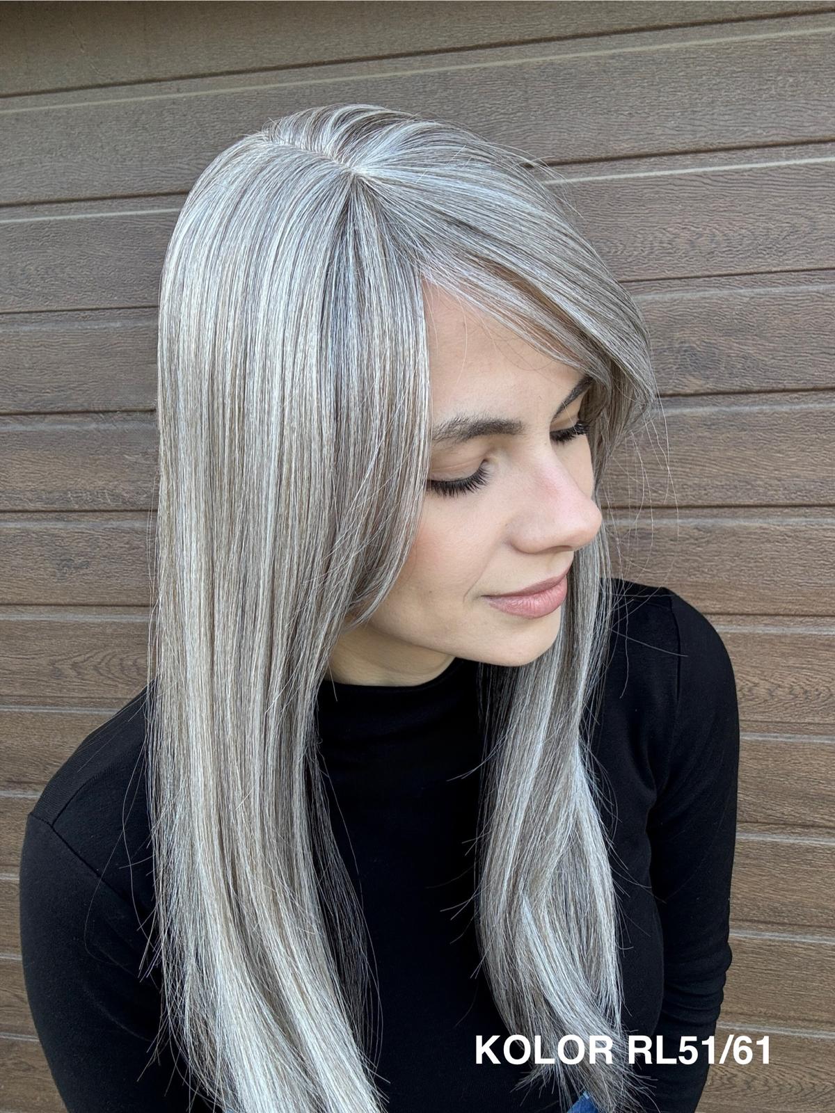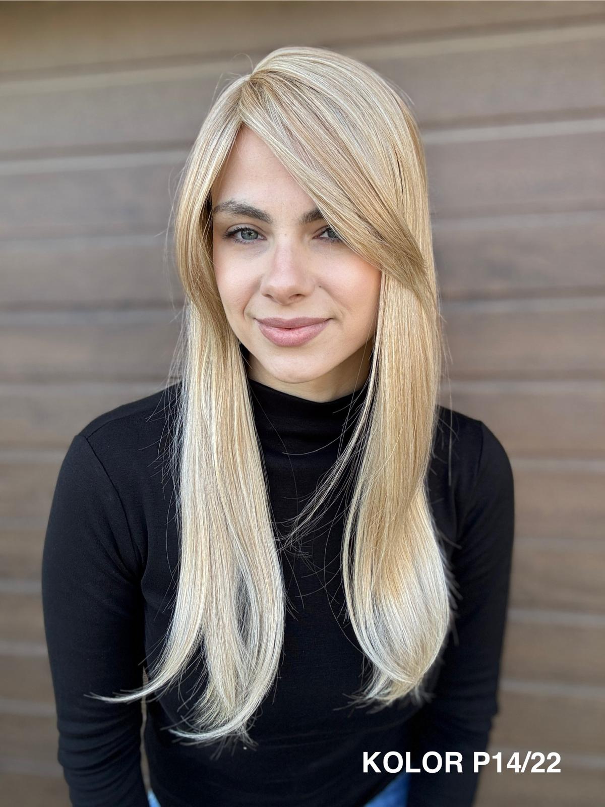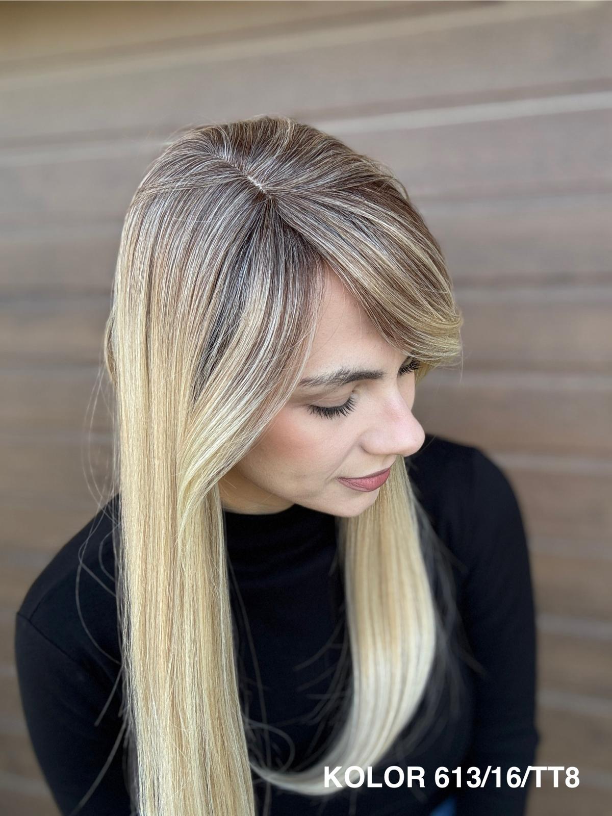 | Kolory | 10/27M, 1B (czarny), 22F16S8, 4/6-30M, 613/16-TT8, 613/27-TT6, 8B613-TT8, F103/60/1001-TT12, H33/Rose, K16/613-14, KOLOR 2, KOLOR 4, P14/22, P16/22, R12/26A, R14/88HSS, RL29/33SS8, RL51/61, RL8/12SS, SS130, SS14/25 (miodowy blond), TT10/247 (platynowy z odrostem), TT10/6670, TT8/0915  |