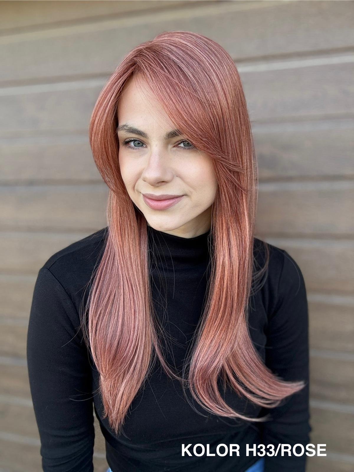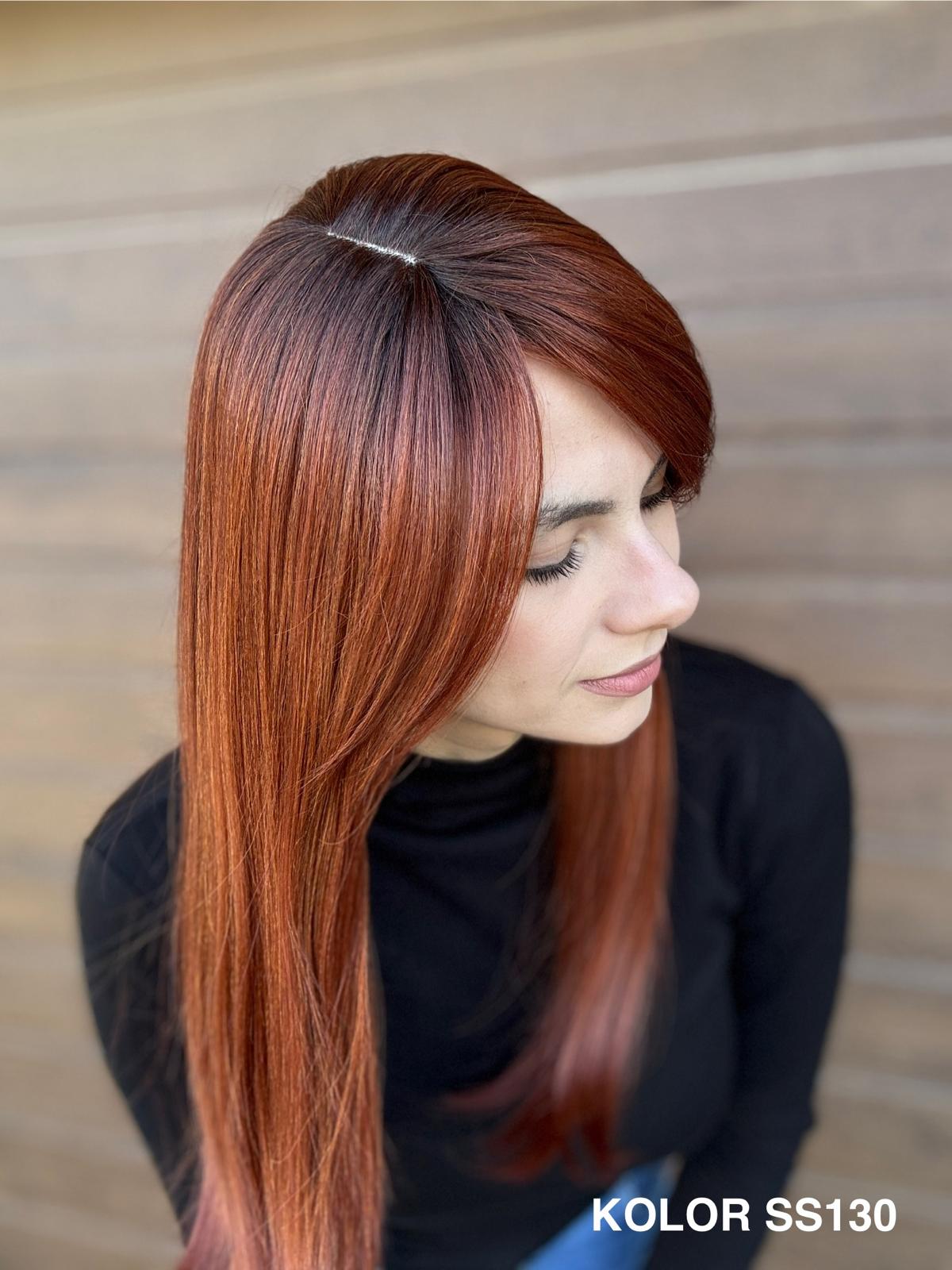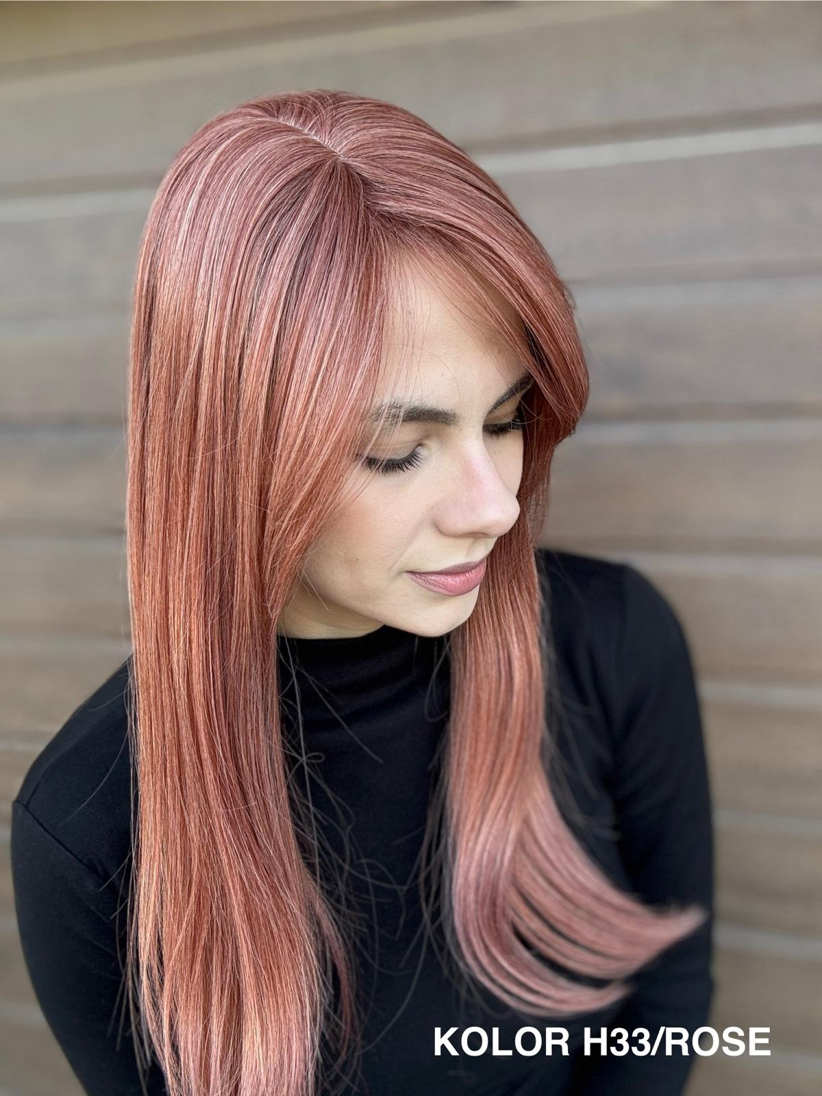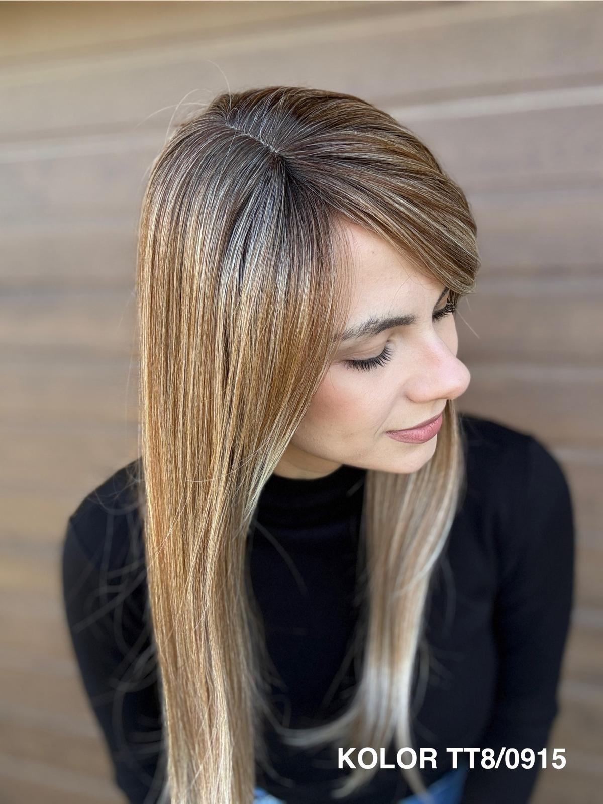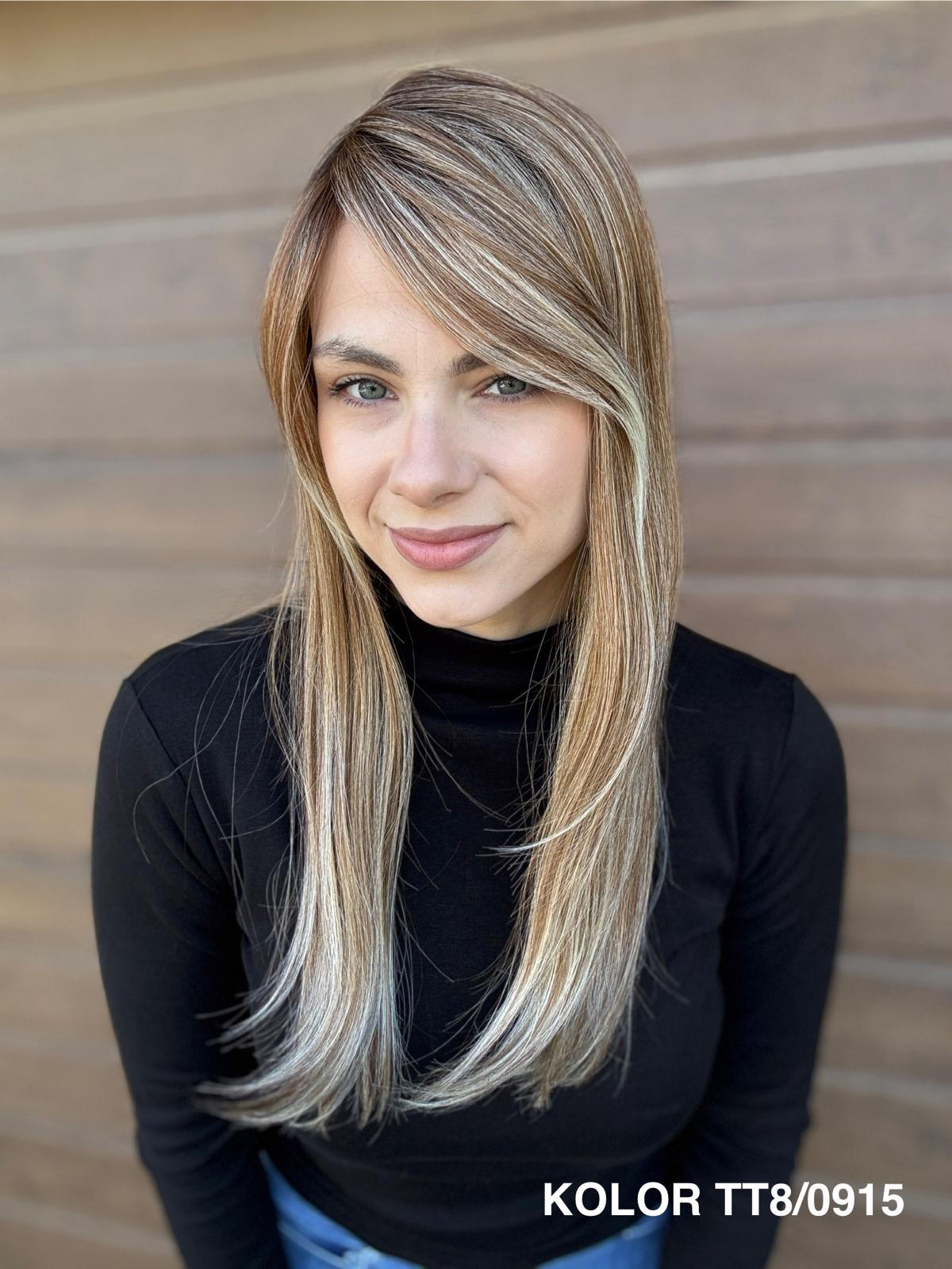 | Kolory | 10/27M, 1B (czarny), 22F16S8, 4/6-30M, 613/16-TT8, 613/27-TT6, 8B613-TT8, F103/60/1001-TT12, H33/Rose, K16/613-14, KOLOR 2, KOLOR 4, P14/22, P16/22, R12/26A, R14/88HSS, RL29/33SS8, RL51/61, RL8/12SS, SS130, SS14/25 (miodowy blond), TT10/247 (platynowy z odrostem), TT10/6670, TT8/0915  |