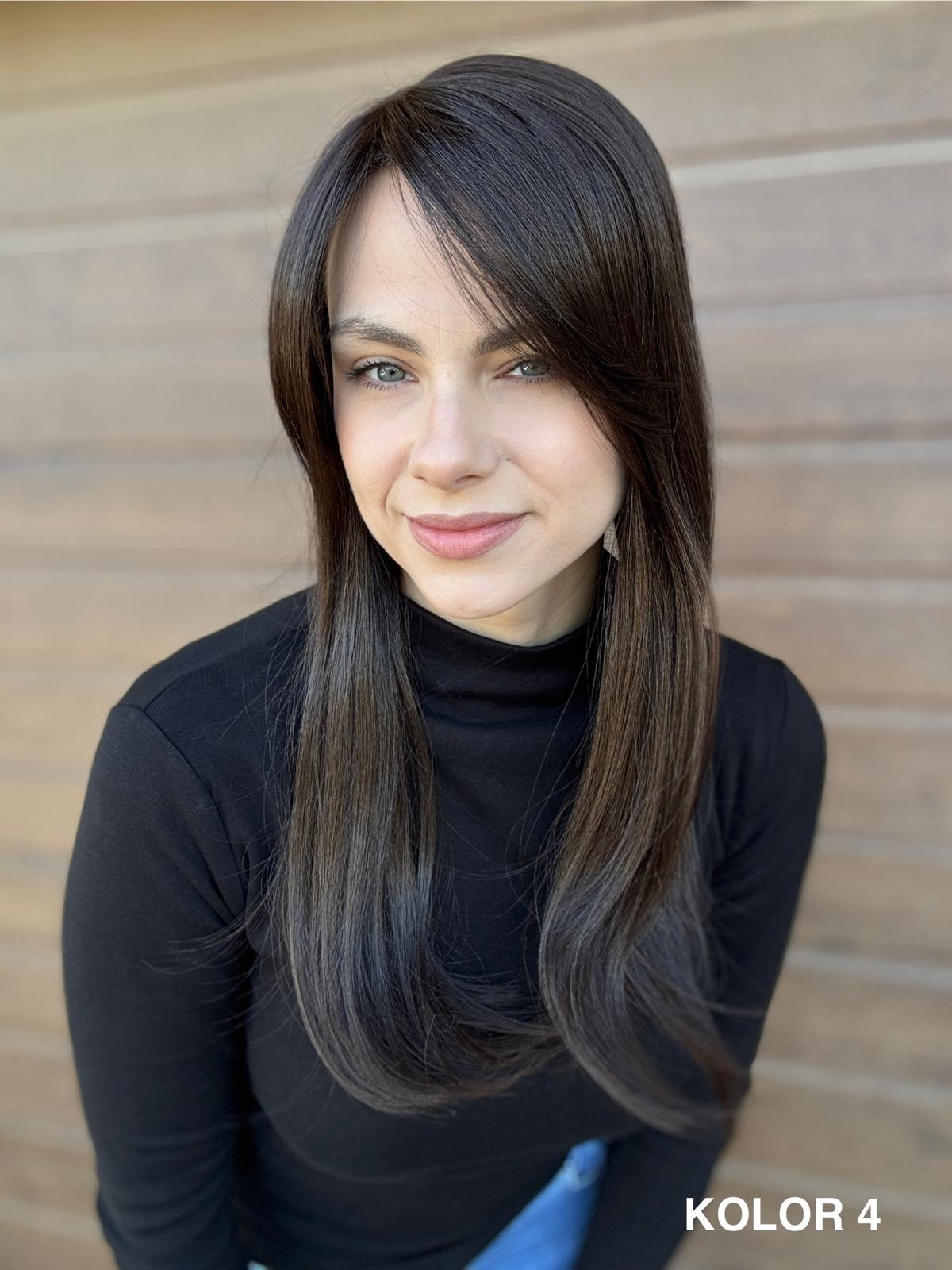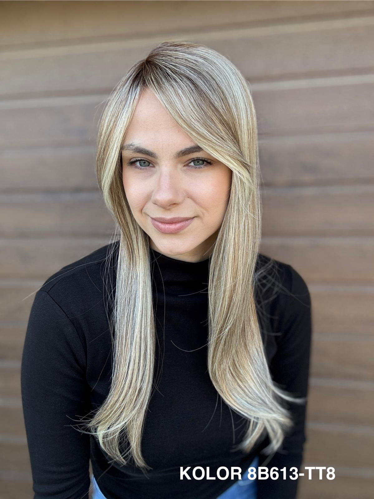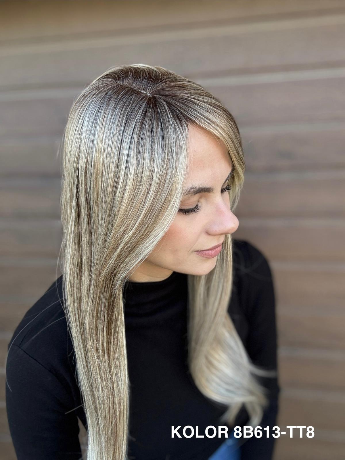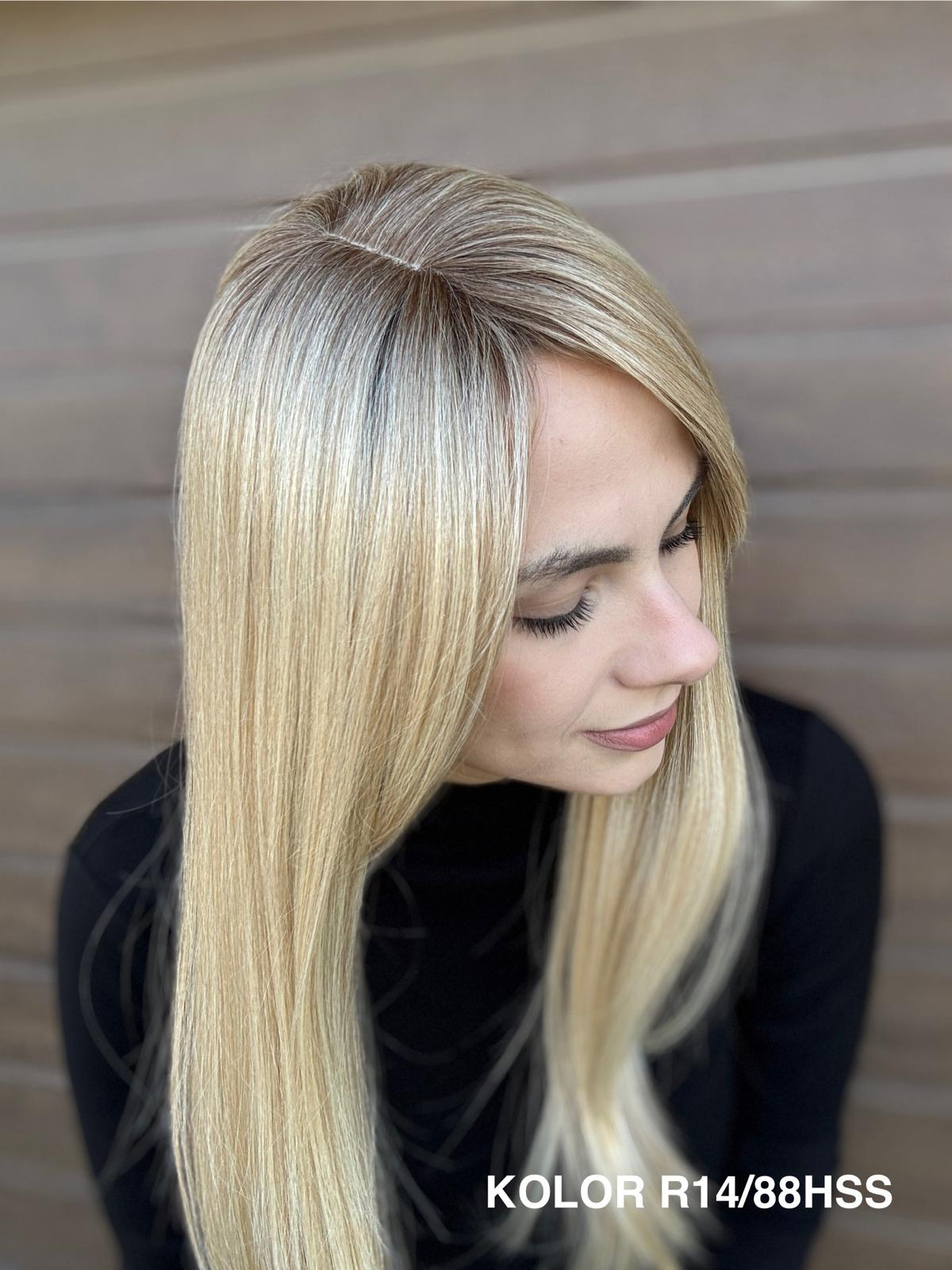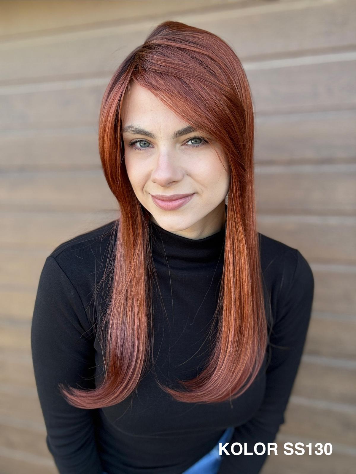 | Kolory | 10/27M, 1B (czarny), 22F16S8, 4/6-30M, 613/16-TT8, 613/27-TT6, 8B613-TT8, F103/60/1001-TT12, H33/Rose, K16/613-14, KOLOR 2, KOLOR 4, P14/22, P16/22, R12/26A, R14/88HSS, RL29/33SS8, RL51/61, RL8/12SS, SS130, SS14/25 (miodowy blond), TT10/247 (platynowy z odrostem), TT10/6670, TT8/0915  |