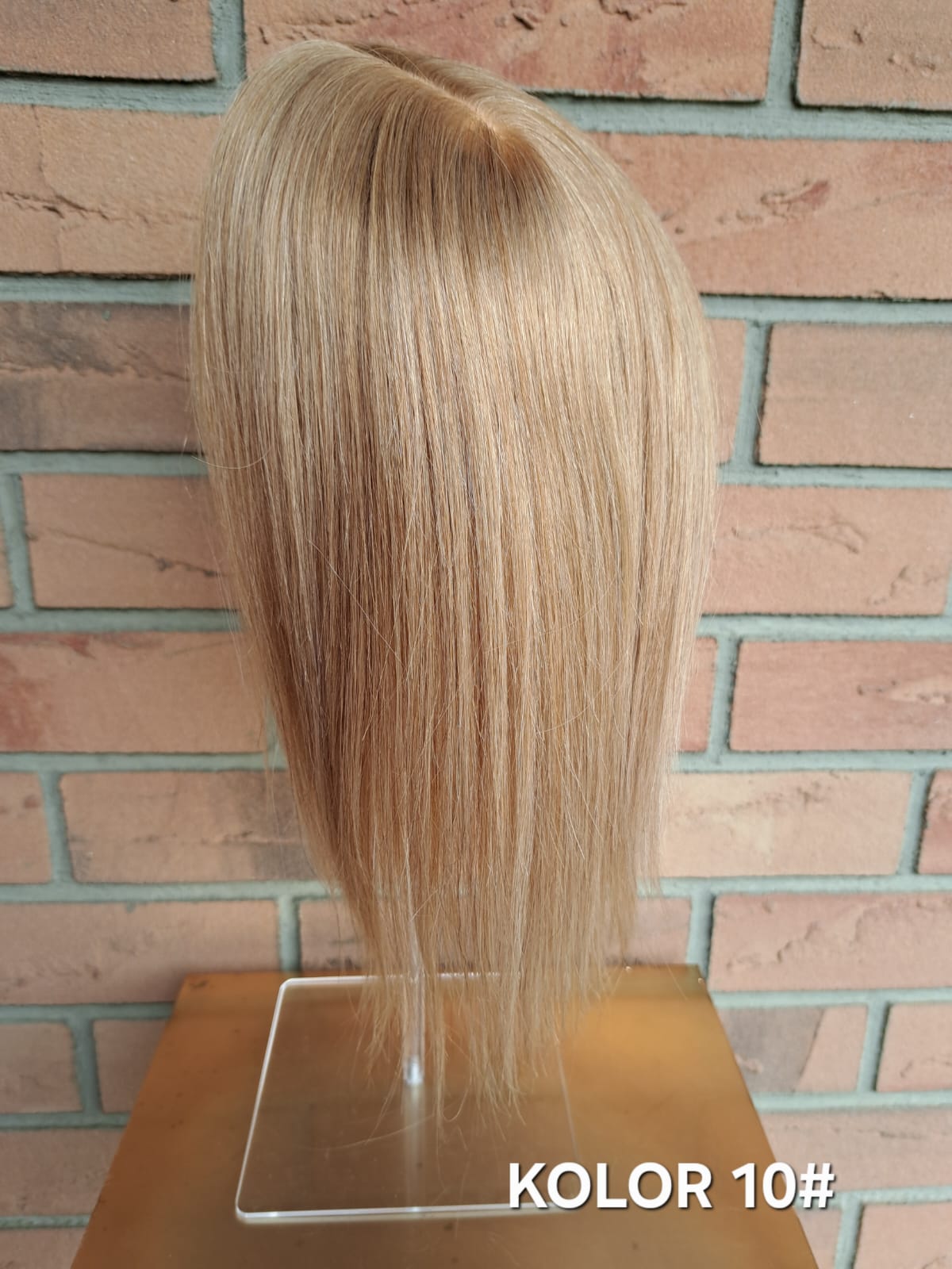 Topper ,,Paris” z włosów naturalnych pochodzenia wietnamskiego ,,Remy” łuską skierowane w jednym kierunku. Przedziałek po środku bez możliwości zmiany. Baza wstawka ,, injective” to specjalna imitacja skóry , która włosy są wstrzykiwane bezpośrednio , dając efekt naturalnie wyrastających włosów. Możliwość docięcia grzywki do swoich preferencji.