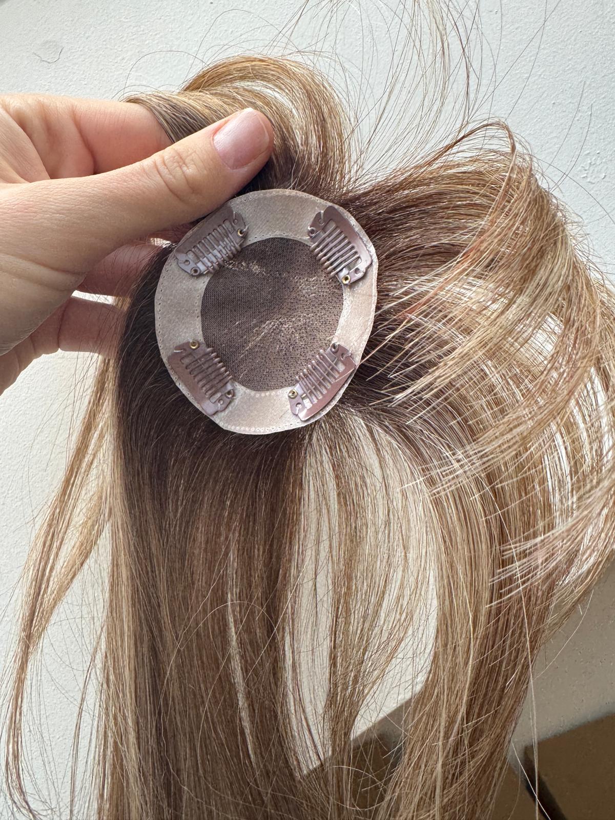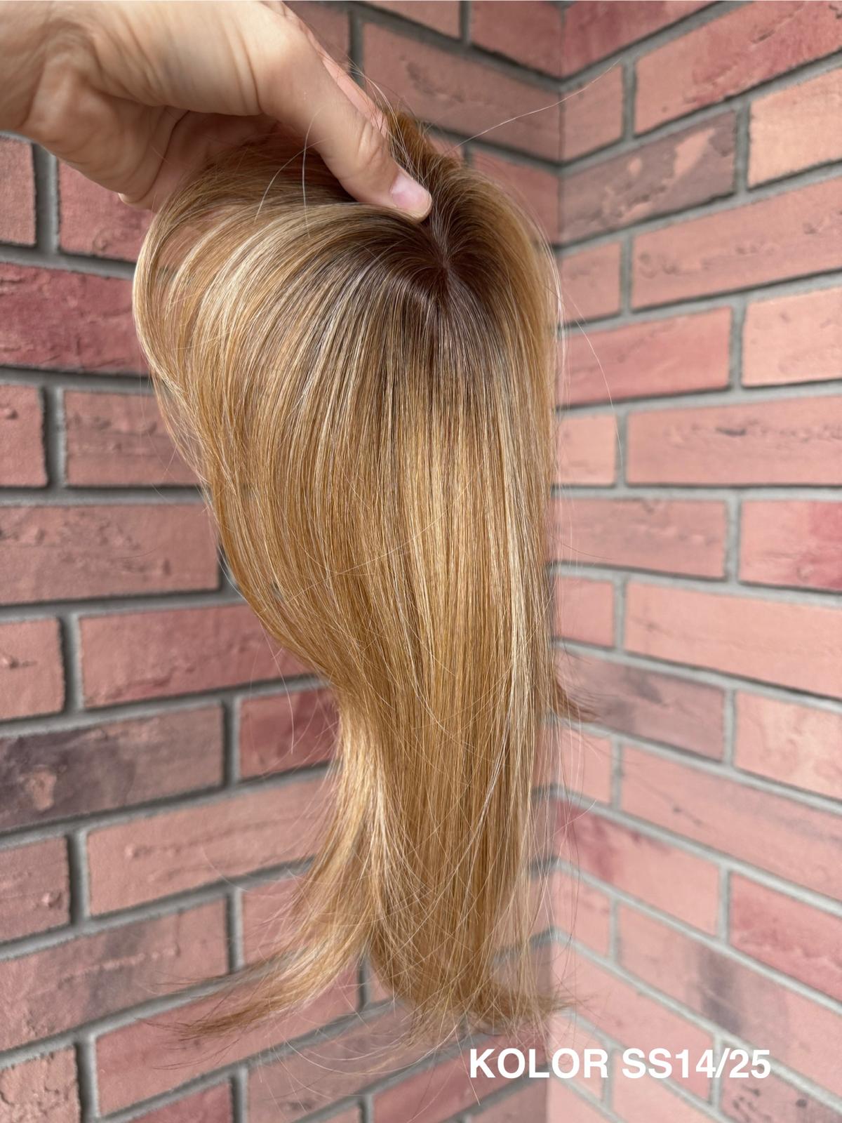 Topper Perła subtelny topper z delikatną, zwiewną grzywką, który pięknie dopełnia fryzurę i pozwala uzyskać naturalny efekt. Dzięki bazie Mono Top w kształcie koła można unosić włosy u nasady, a topper doskonale sprawdza się jako element do stworzenia grzywki lub lekkiego zagęszczenia wierzchniej partii włosów.